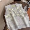 Nuevo Chaleco Coreano Dulce de Punto con Flor 3D para Mujer, Estilo Holgado Perezoso, Moda en Tendencia para Superponer