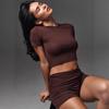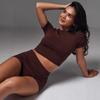 Playera de Manga Corta Transfronteriza de Amazon Ropa Europea y Americana para Mujer Transpirable Cómoda Ajustada Top Shorts Conjunto de Dos Piezas Traje de Verano