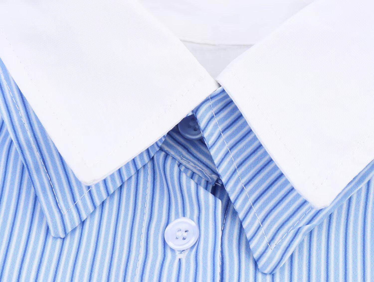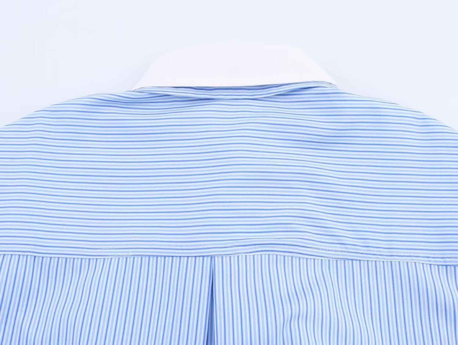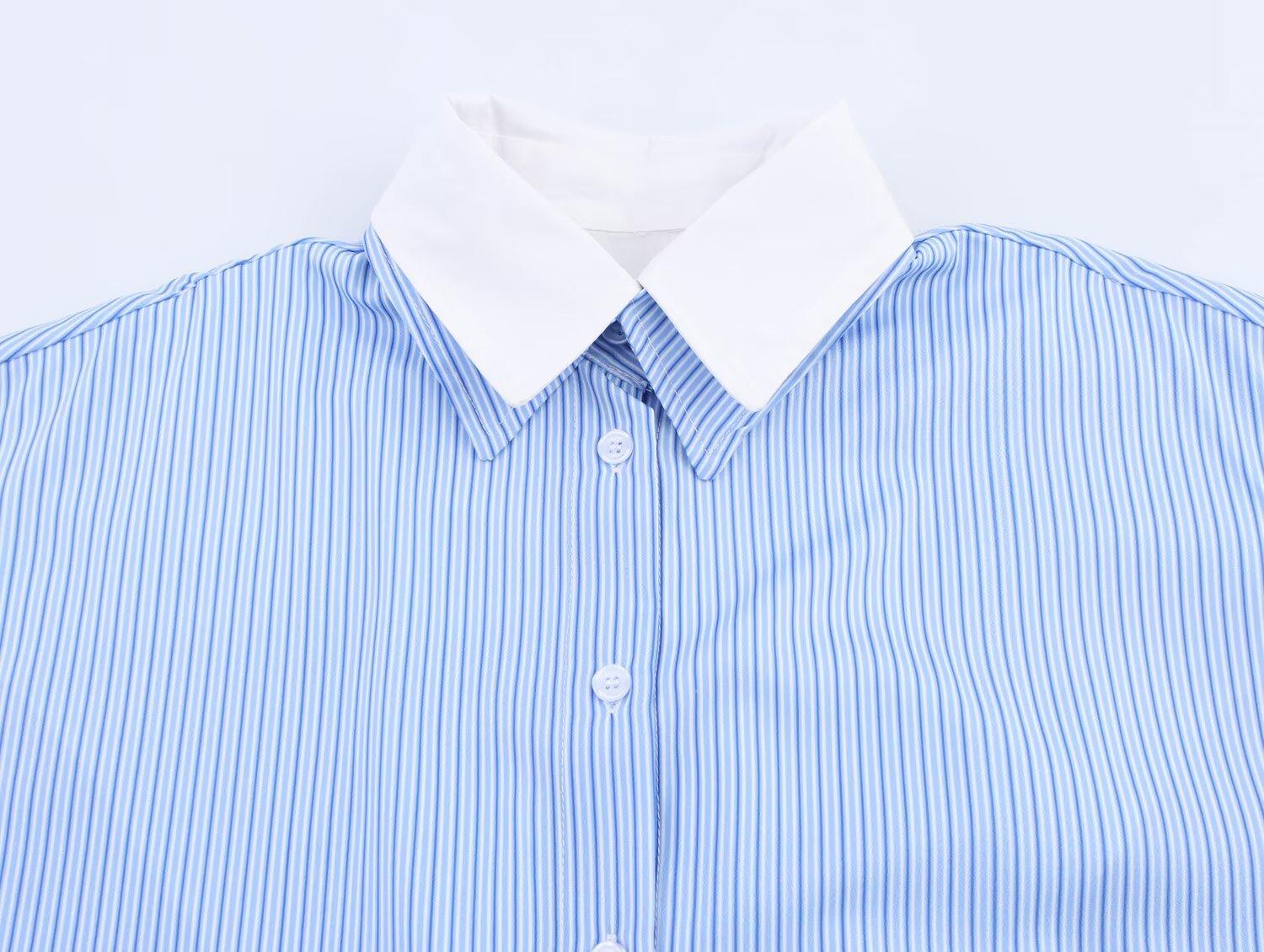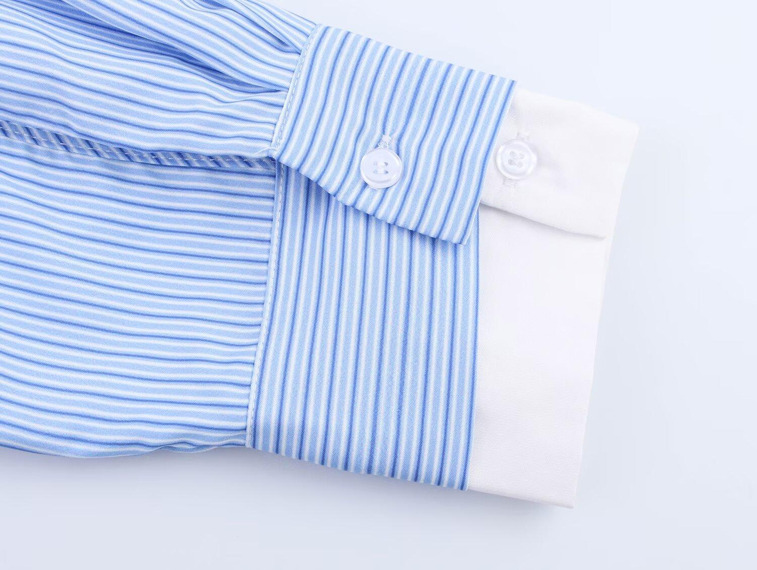 Verano 2025 Nuevo Estilo Europeo y Americano Moda Casual Versátil Holgado Adelgazante Popelina Patchwork Rayas Camisa Top de Mujer