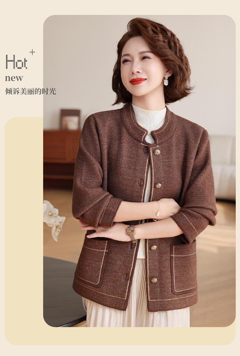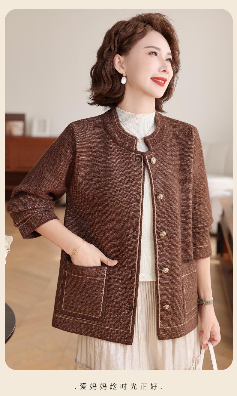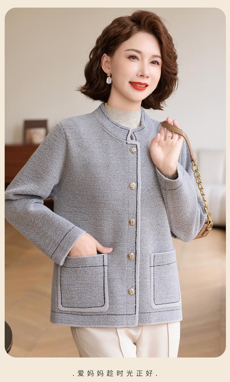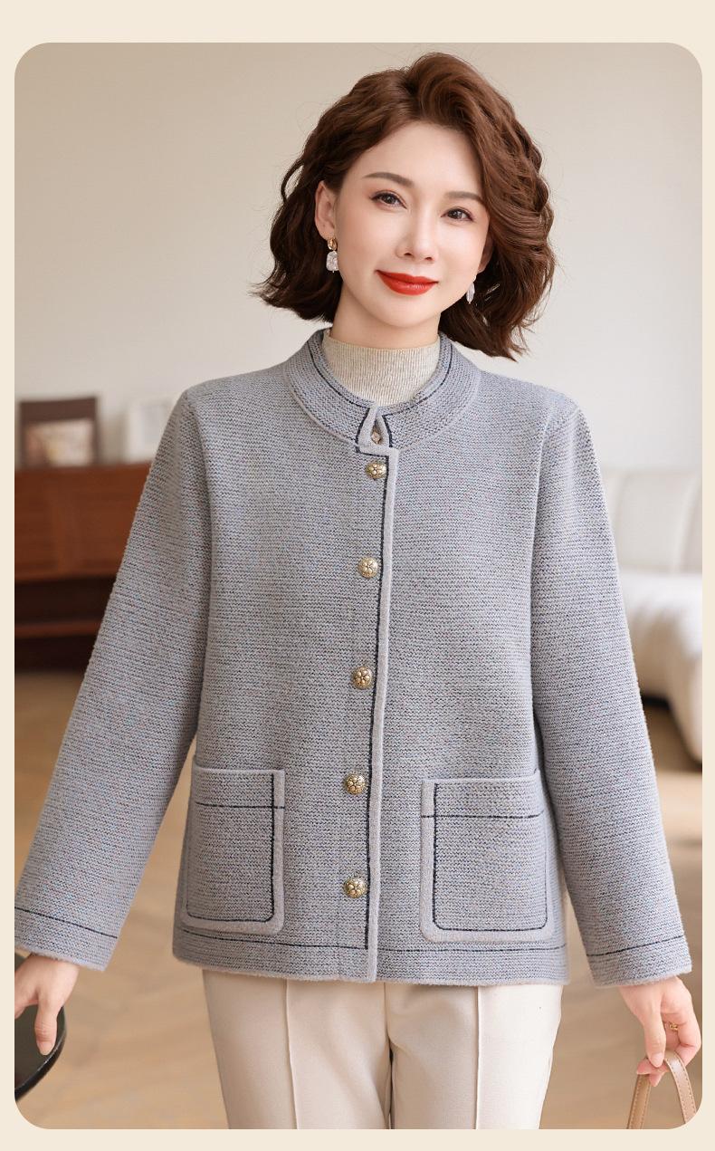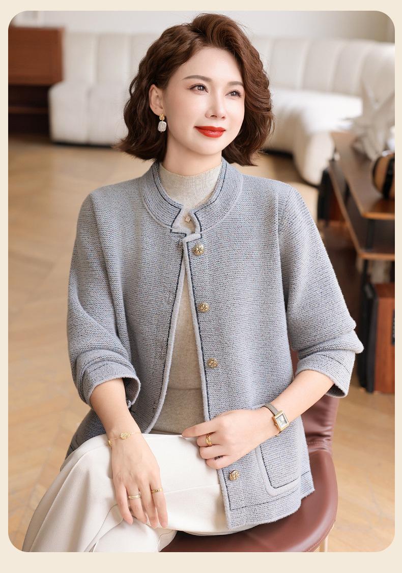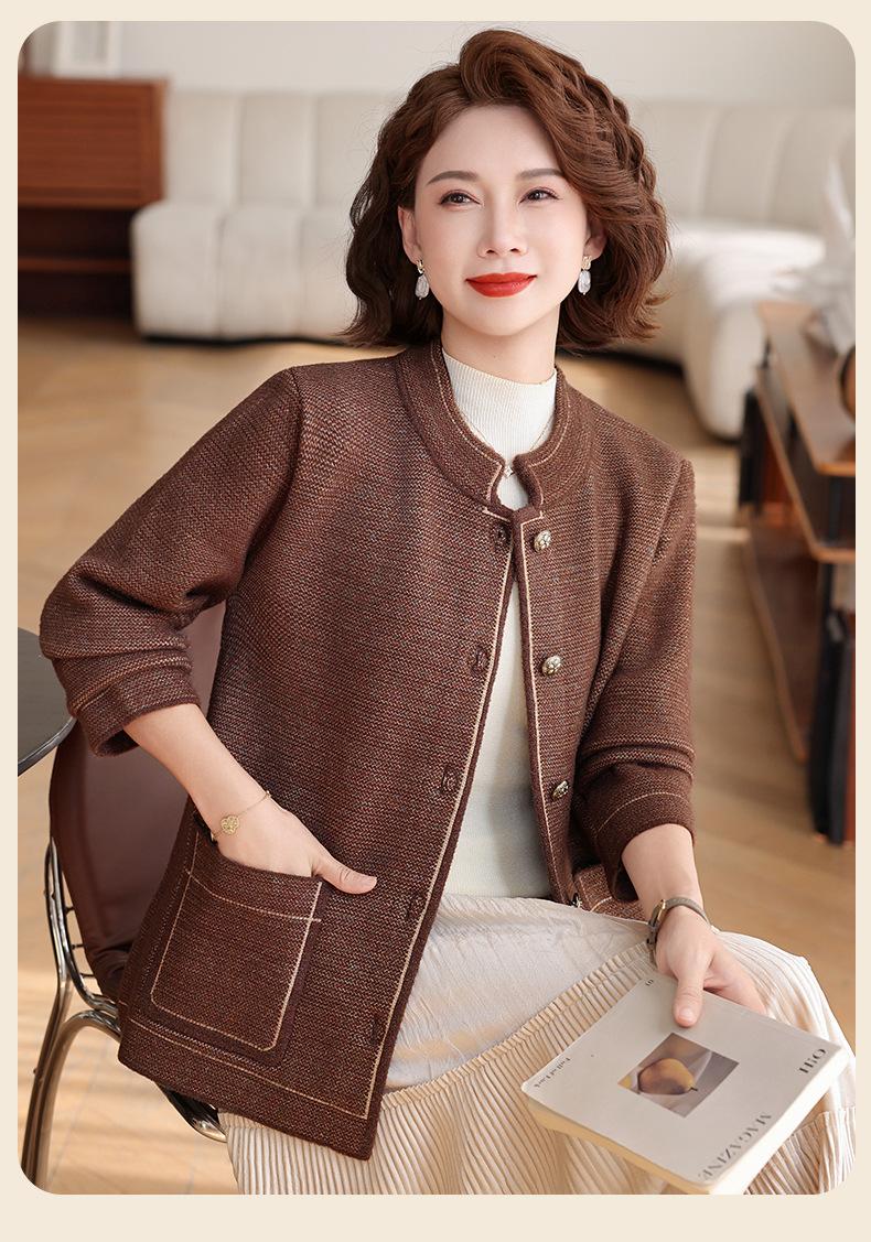Atuendo de Otoño para Mamá Abrigo Petite Cuello Redondo Estilo Chanel Lana Madura y Adulta Suéter Tejido Top Abrigo Corto Versátil