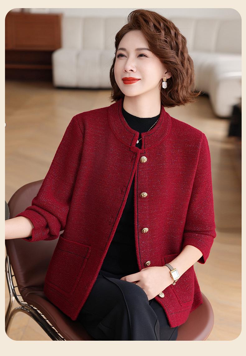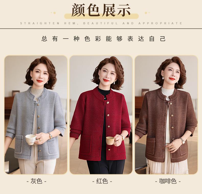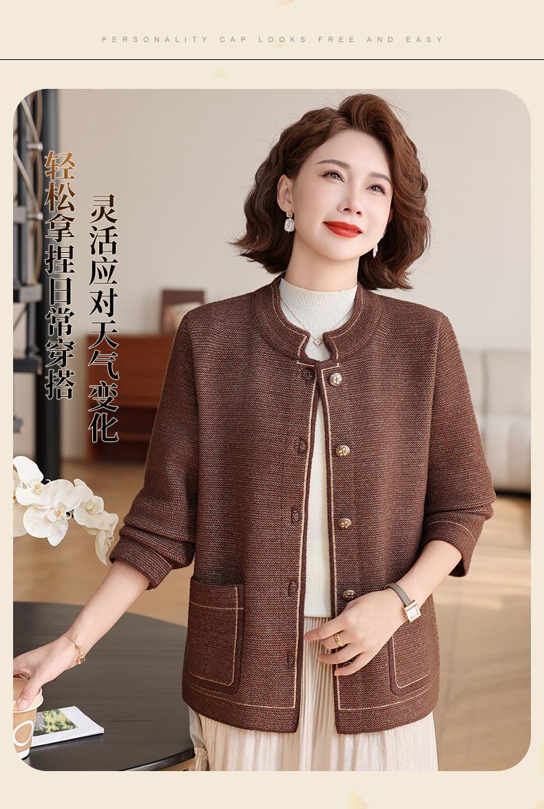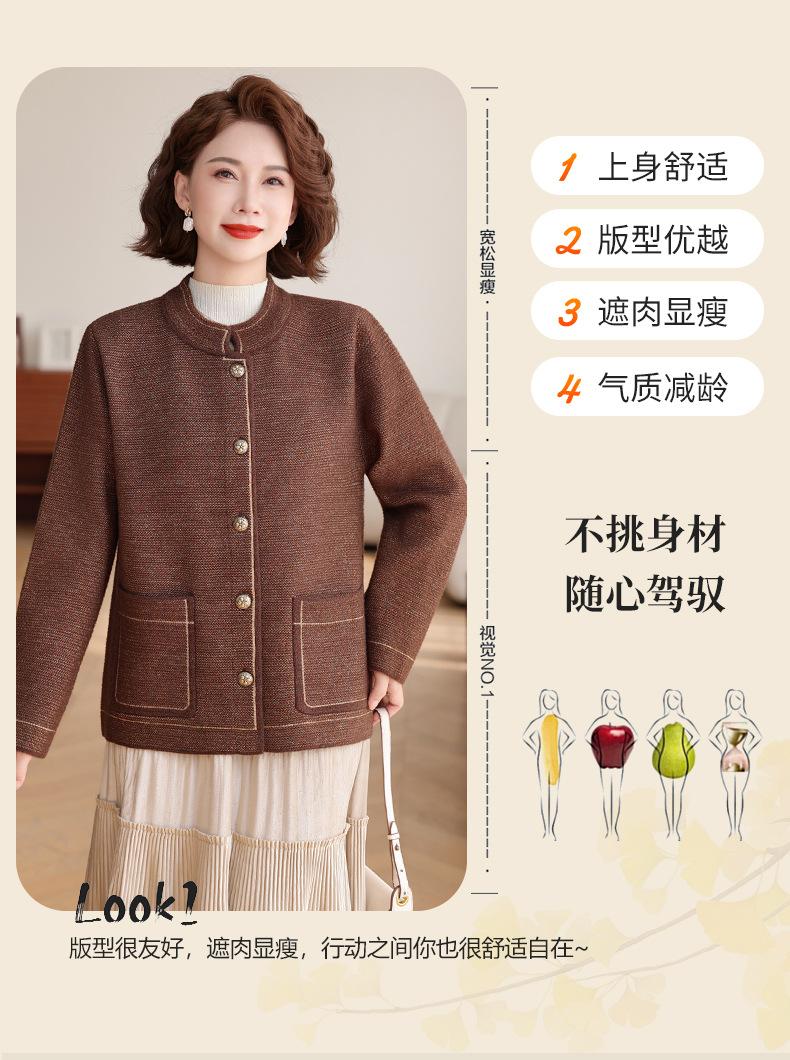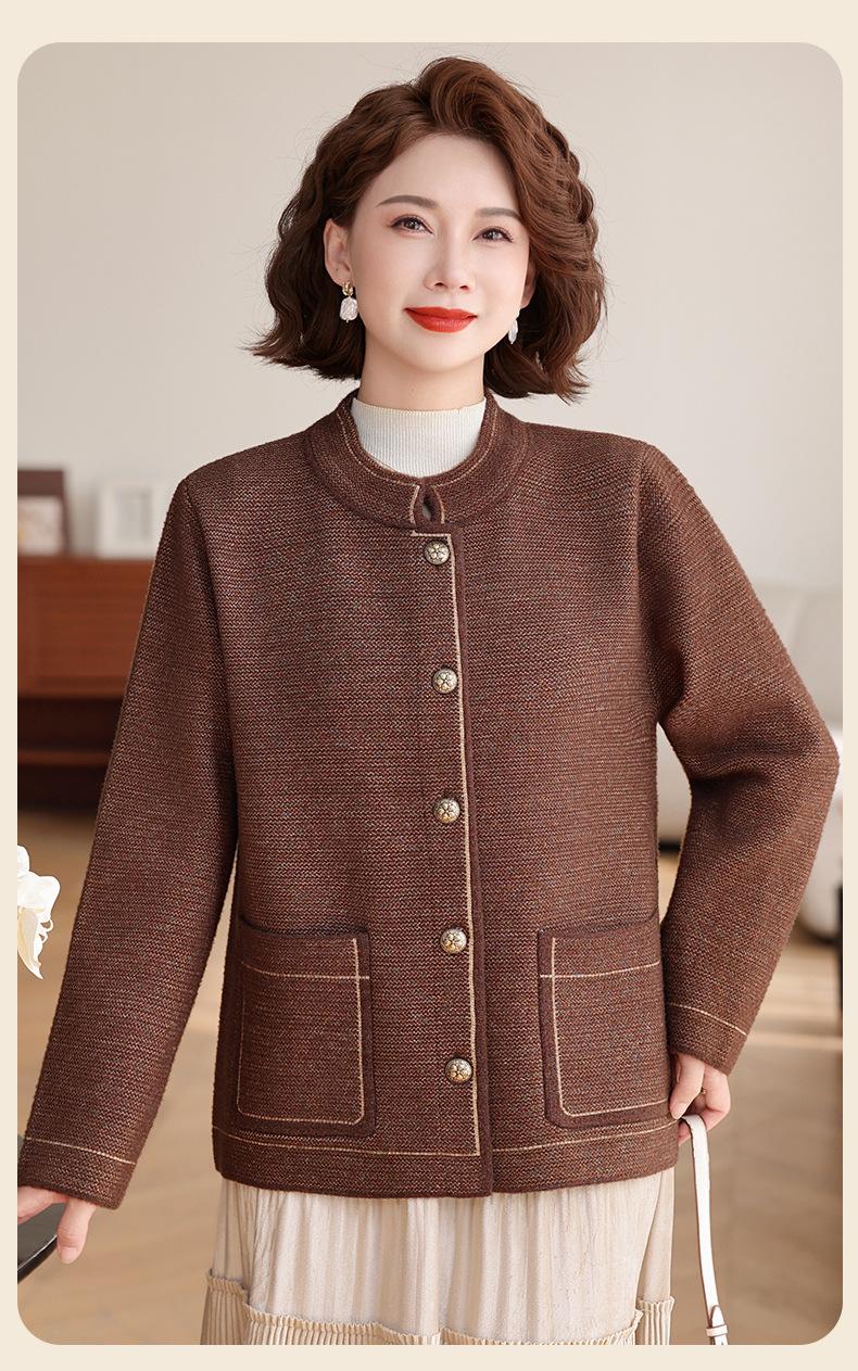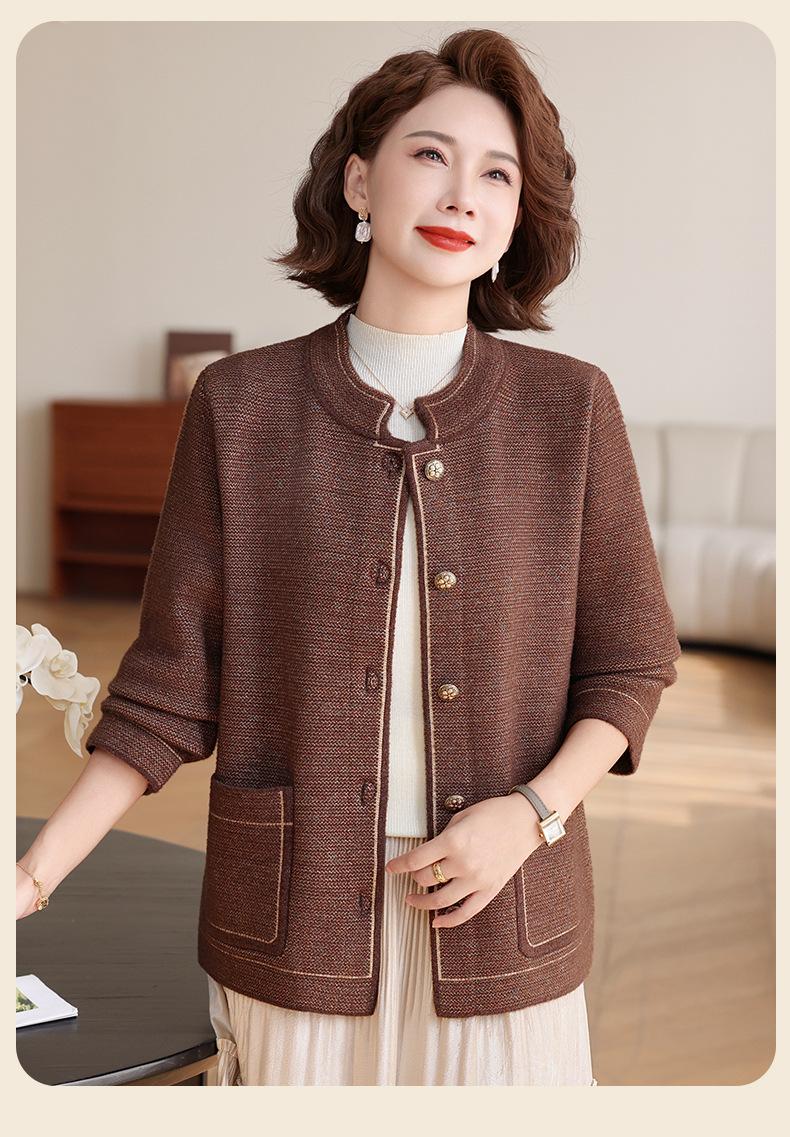 Atuendo de Otoño para Mamá Abrigo Petite Cuello Redondo Estilo Chanel Lana Madura y Adulta Suéter Tejido Top Abrigo Corto Versátil