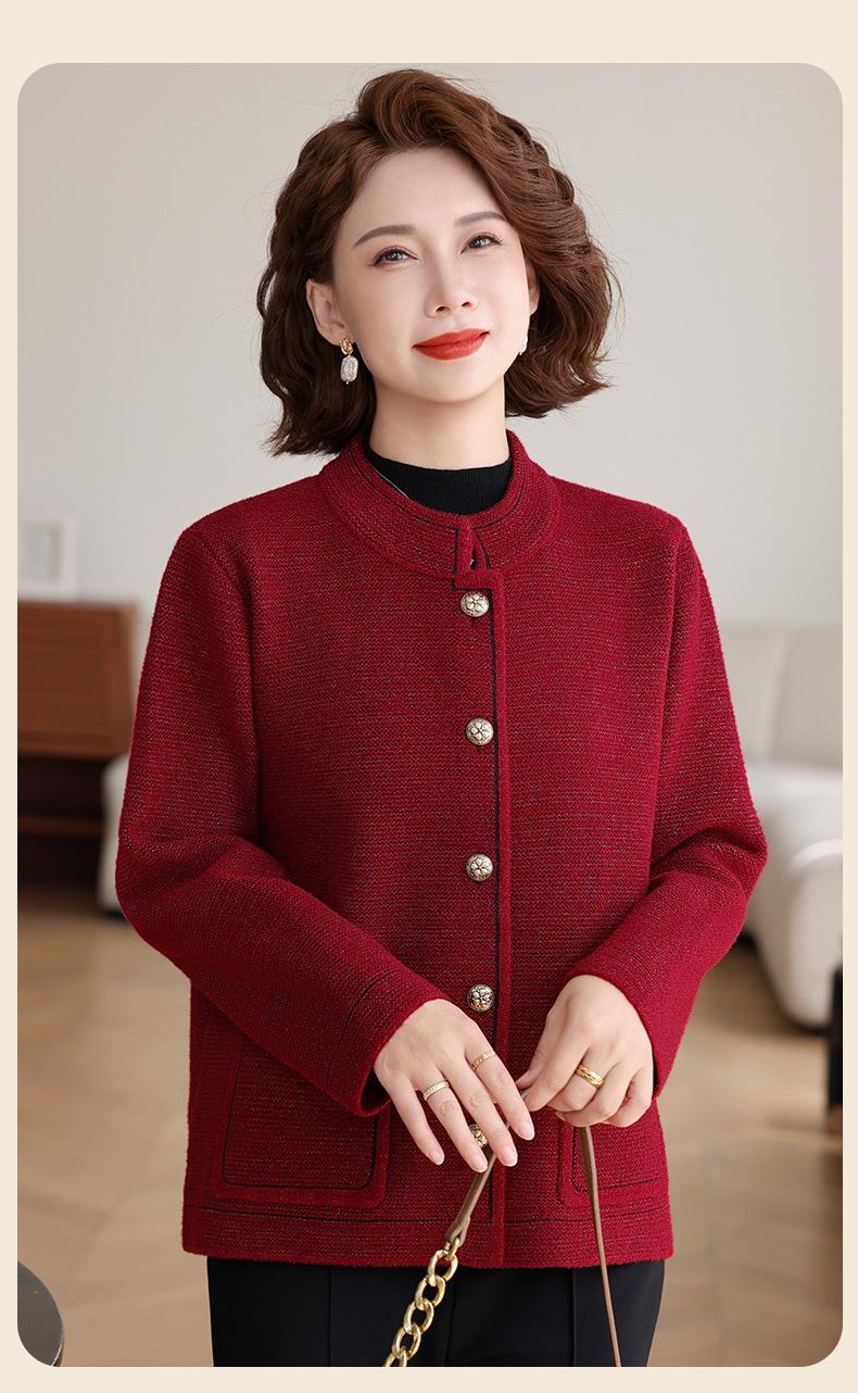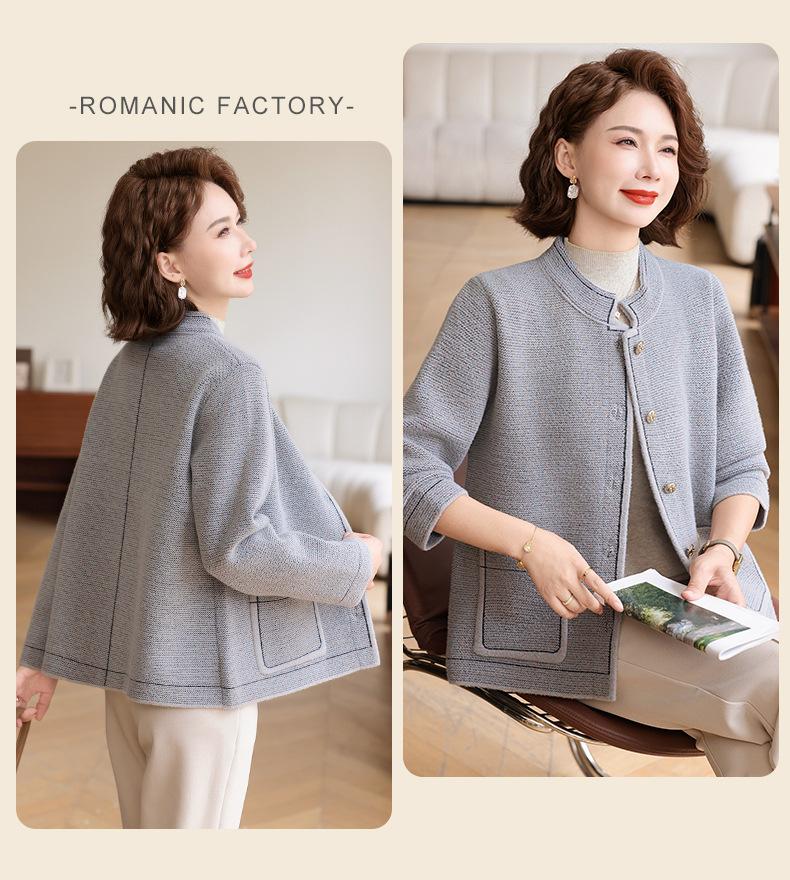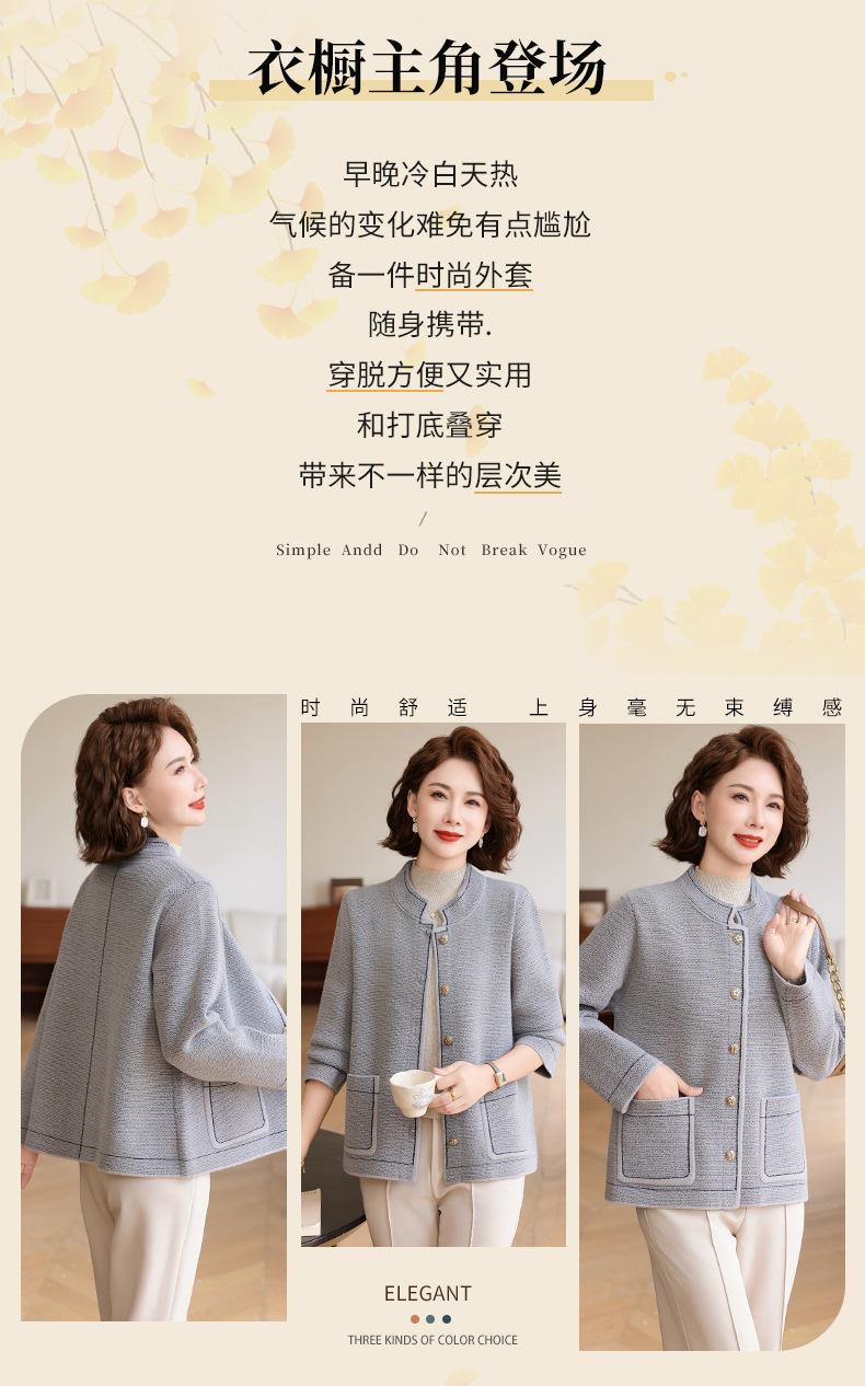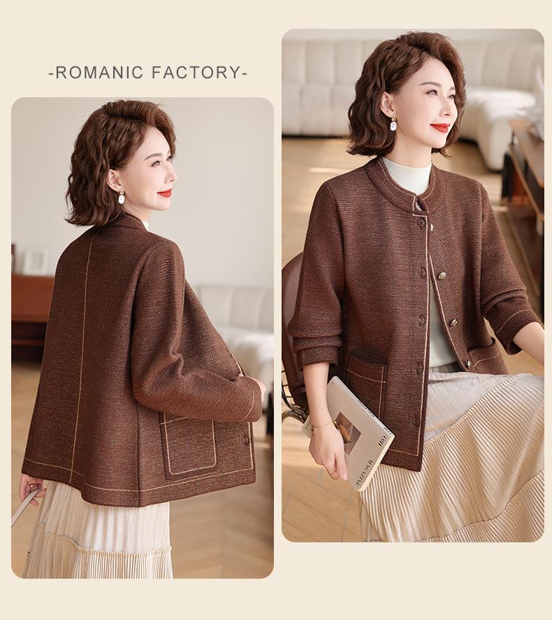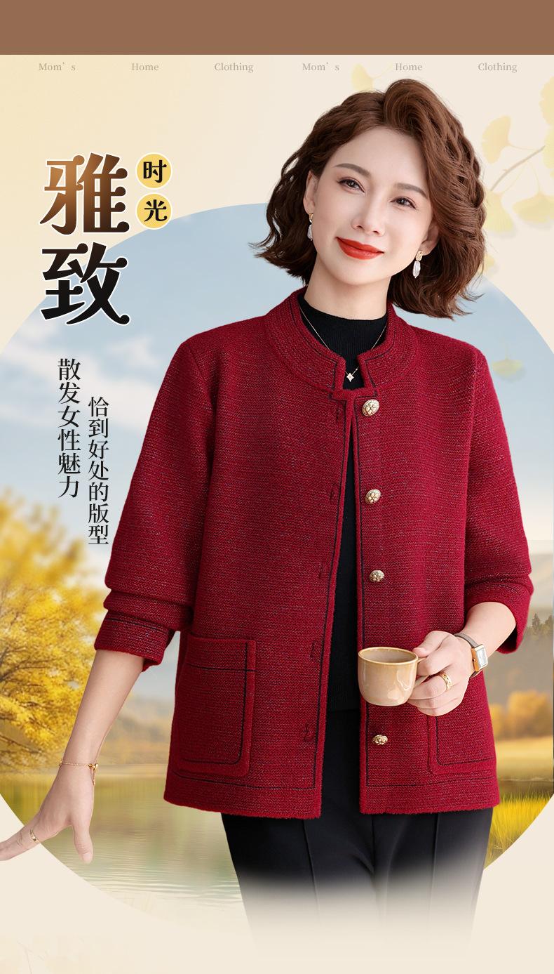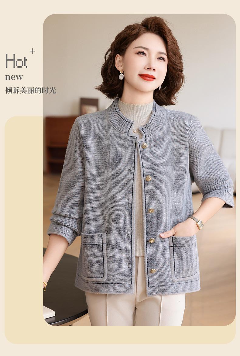 Atuendo de Otoño para Mamá Abrigo Petite Cuello Redondo Estilo Chanel Lana Madura y Adulta Suéter Tejido Top Abrigo Corto Versátil