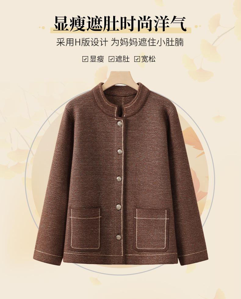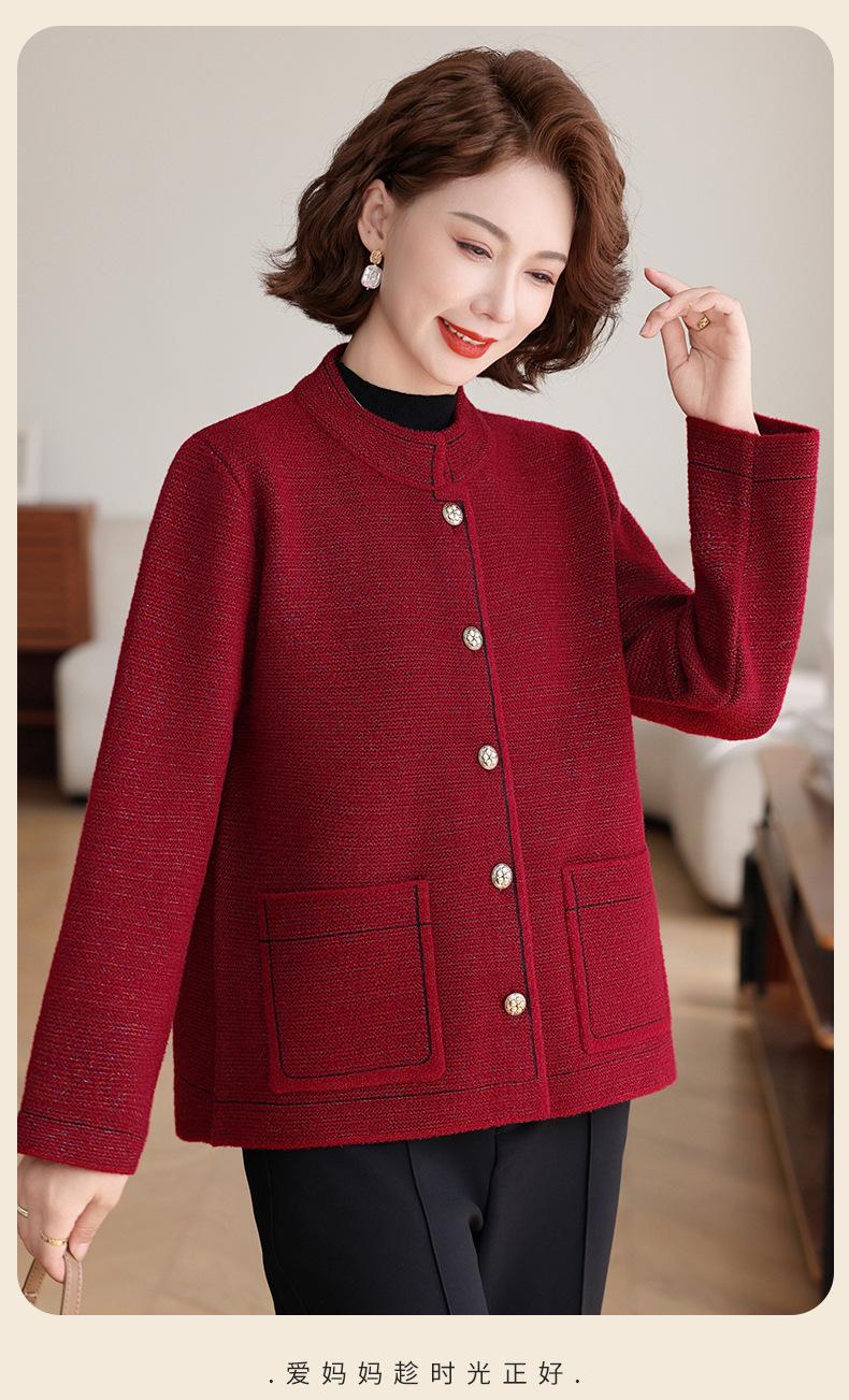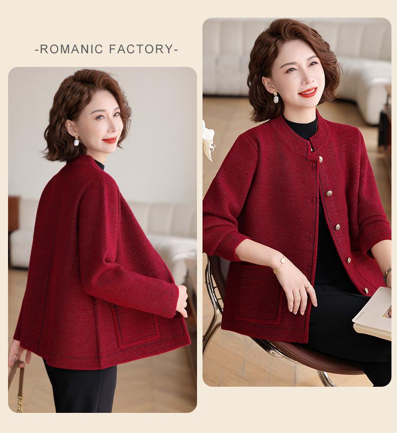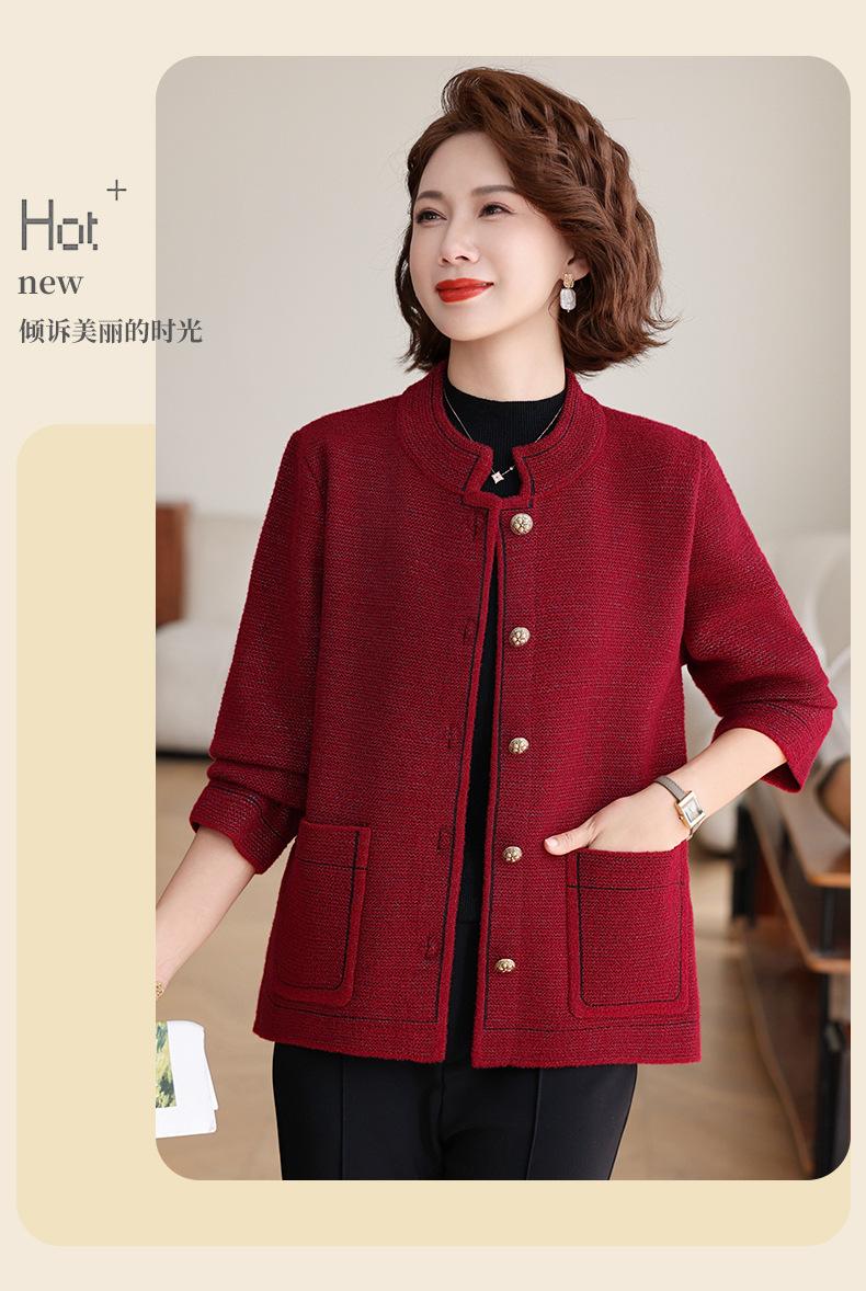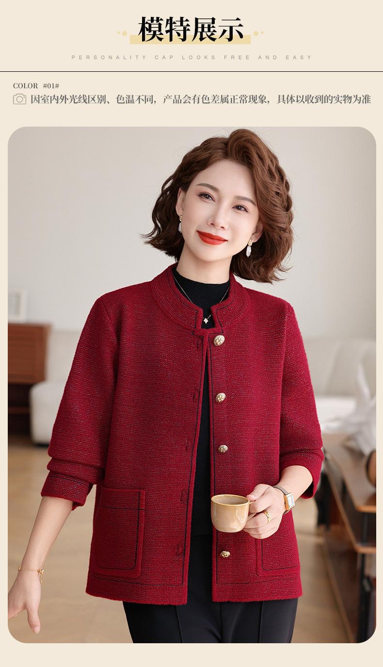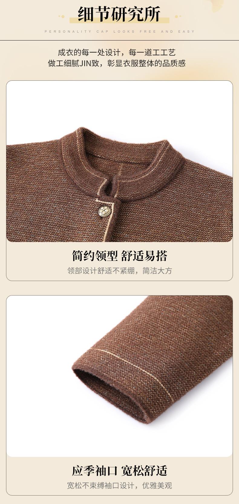 Atuendo de Otoño para Mamá Abrigo Petite Cuello Redondo Estilo Chanel Lana Madura y Adulta Suéter Tejido Top Abrigo Corto Versátil