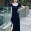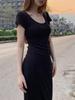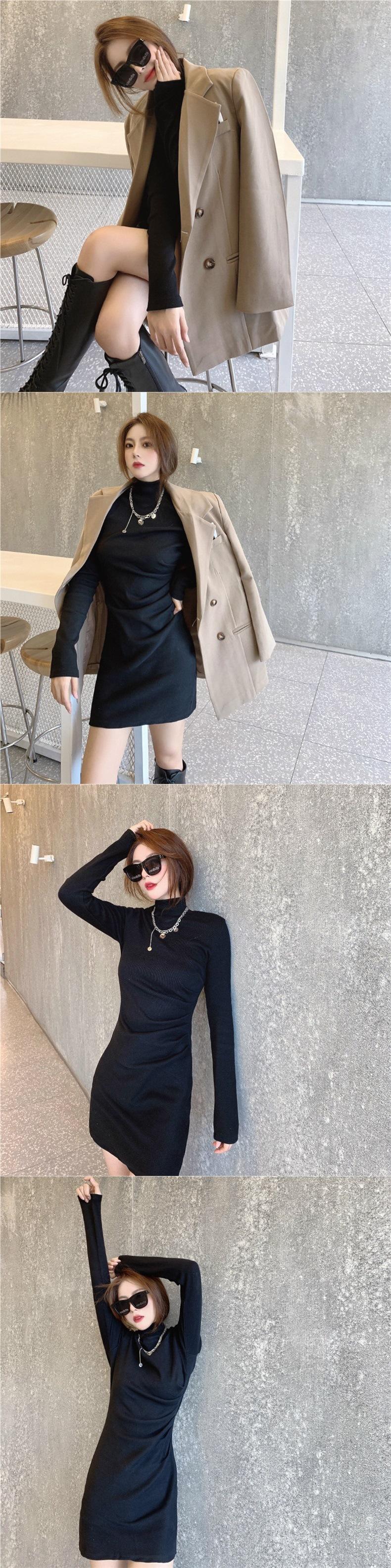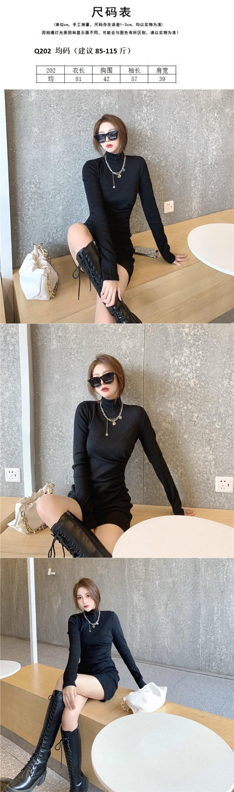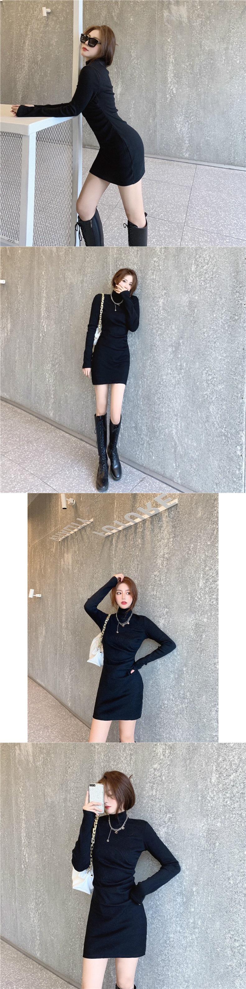 Moda de Primavera y Otoño Cuello Medio Alto Adelgazante y Favorecedor del Cuerpo Temperamento Avanzado de Diosa Vestido Bodycon de Manga Larga Falda Corta Estilo Callejero de Celebridad de Internet
