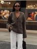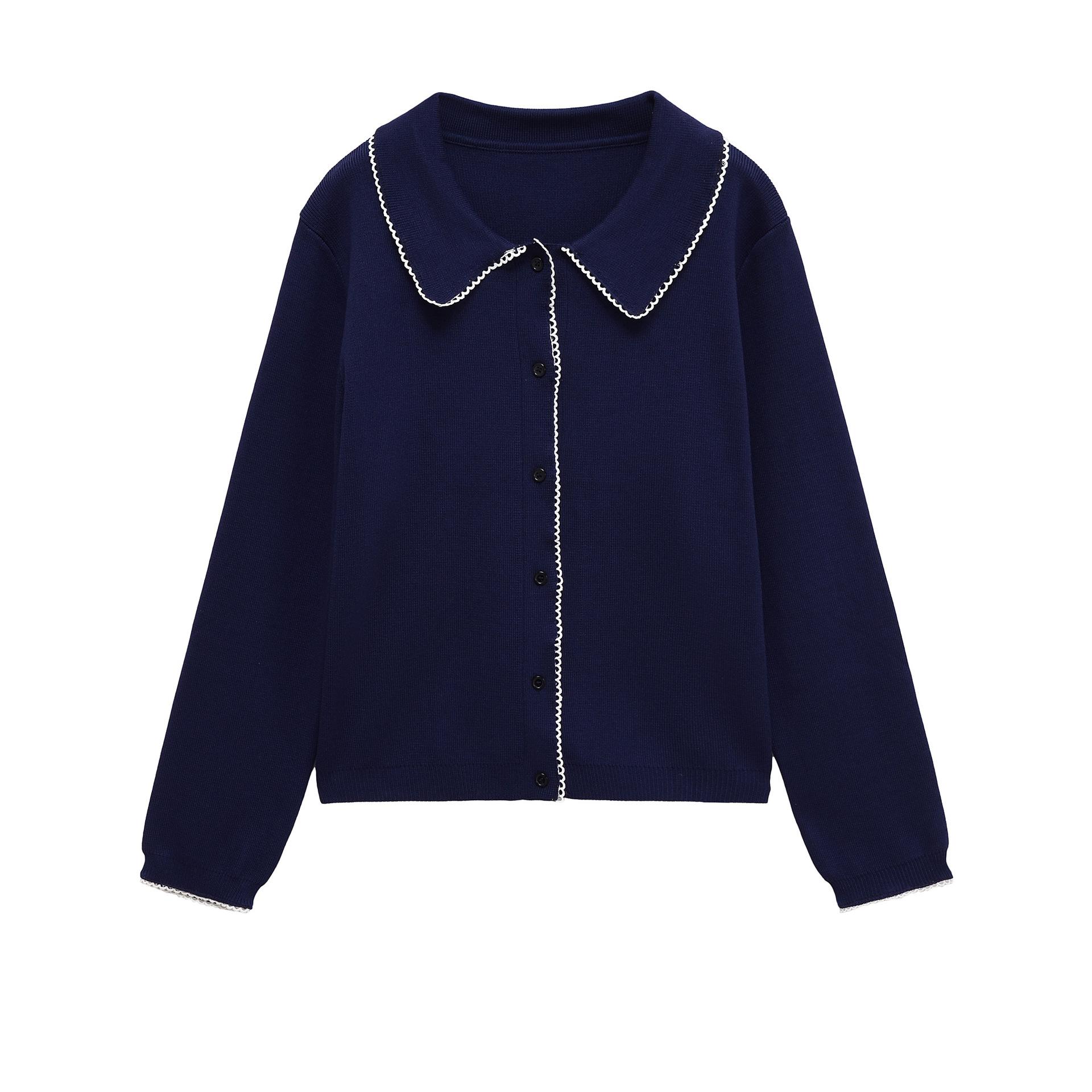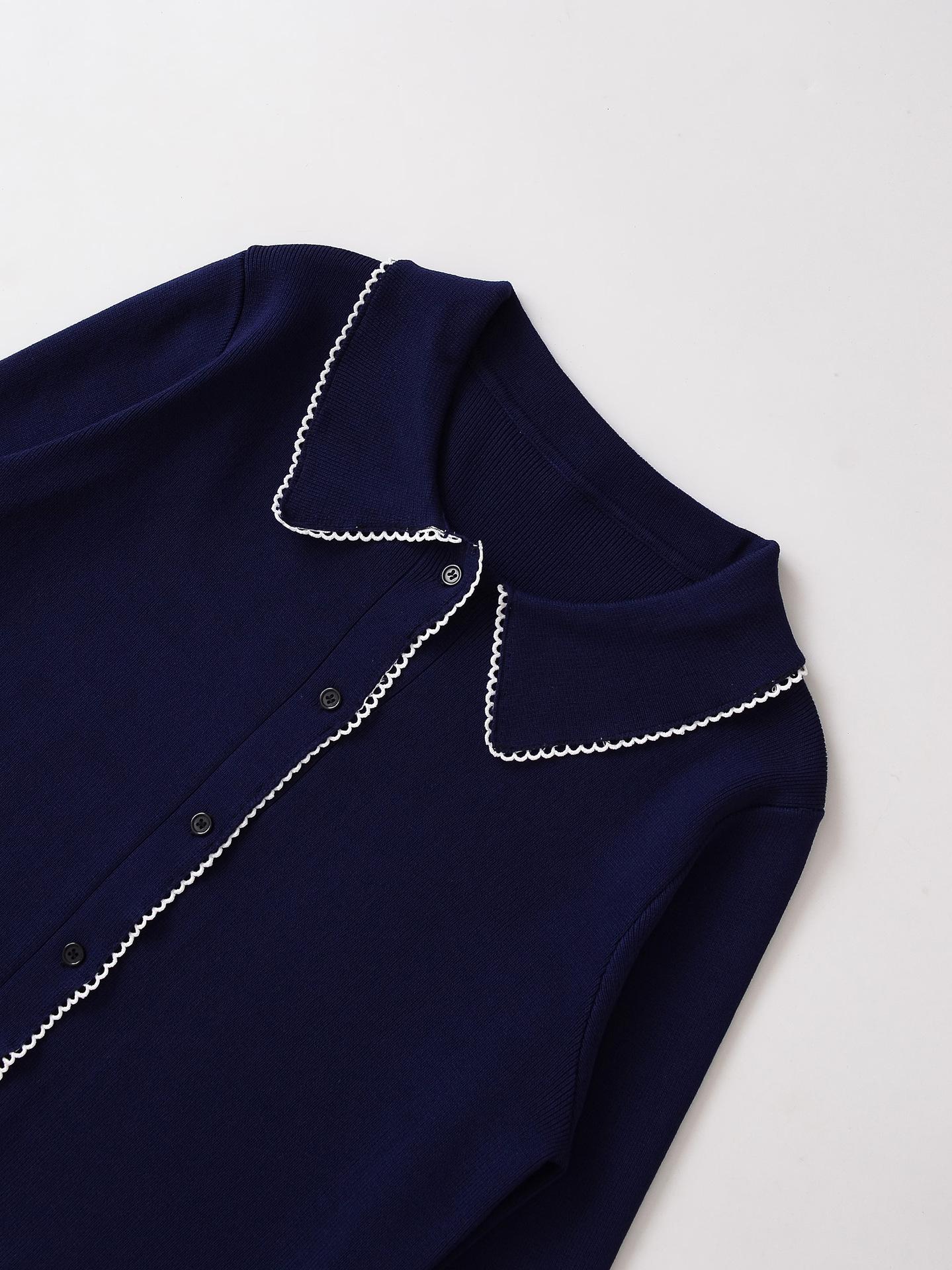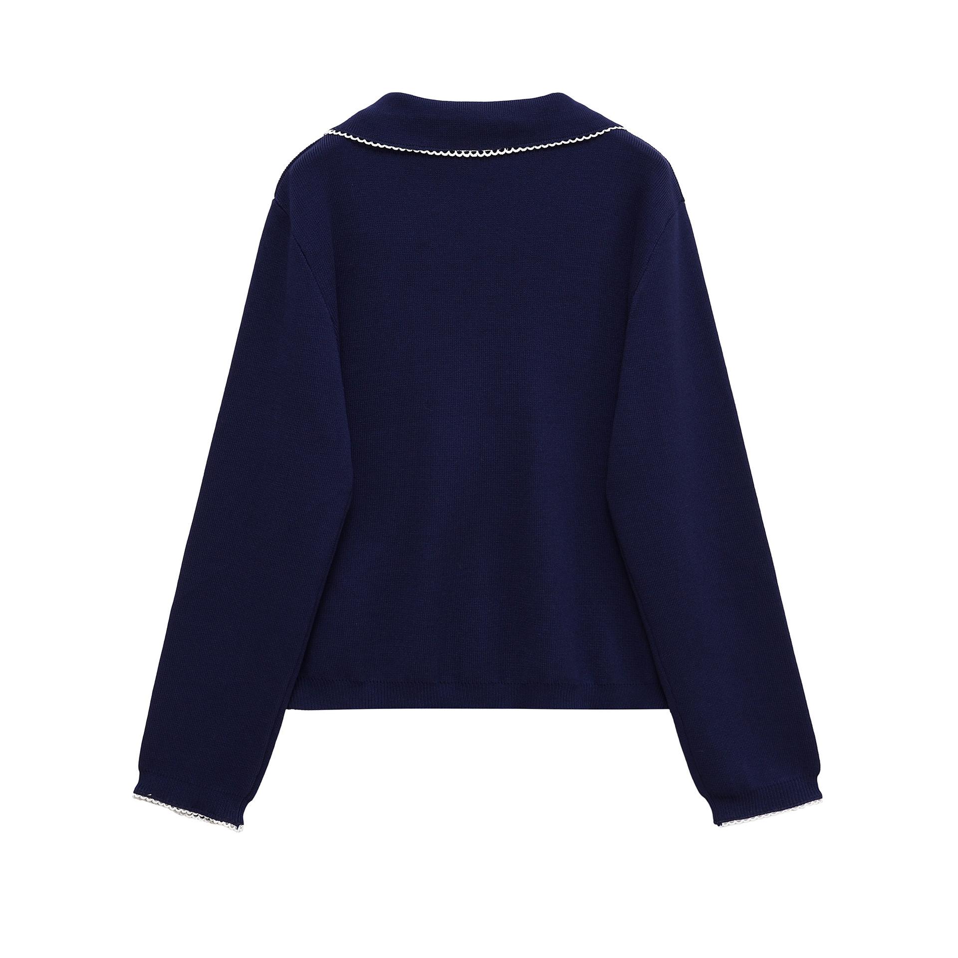 AliExpress Transfronterizo Más Vendido Moda Europea y Americana Casual Versátil Bloque de Color Botón Cuello Vuelto Manga Larga Tejido de Punto