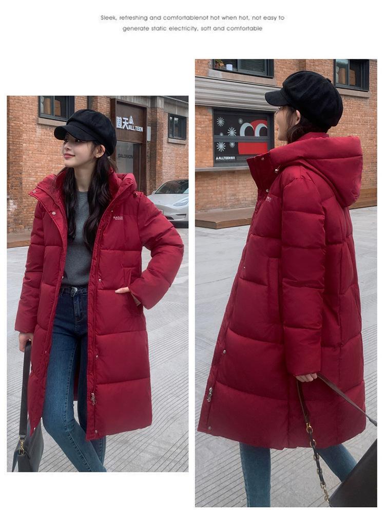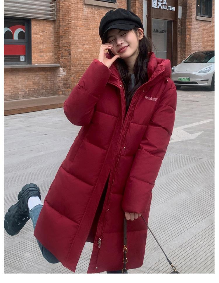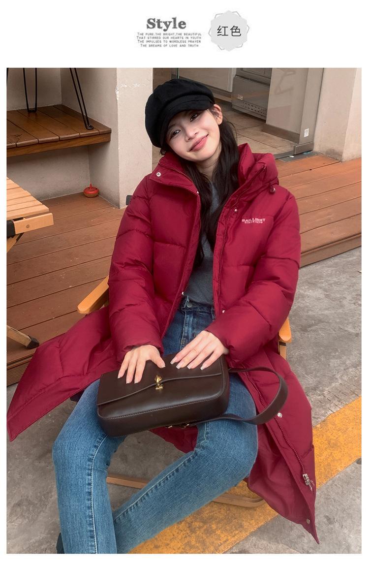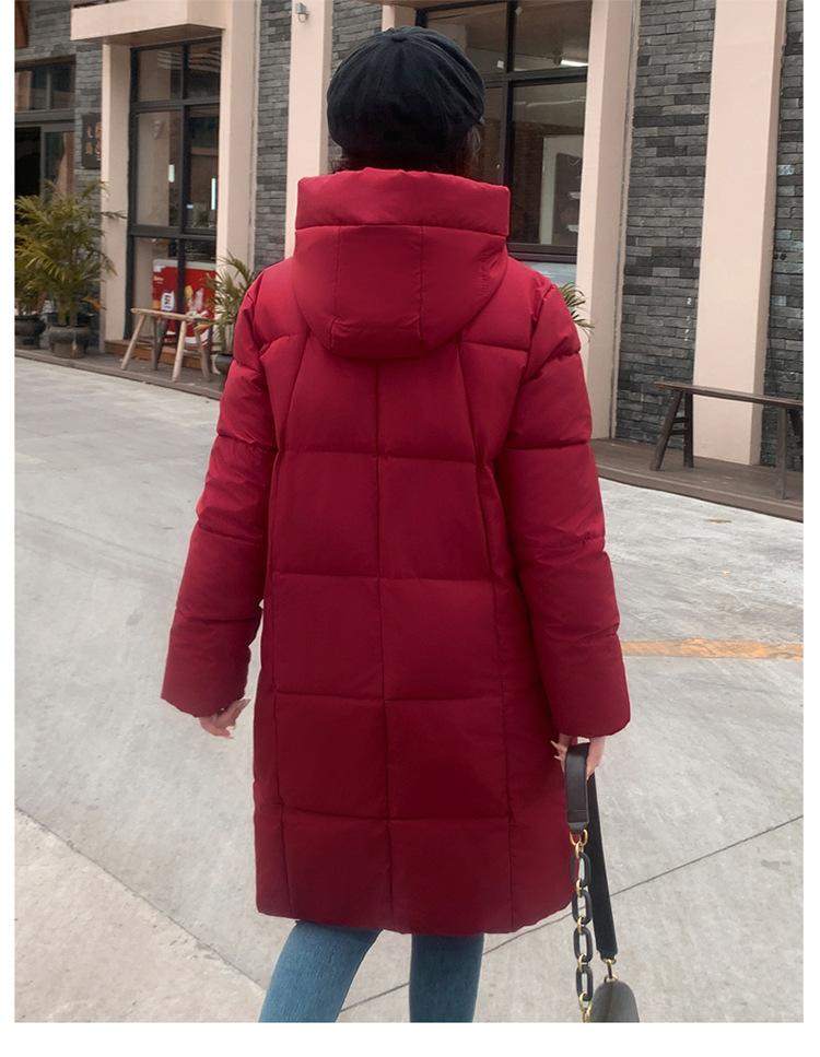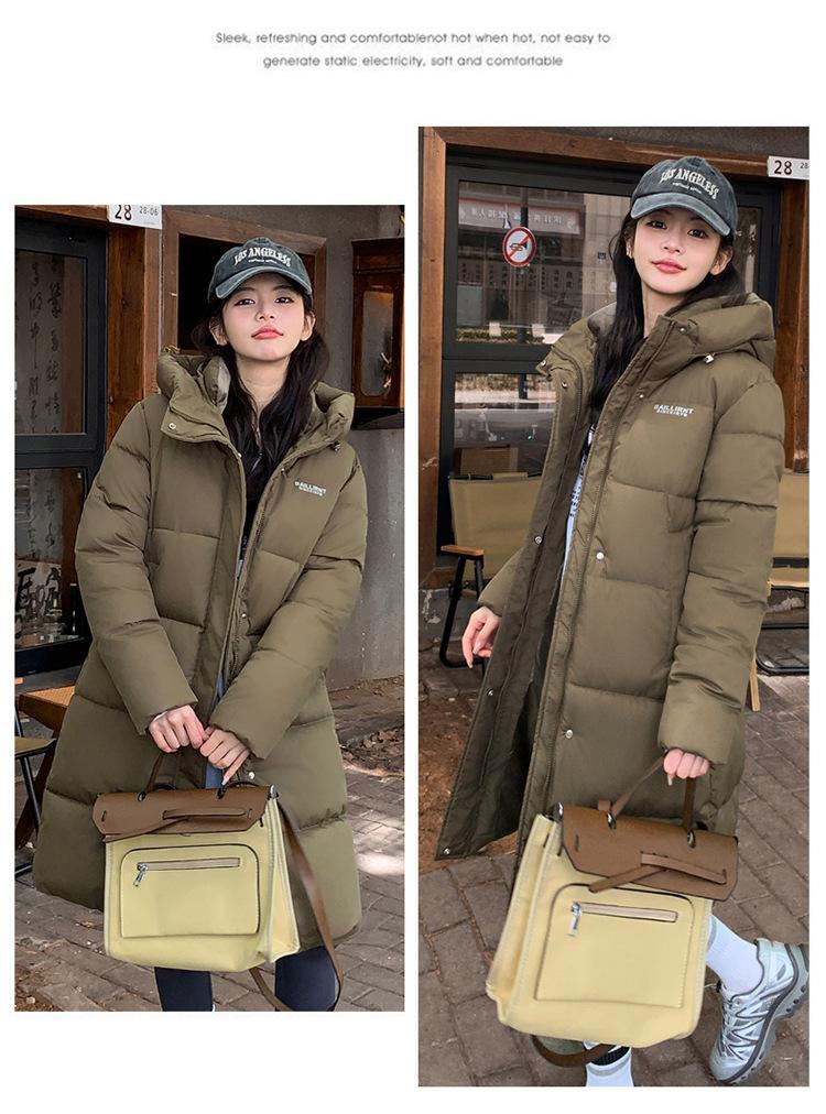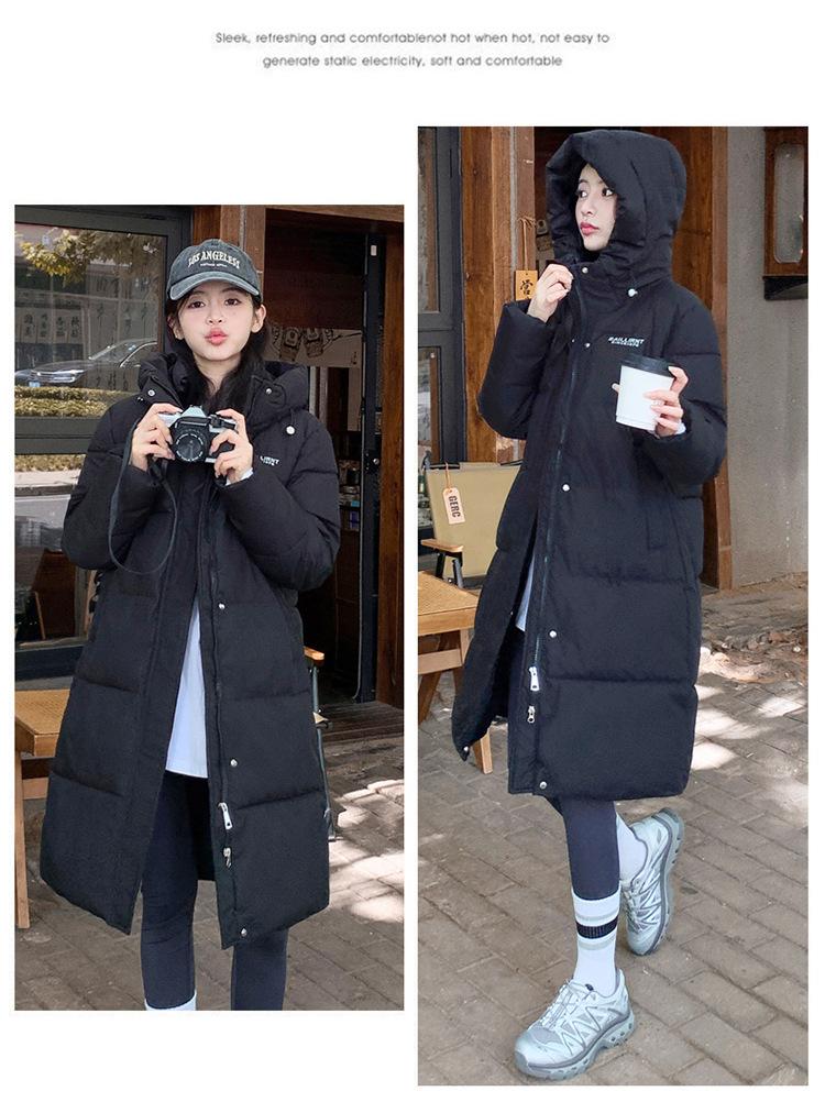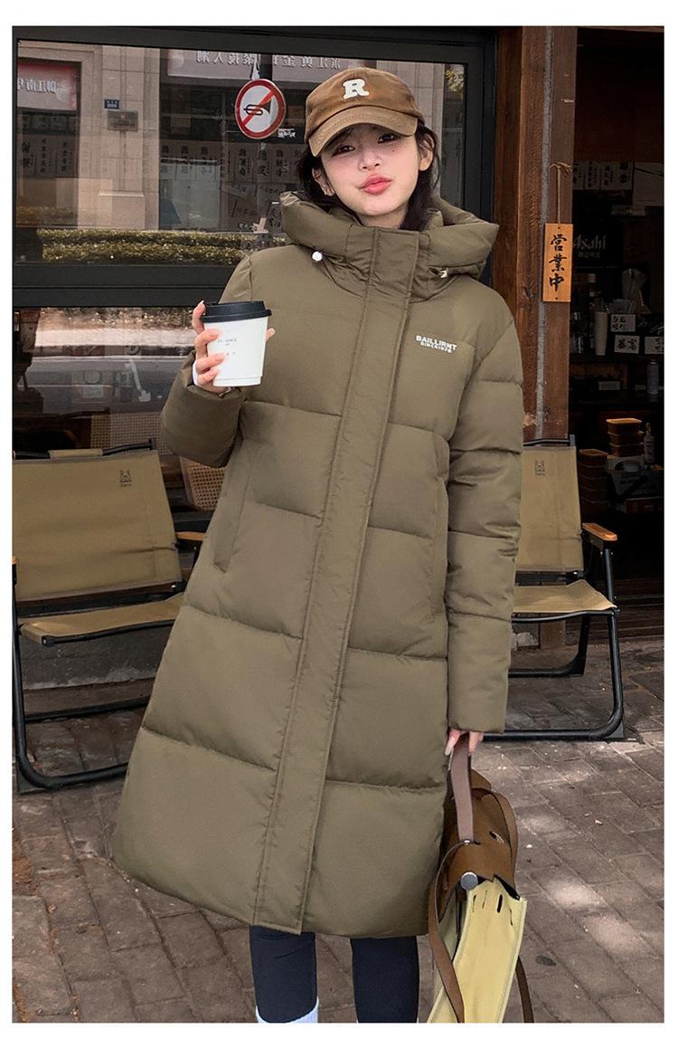 2024 Nuevo Abrigo de Algodón de Invierno de Estilo Coreano de Longitud Media con Capucha sobre la Rodilla Suelto Talla Grande Abrigo de Madre Abrigo de Algodón