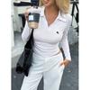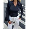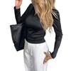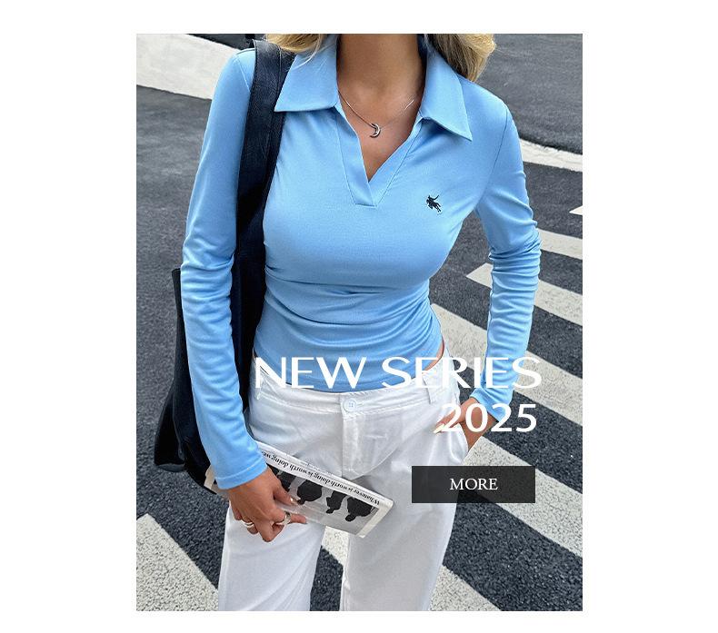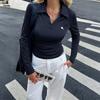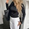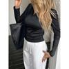 Camisa casual de viaje transfronteriza europea y americana de color sólido y manga larga, camiseta para mujer 2025 otoño e invierno estación independiente top con cuello en V
