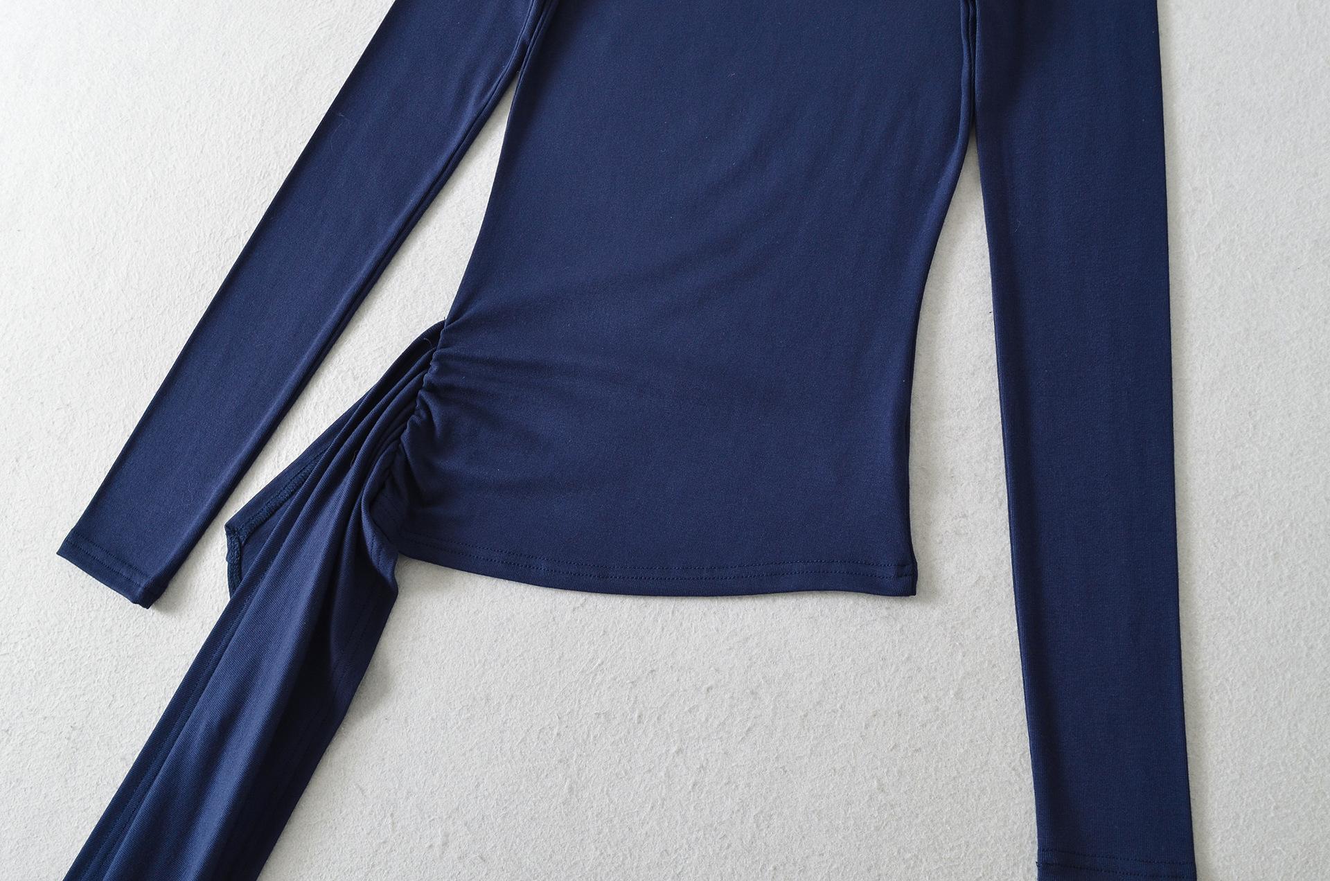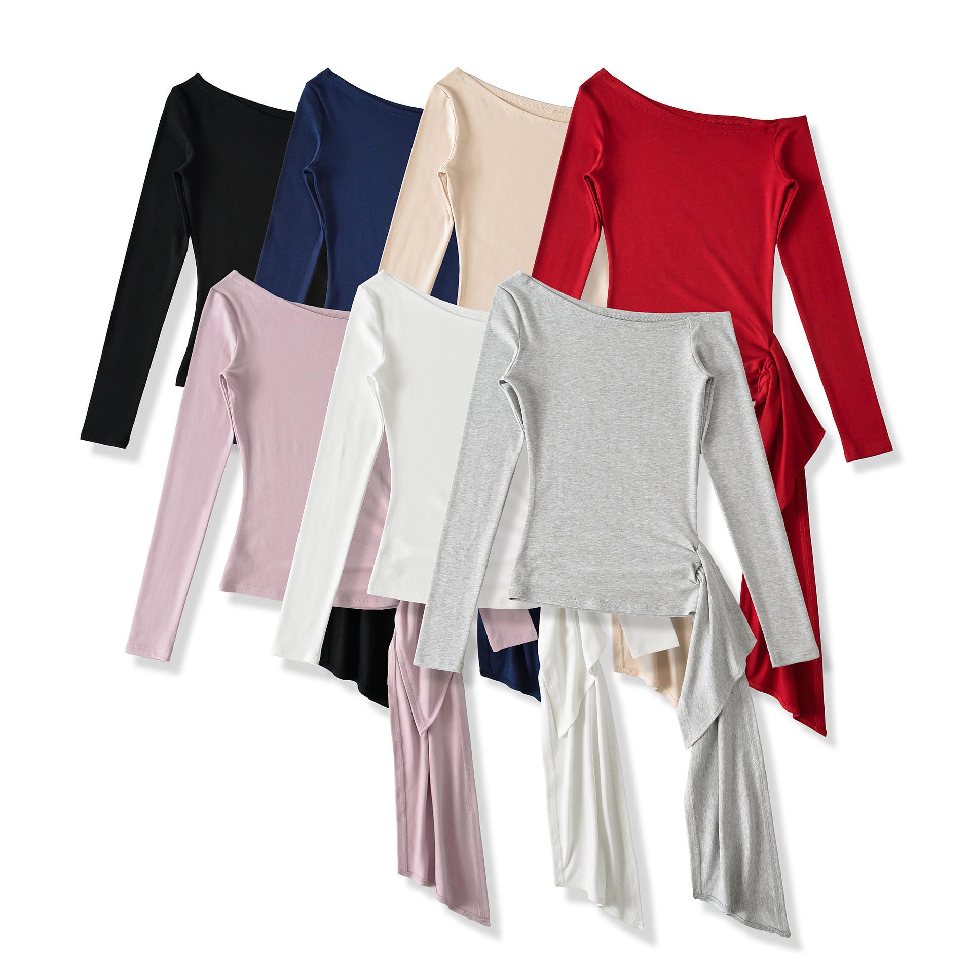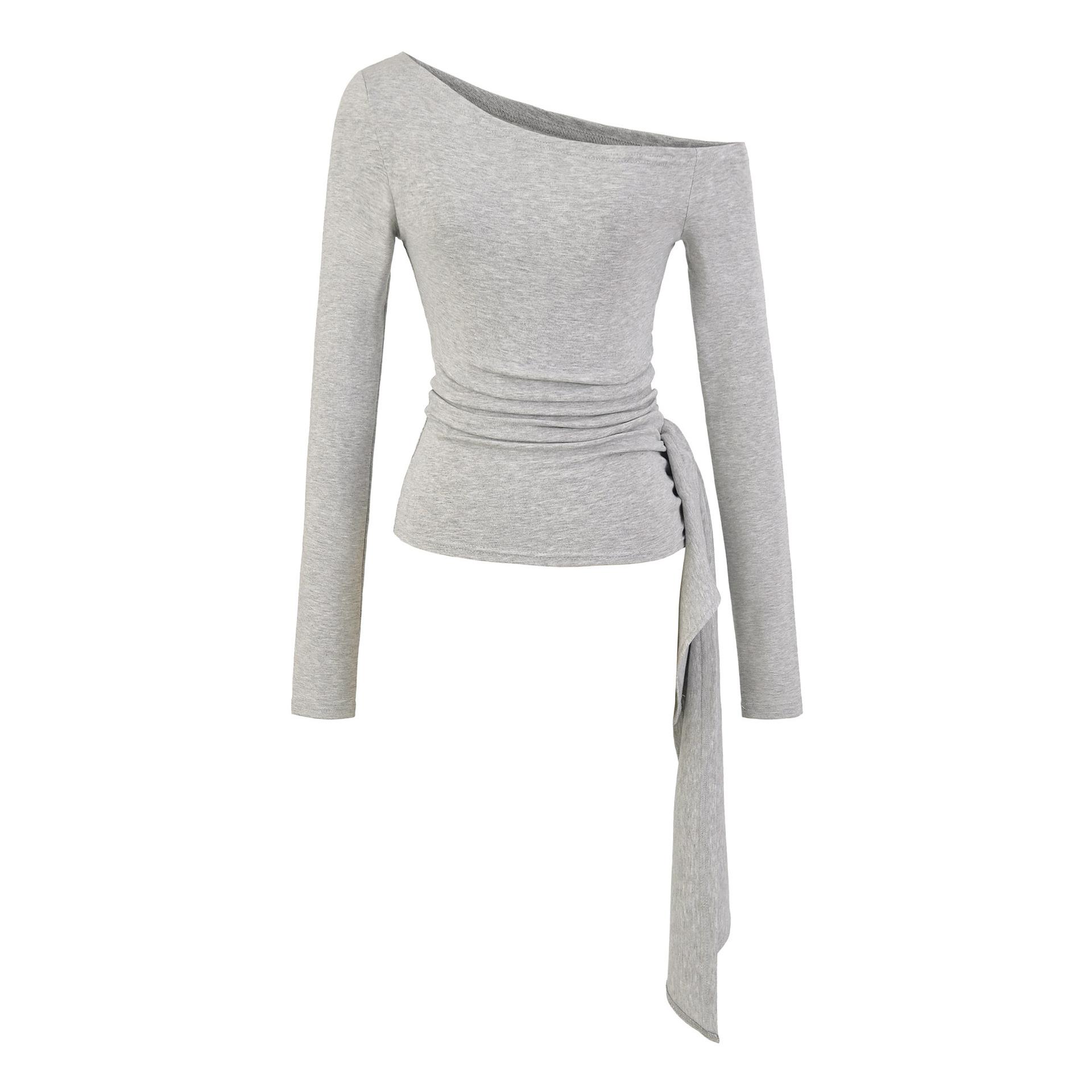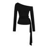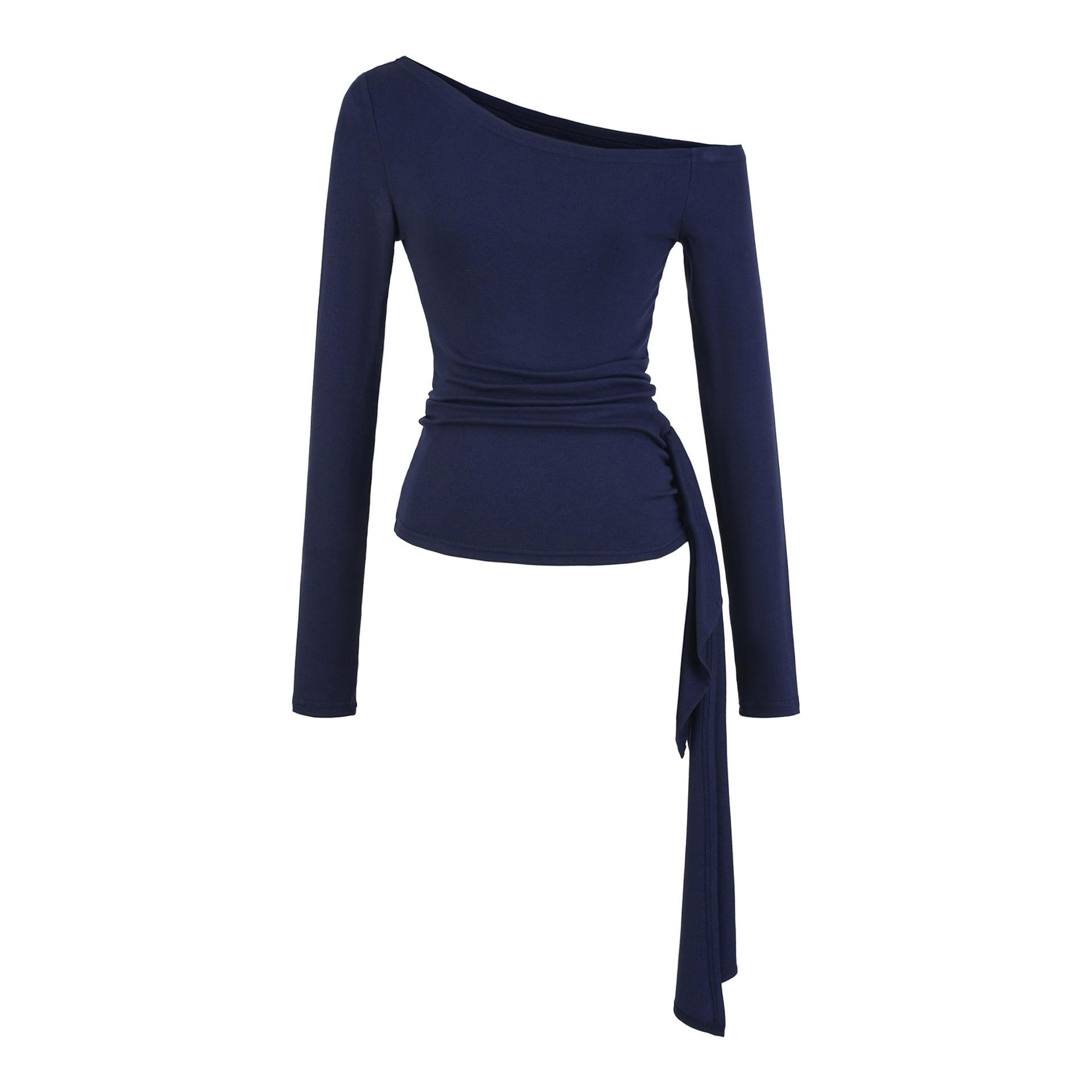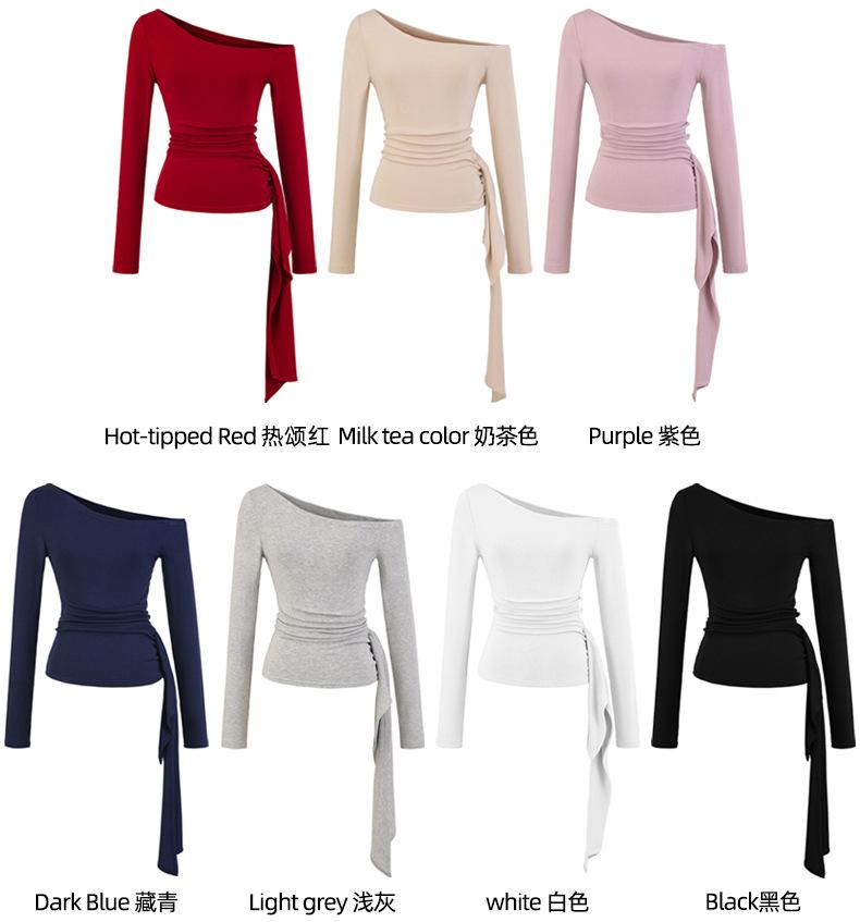 Sexy Chica Caliente Un Hombro Manga Larga Irregular Elástica Bodycon Camiseta Base Color Sólido Cintura Alta con Cordones Top Versátil Otoño