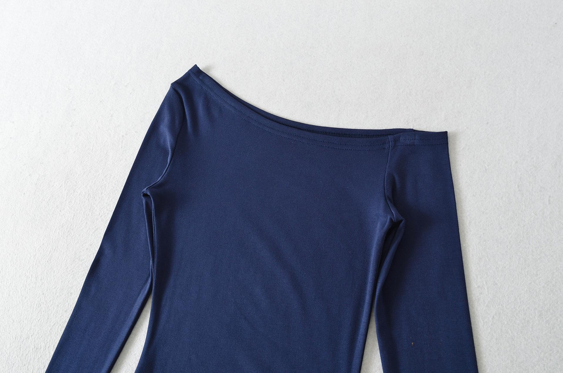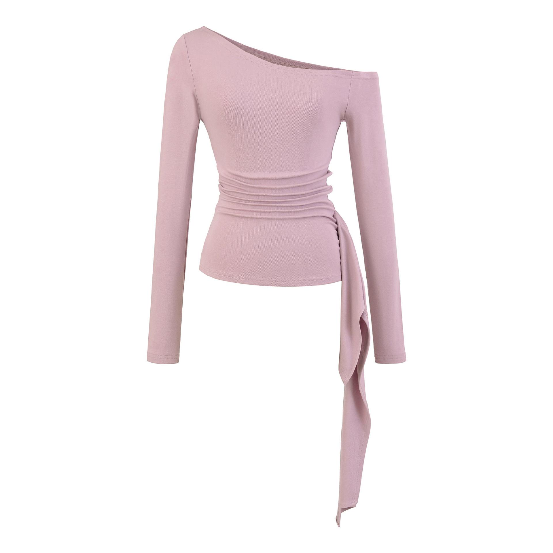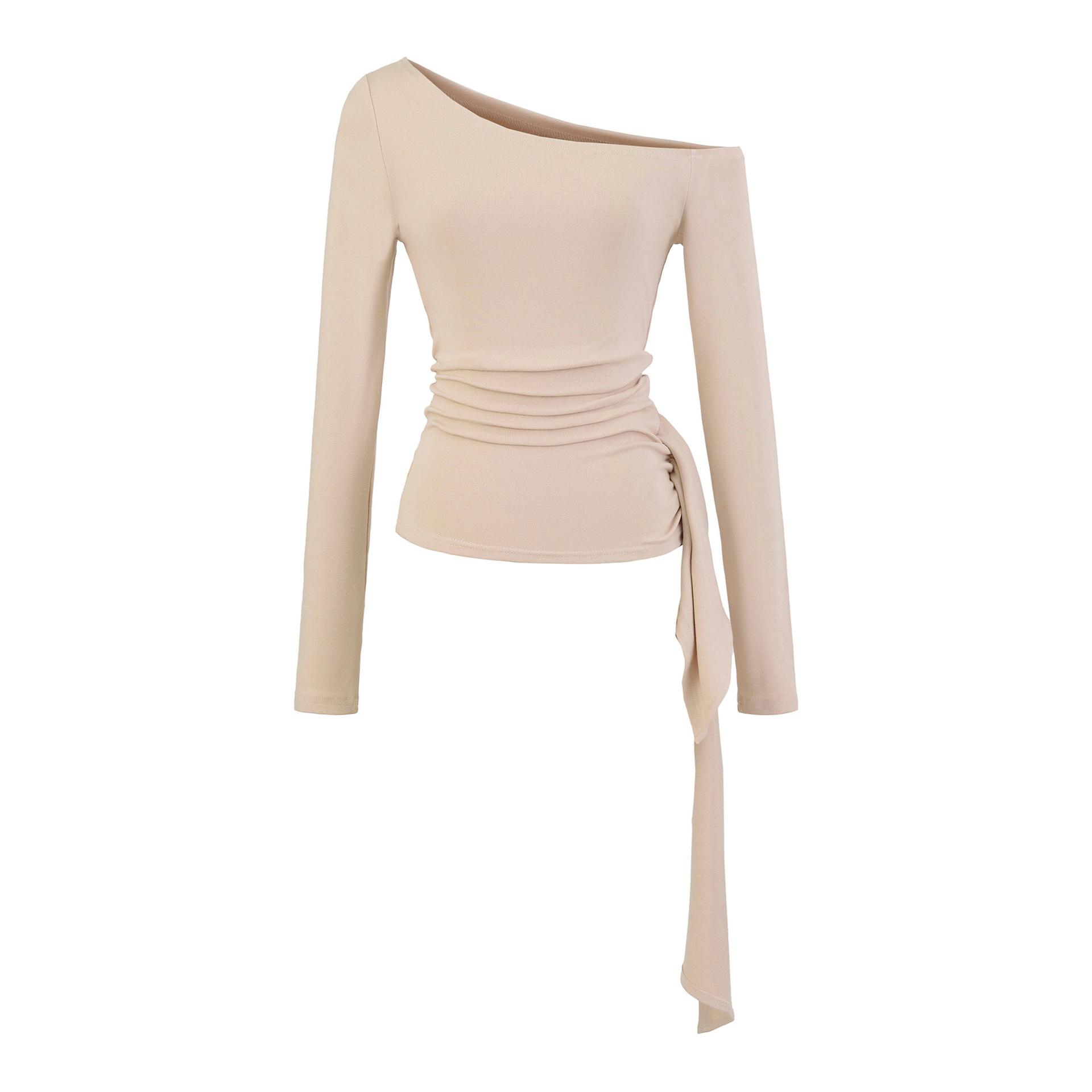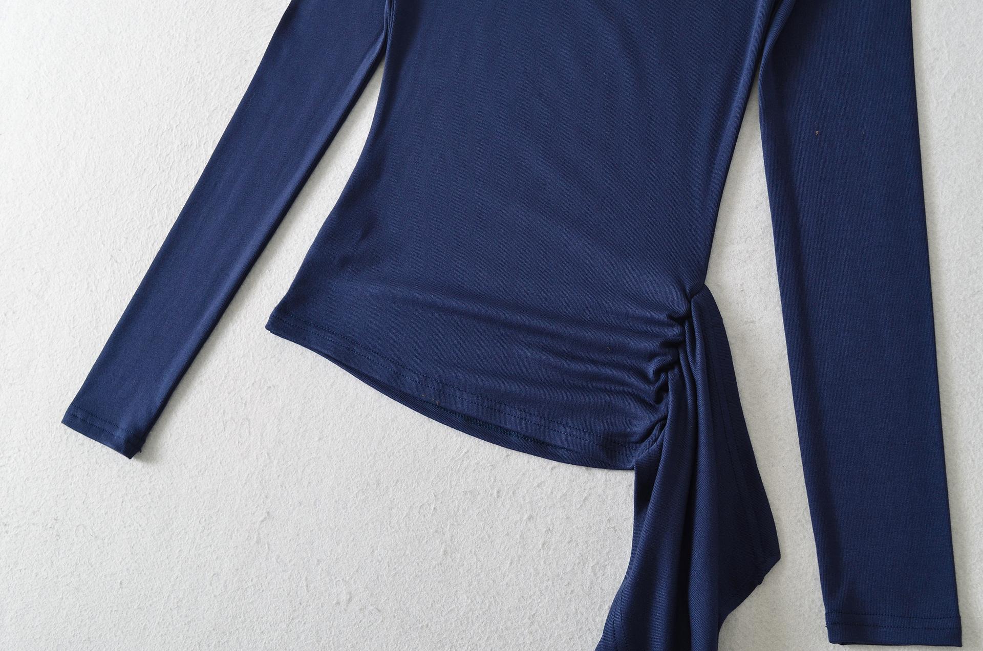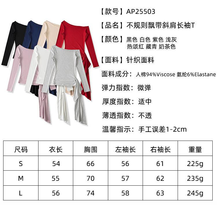 Sexy Chica Caliente Un Hombro Manga Larga Irregular Elástica Bodycon Camiseta Base Color Sólido Cintura Alta con Cordones Top Versátil Otoño