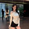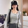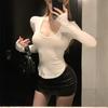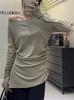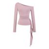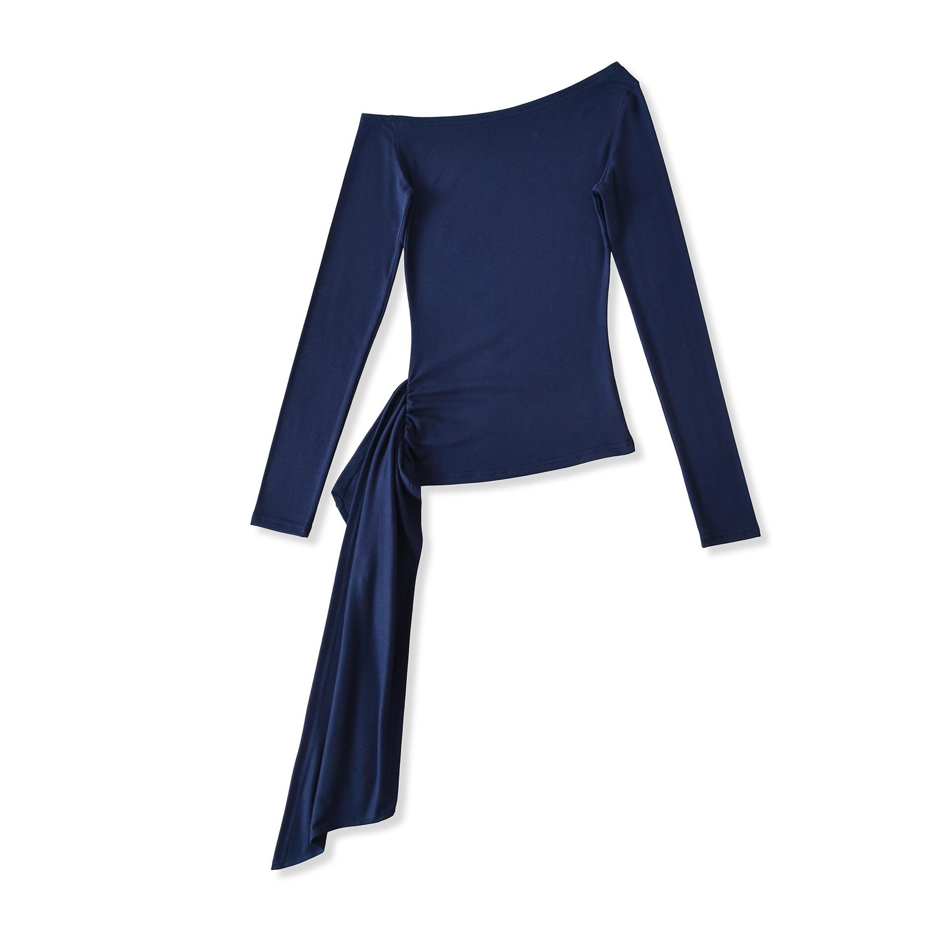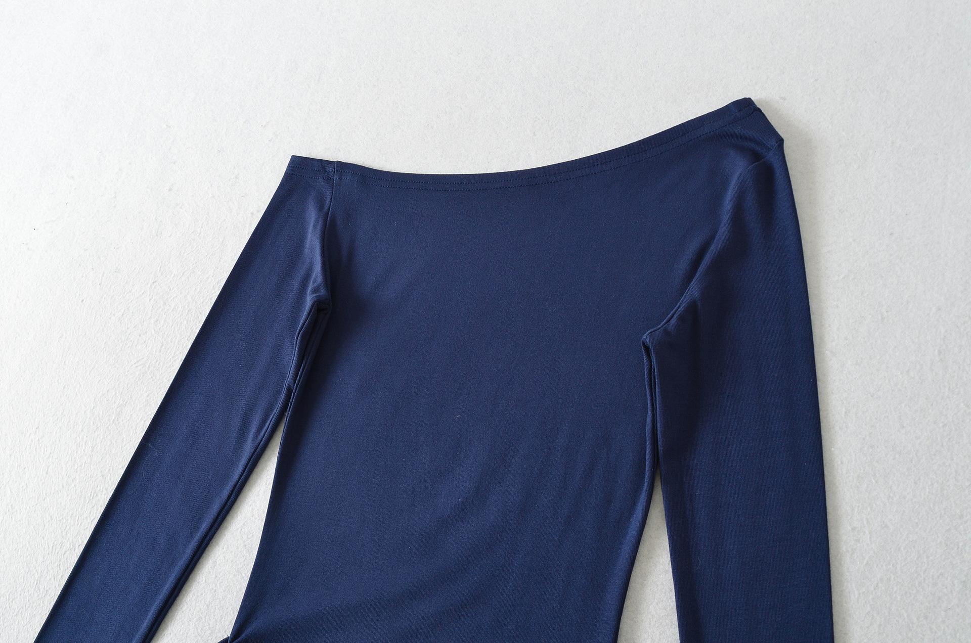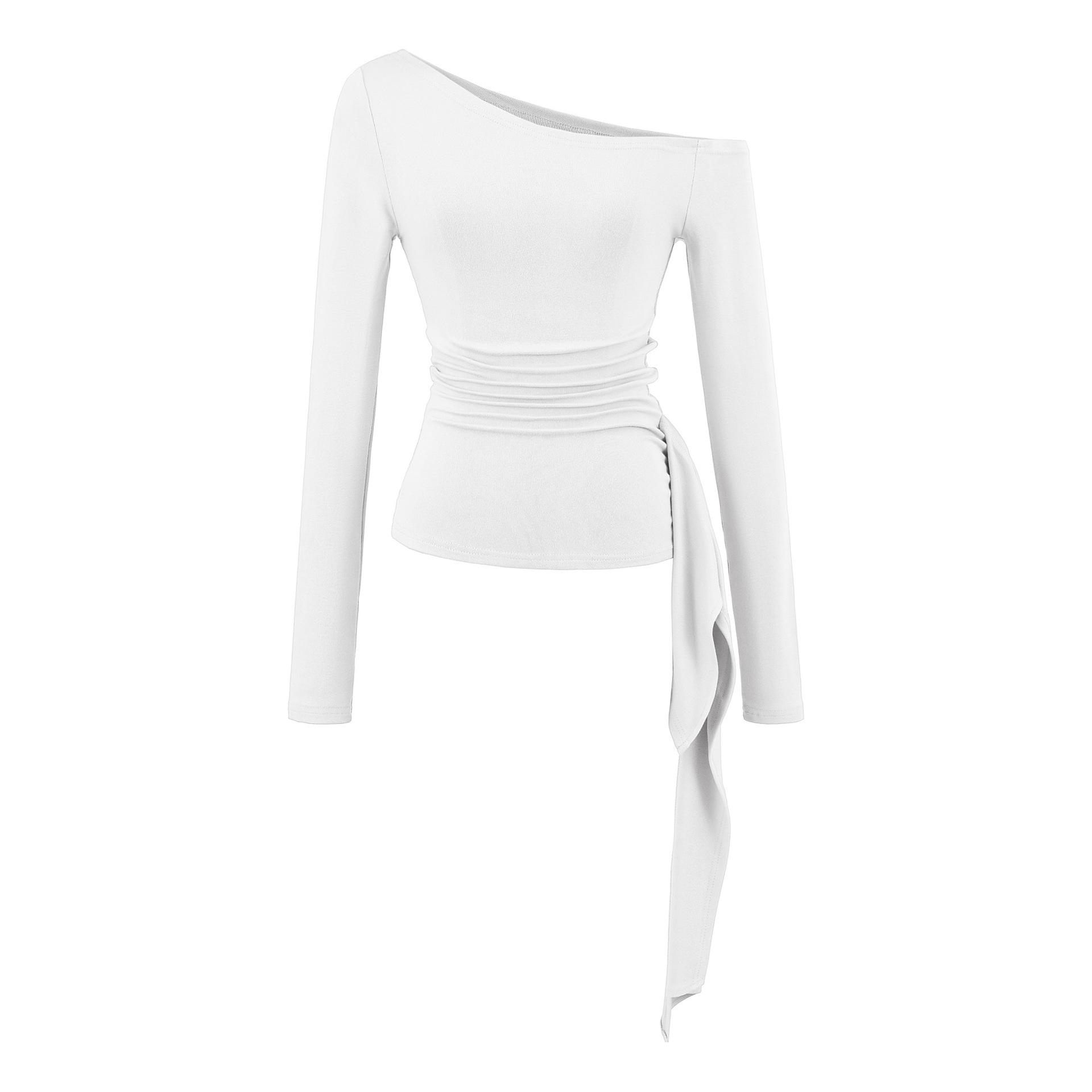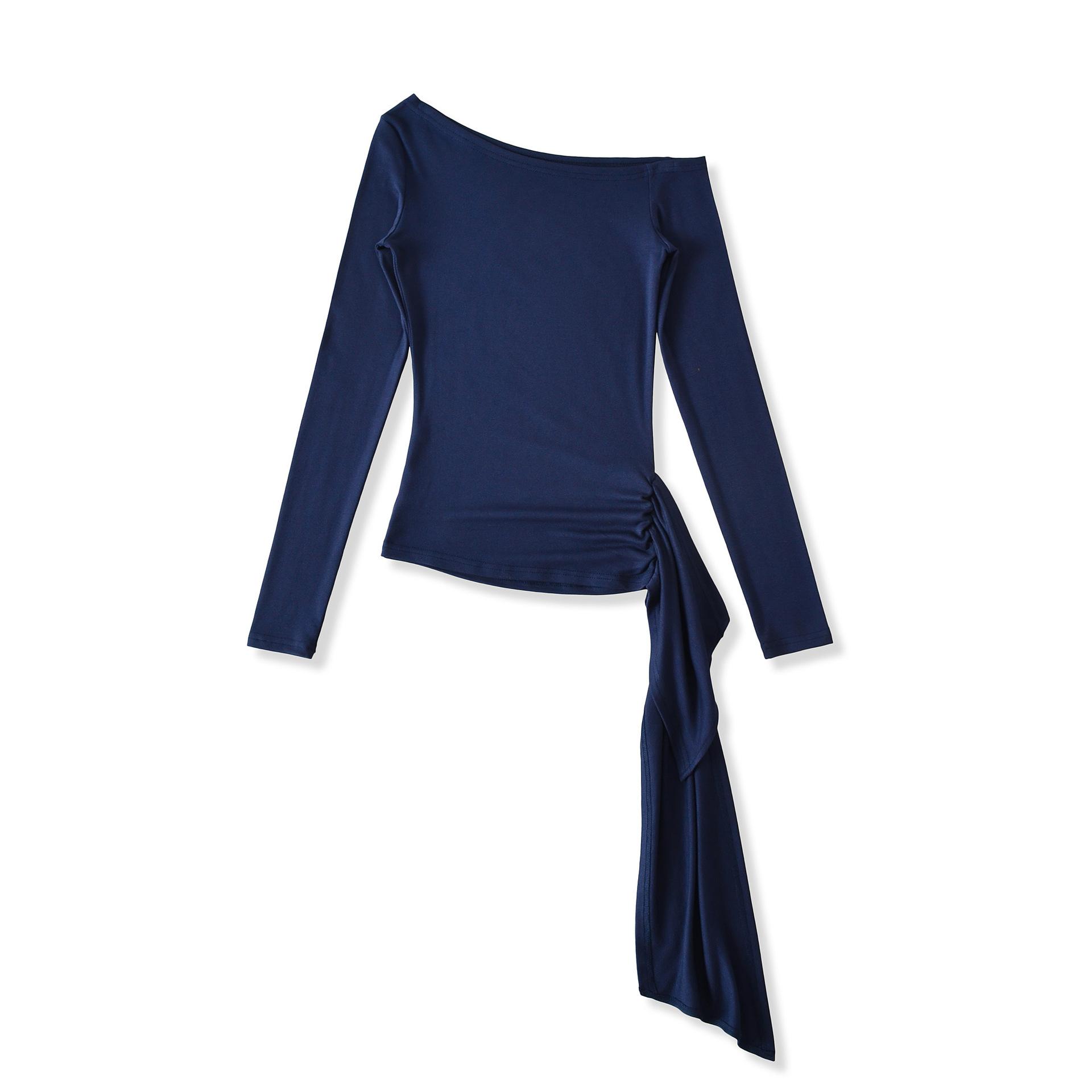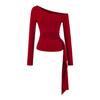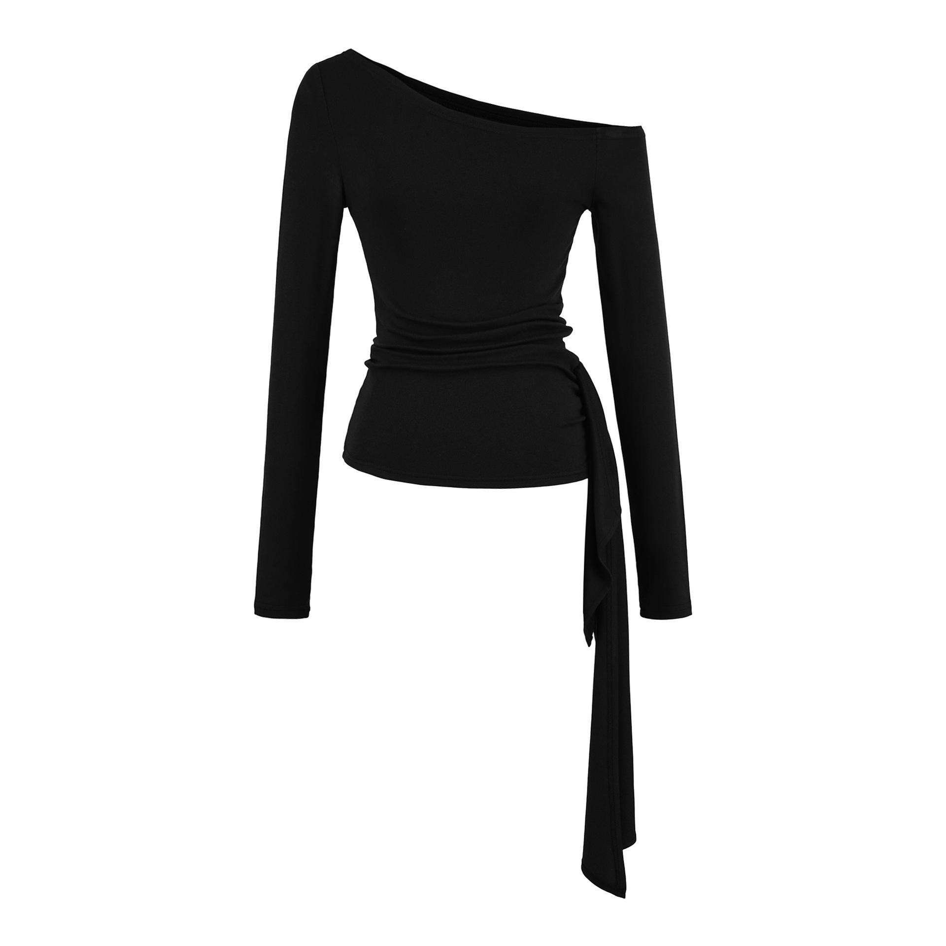 Sexy Chica Caliente Un Hombro Manga Larga Irregular Elástica Bodycon Camiseta Base Color Sólido Cintura Alta con Cordones Top Versátil Otoño