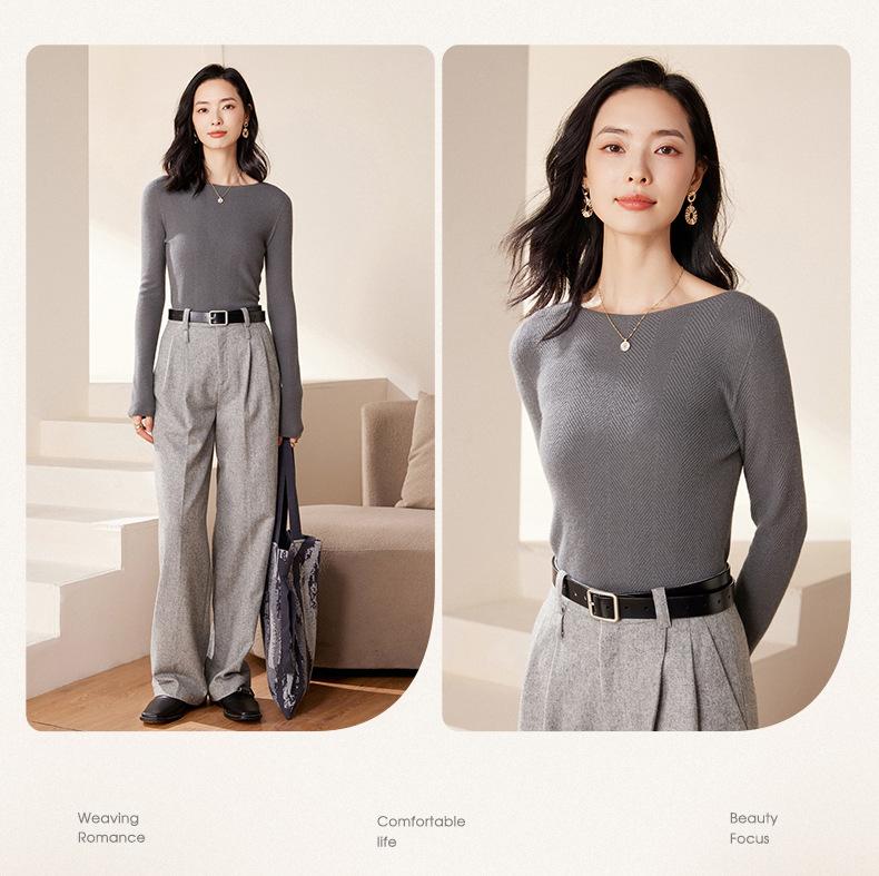 Suéter de Punto Holgado Casual Adelgazante de Imitación de Hombro Descubierto para Mujer 100% Cachemira Pura Otoño/Invierno Nuevo Versátil Ajustado