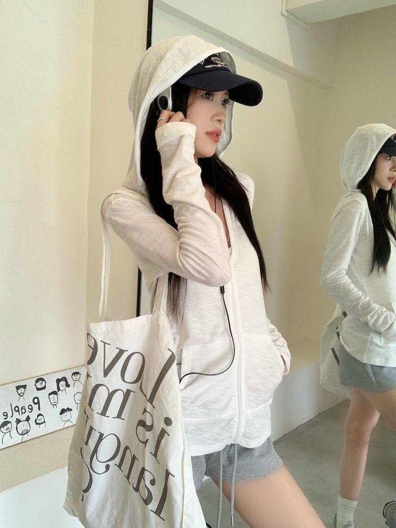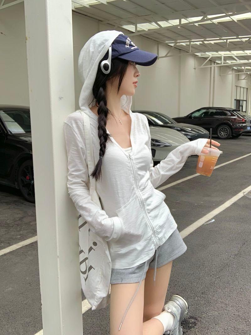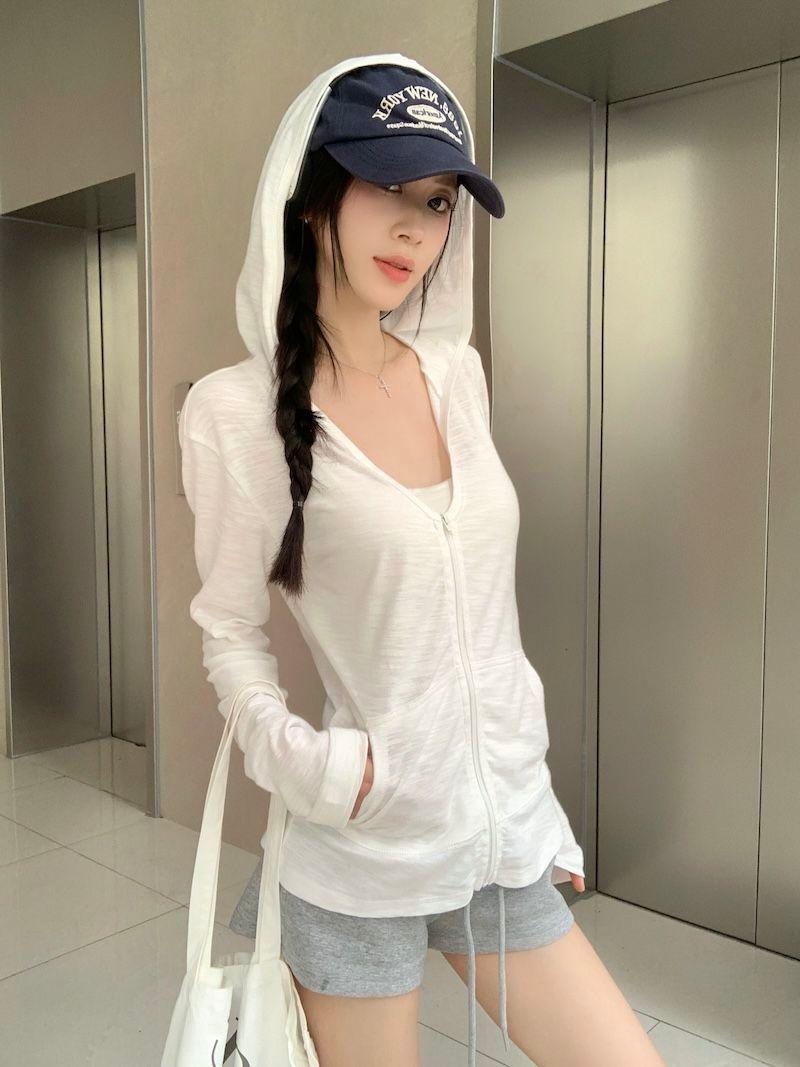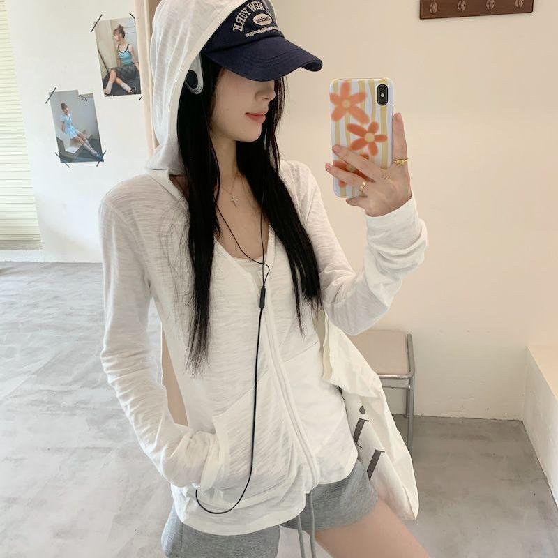 Chaqueta Fina Deportiva de Manga Larga con Protección Solar 2025 Verano Nuevo Diseño Nicho Slim Cárdigan con Capucha Tendencia para Mujer