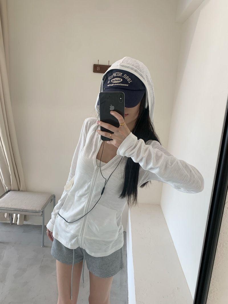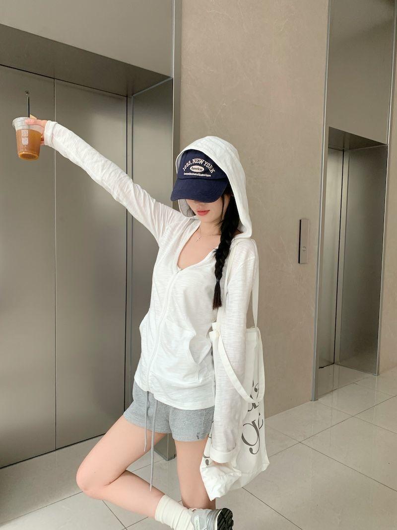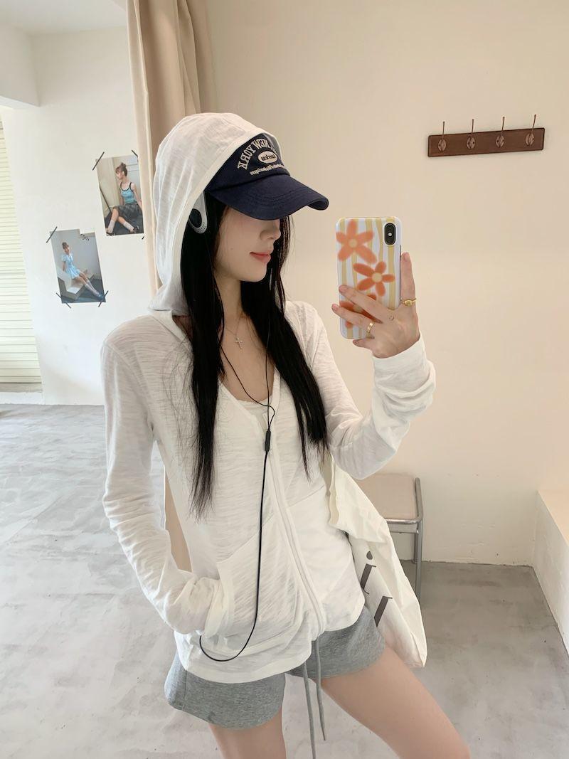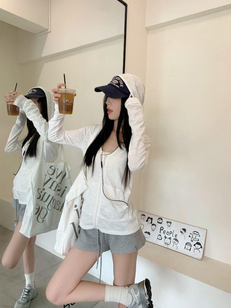 Chaqueta Fina Deportiva de Manga Larga con Protección Solar 2025 Verano Nuevo Diseño Nicho Slim Cárdigan con Capucha Tendencia para Mujer