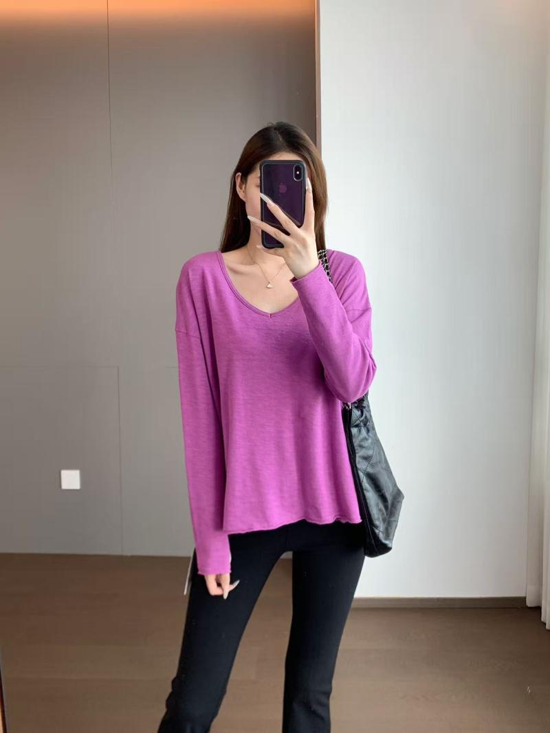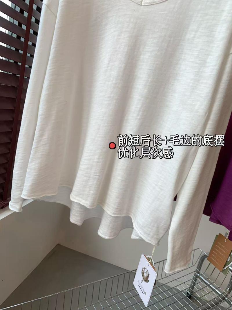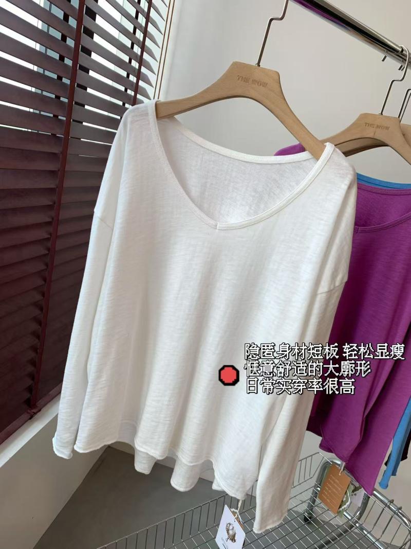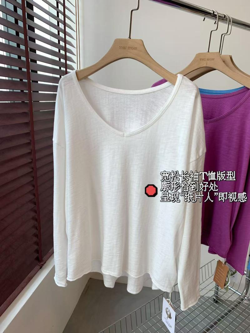 El ajuste general es una camiseta holgada de manga larga