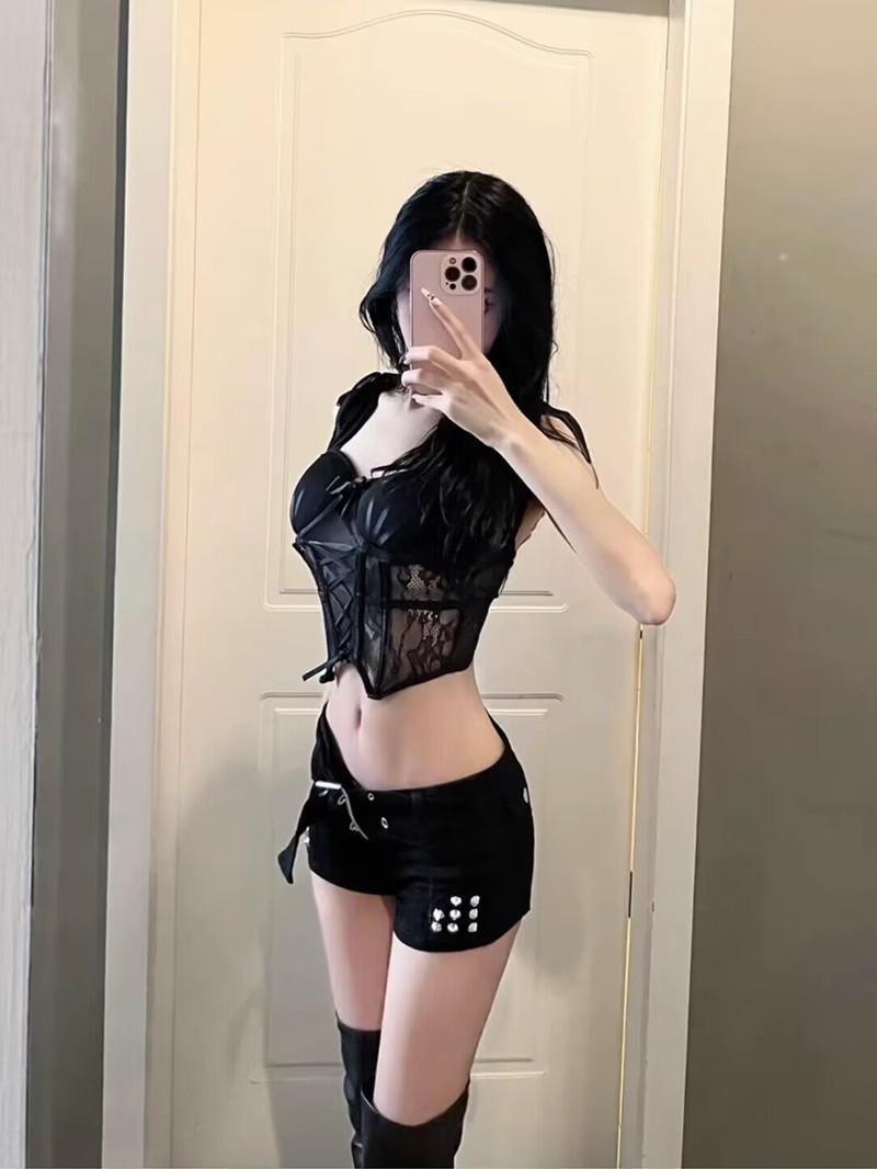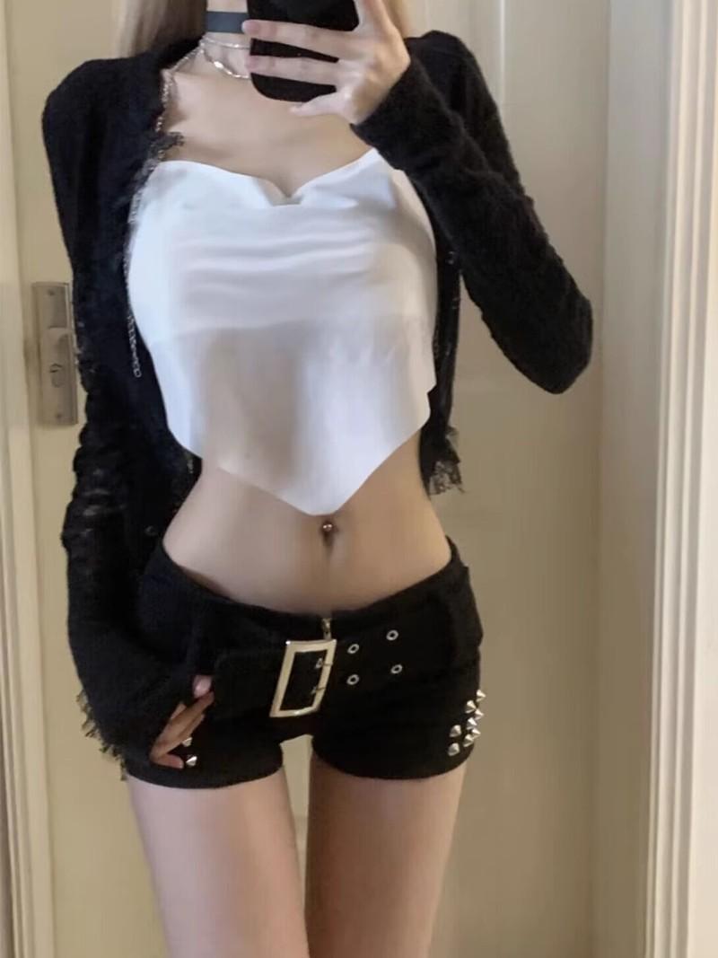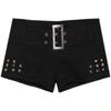 Pantalones cortos de cintura baja sexis de las Spice Girls, pantalones cortos ajustados con remaches elásticos para mujer, ropa exterior de primavera y verano, pantalones cortos vaqueros negros.