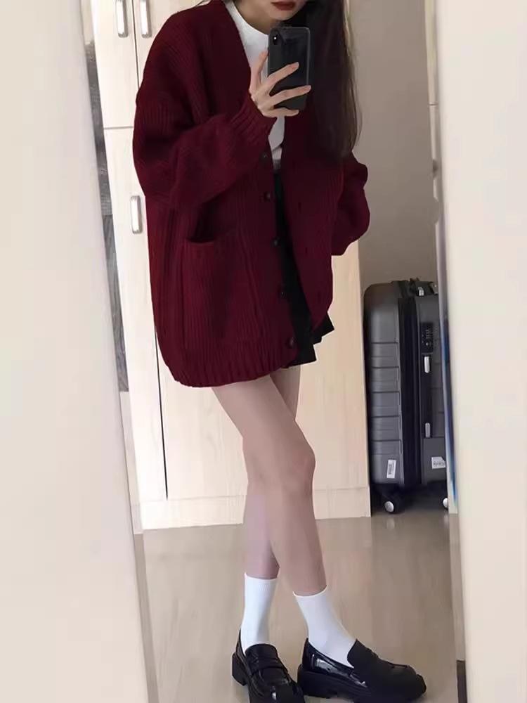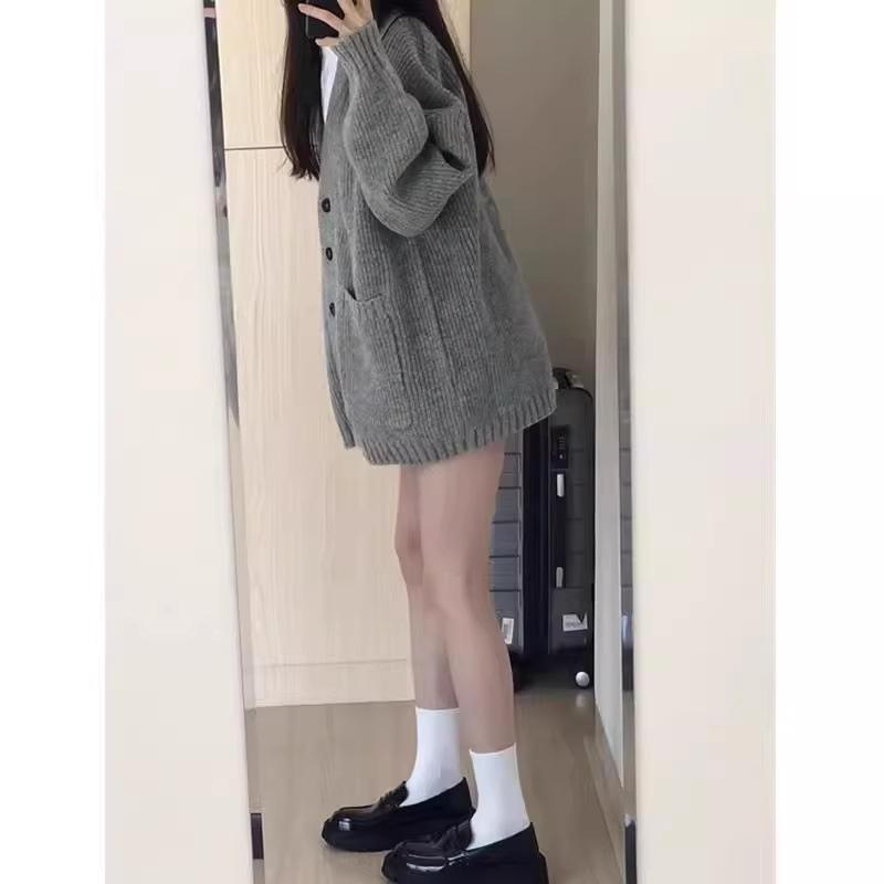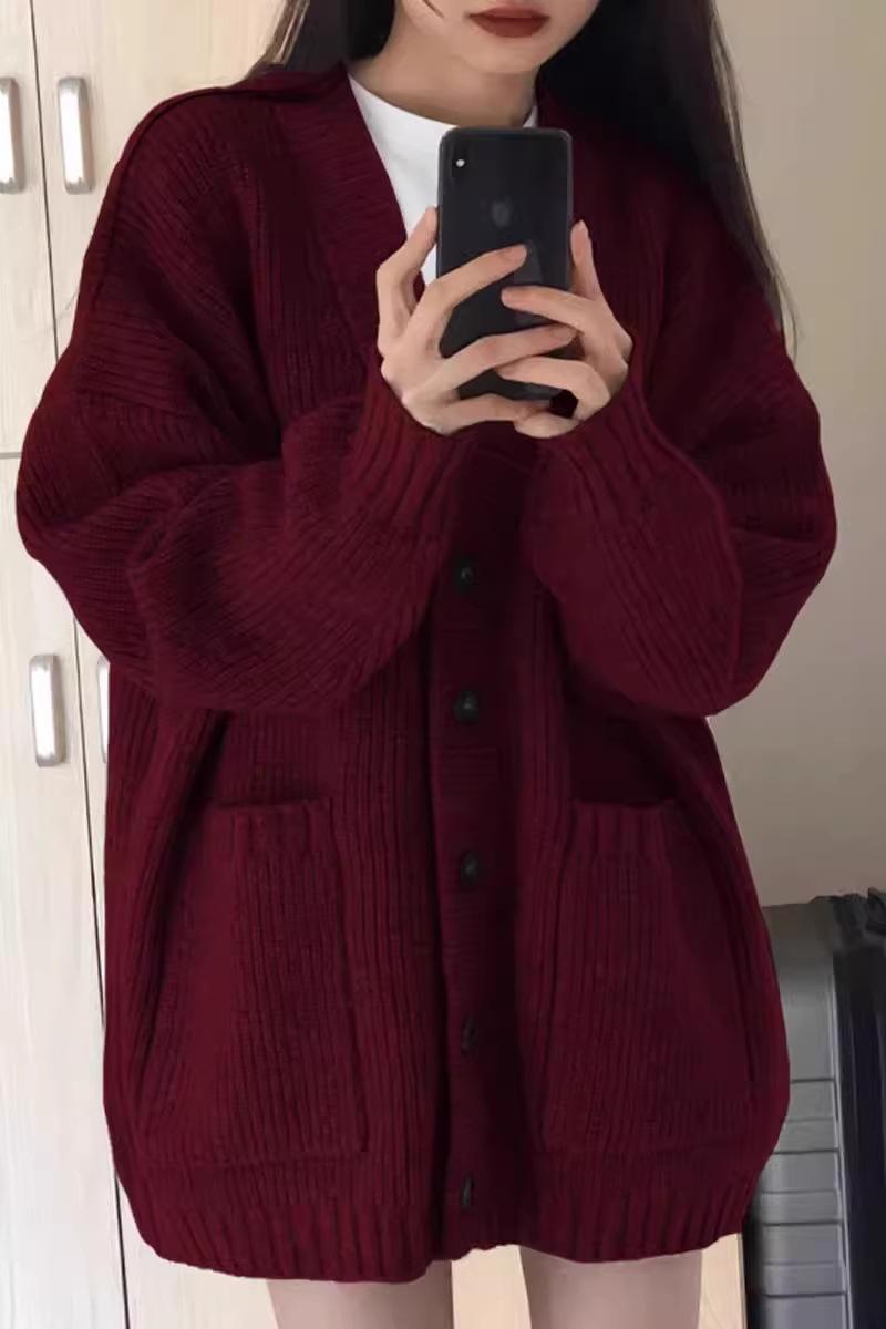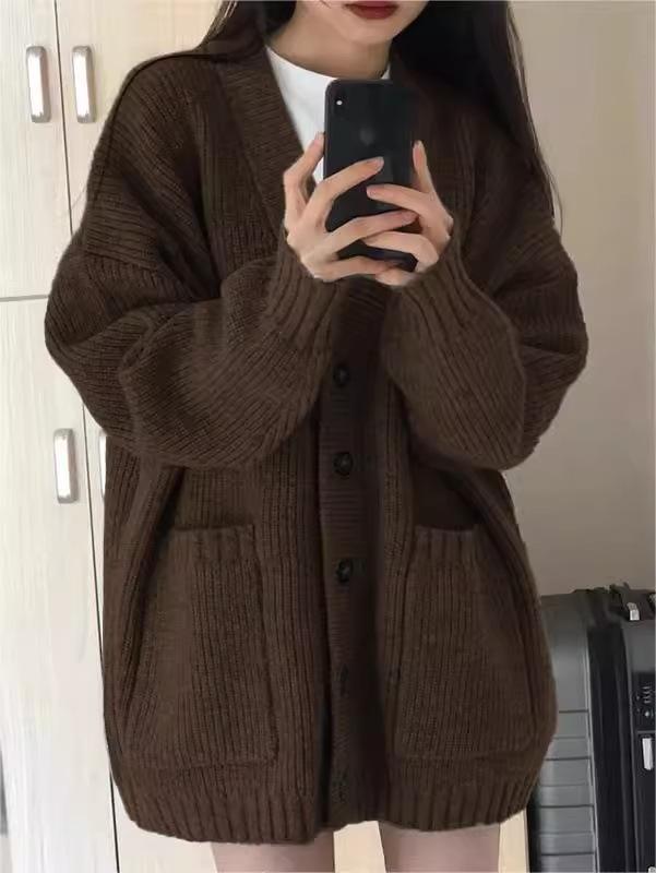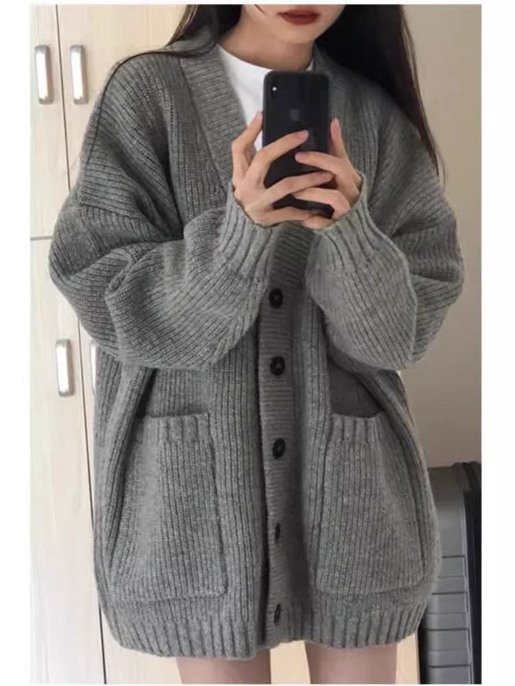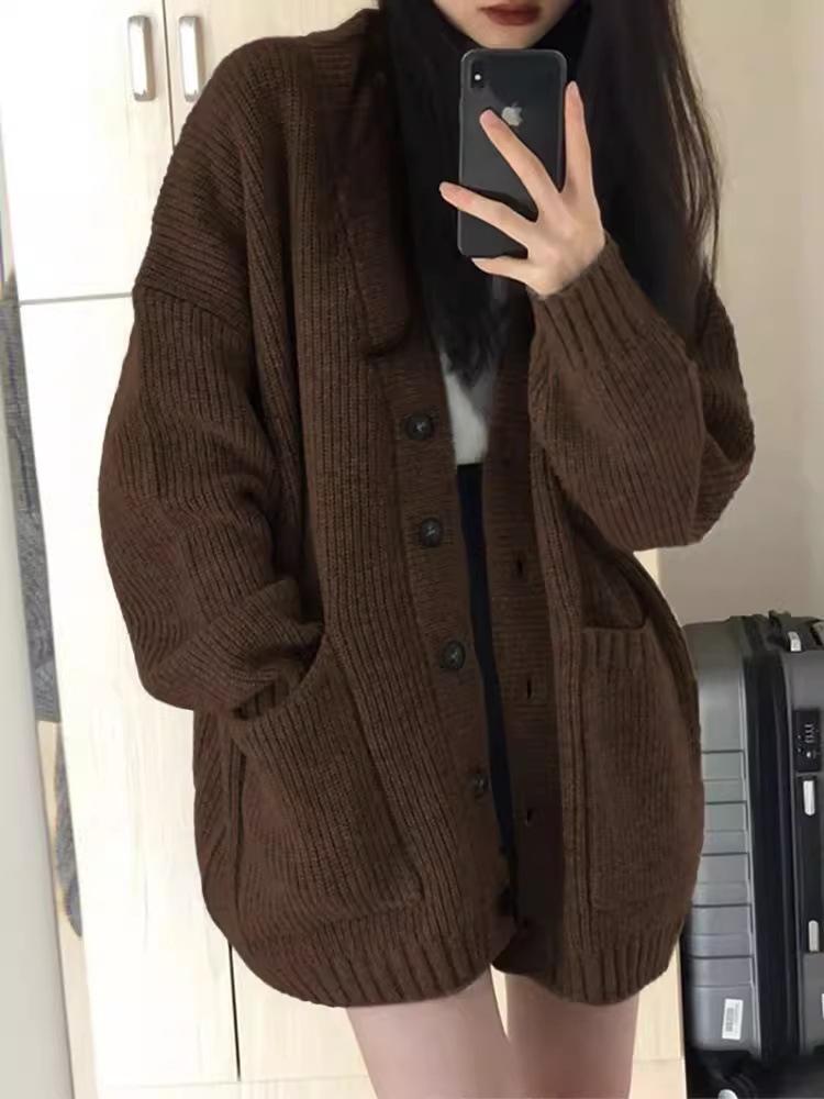 Cárdigan de Lana Abrigo Suéter para Mujer Primavera Otoño Nuevo Francés Casual Ropa de Mujer Suelto Largo Medio Top de Punto