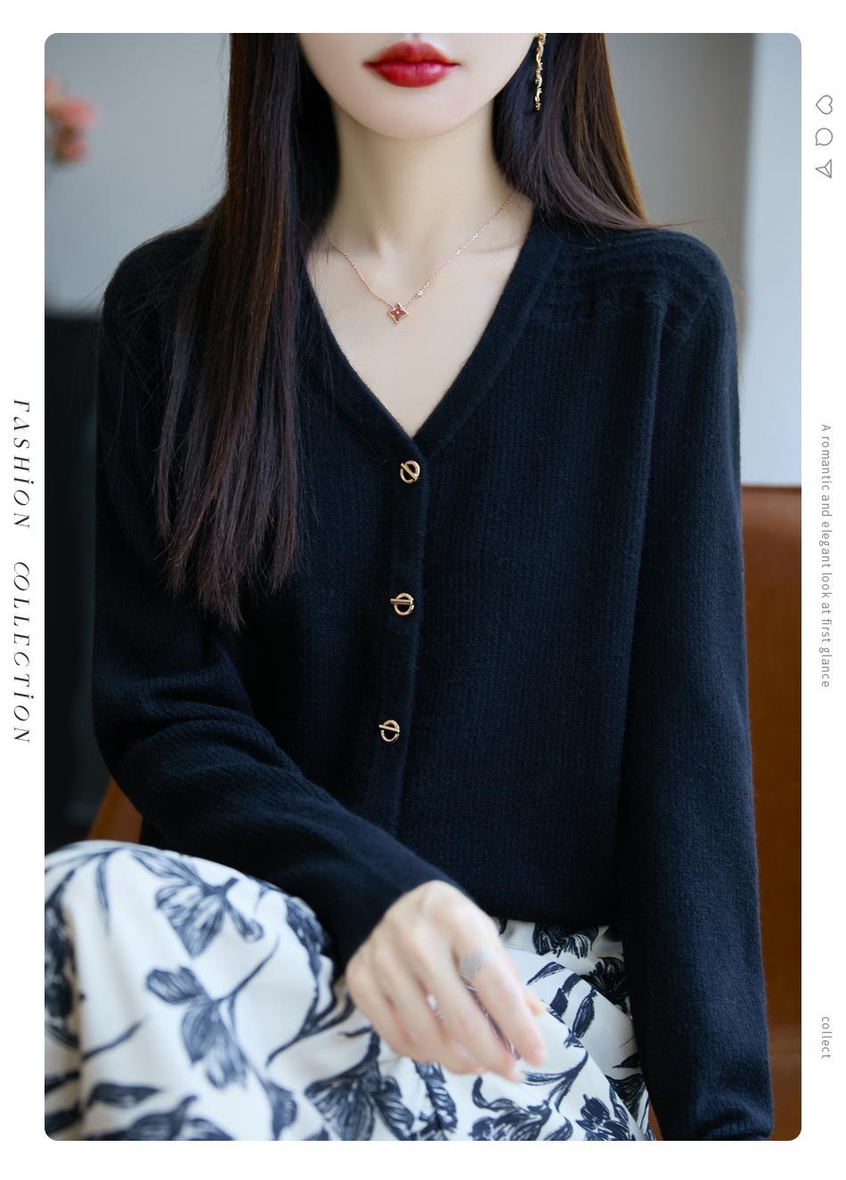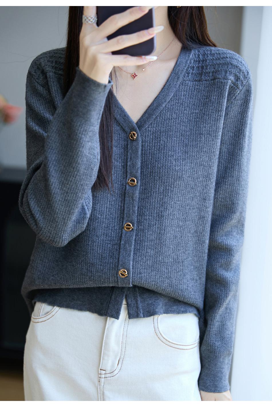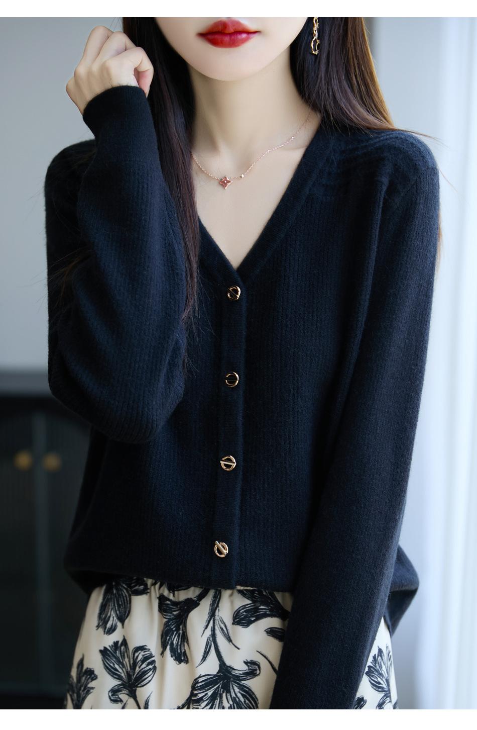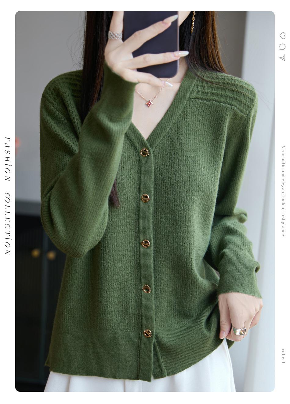 Cárdigan de Punto de Terciopelo Andy Nuevo Otoño/Invierno 2025 para Mujer Cuello en V Color Sólido Versátil Suelto Manga Larga con Botones Abrigo Suéter
