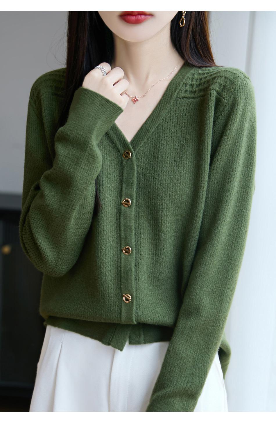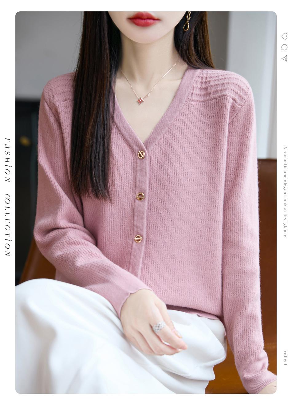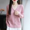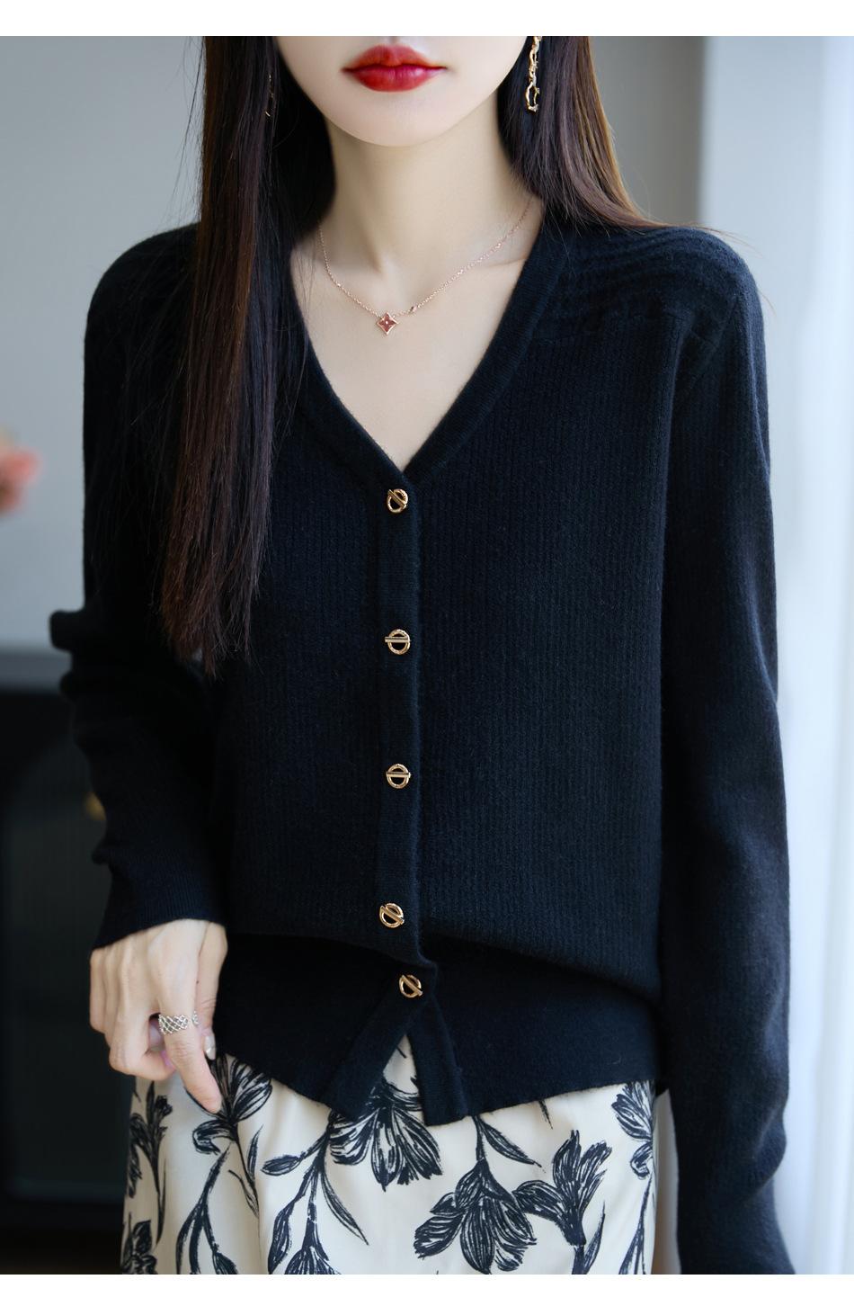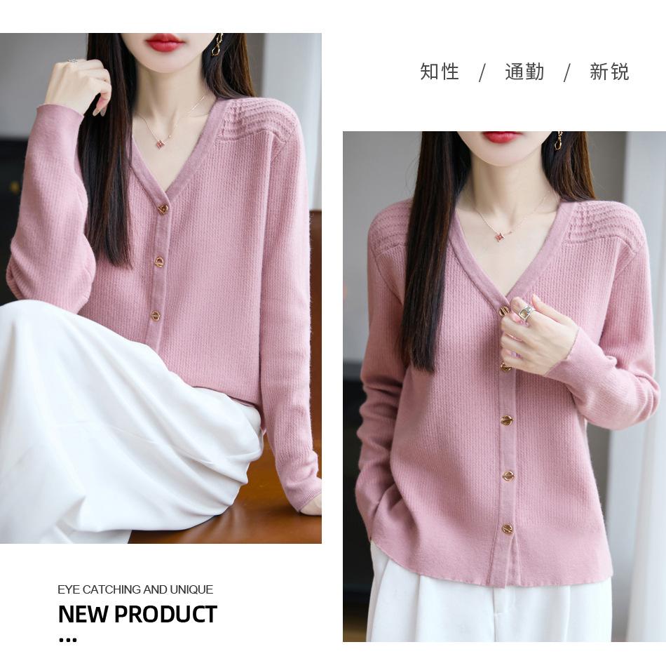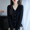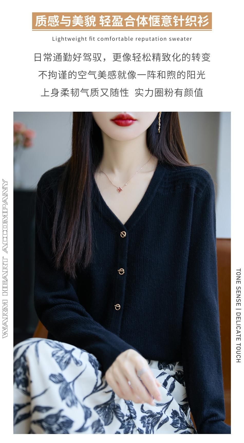 Cárdigan de Punto de Terciopelo Andy Nuevo Otoño/Invierno 2025 para Mujer Cuello en V Color Sólido Versátil Suelto Manga Larga con Botones Abrigo Suéter