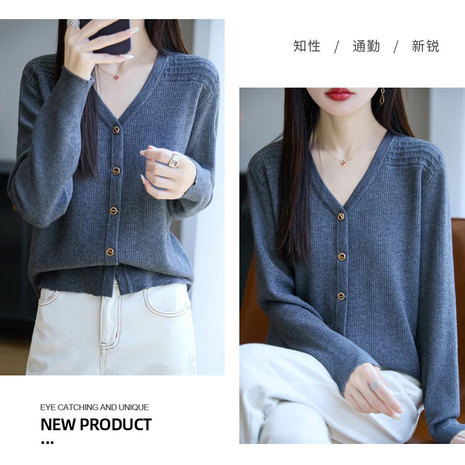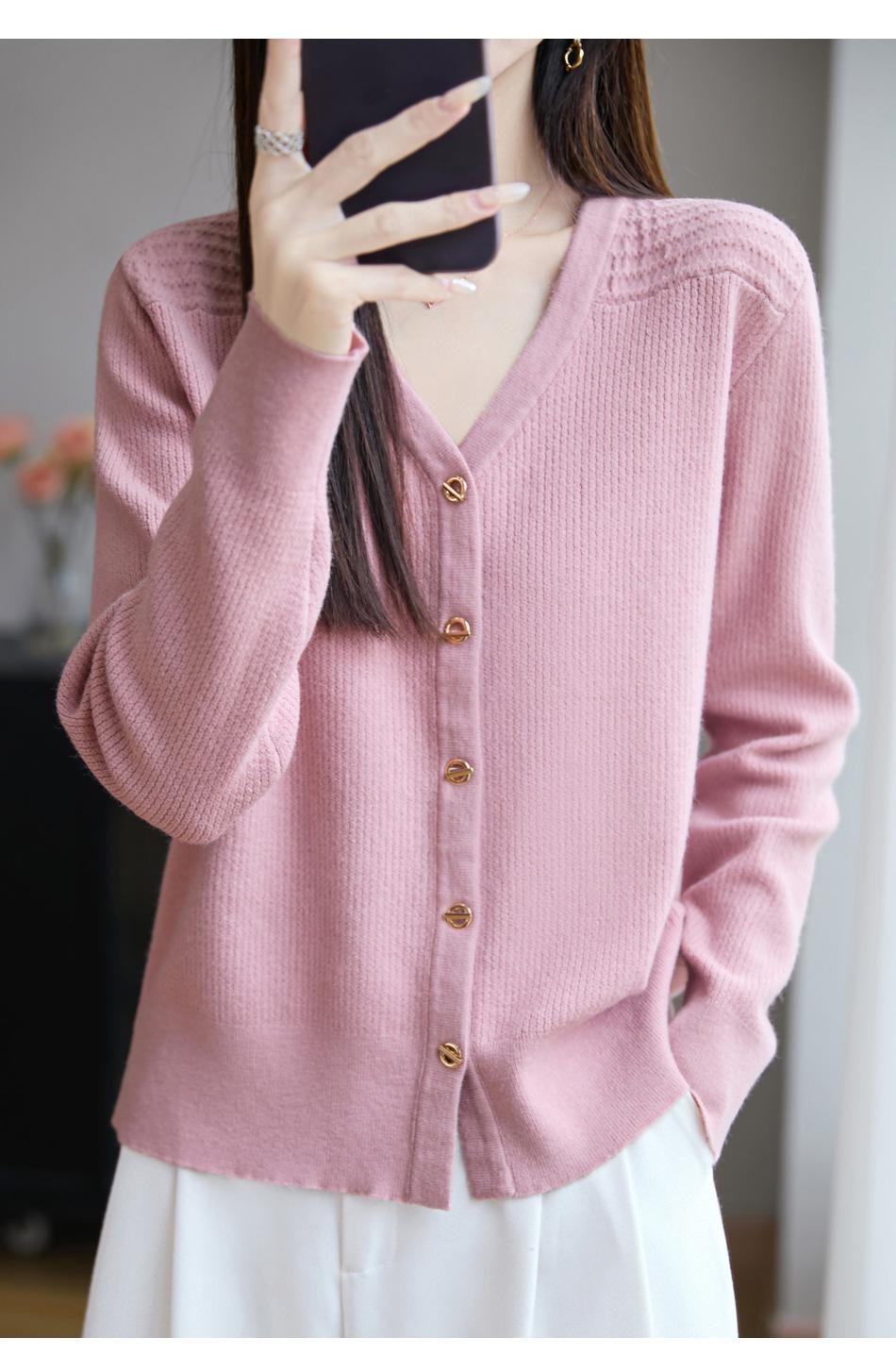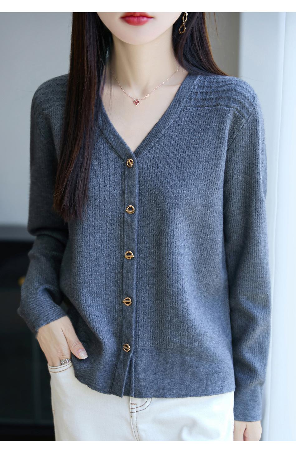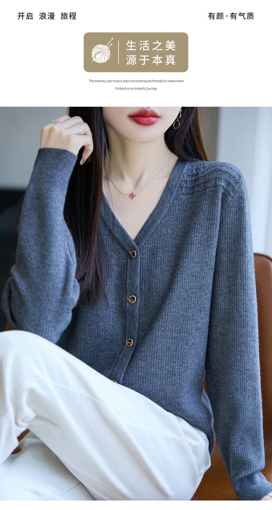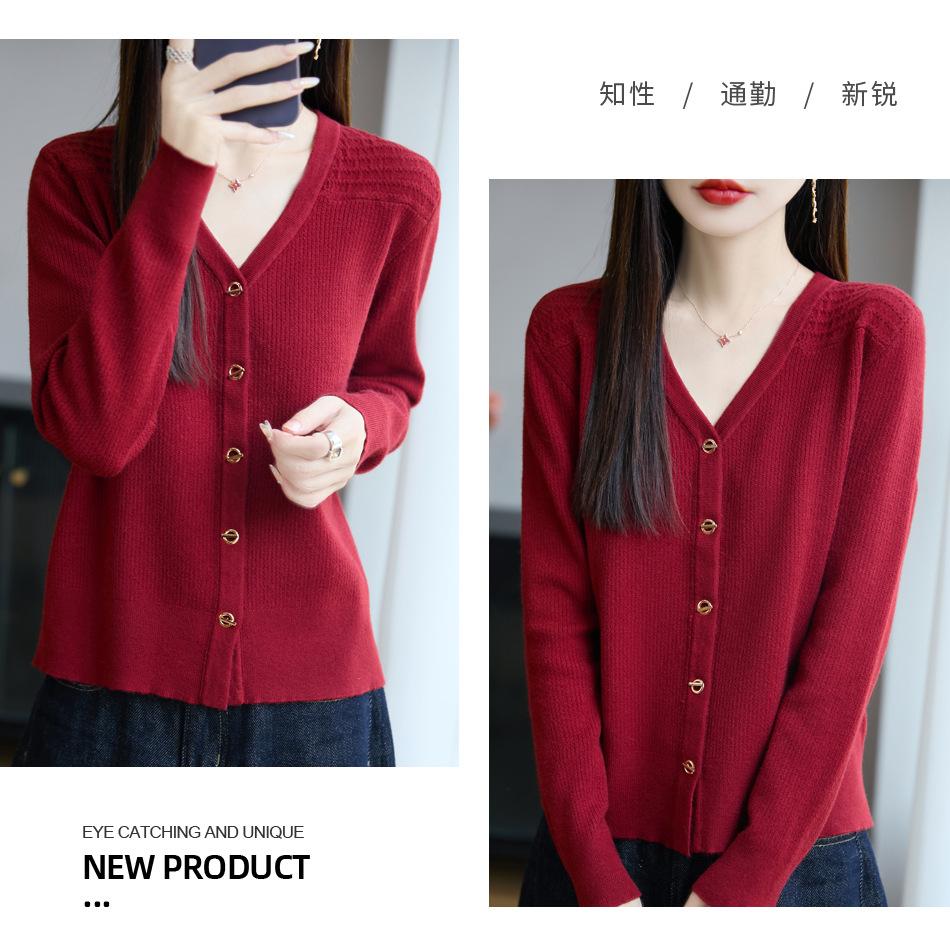 Cárdigan de Punto de Terciopelo Andy Nuevo Otoño/Invierno 2025 para Mujer Cuello en V Color Sólido Versátil Suelto Manga Larga con Botones Abrigo Suéter