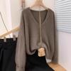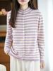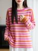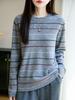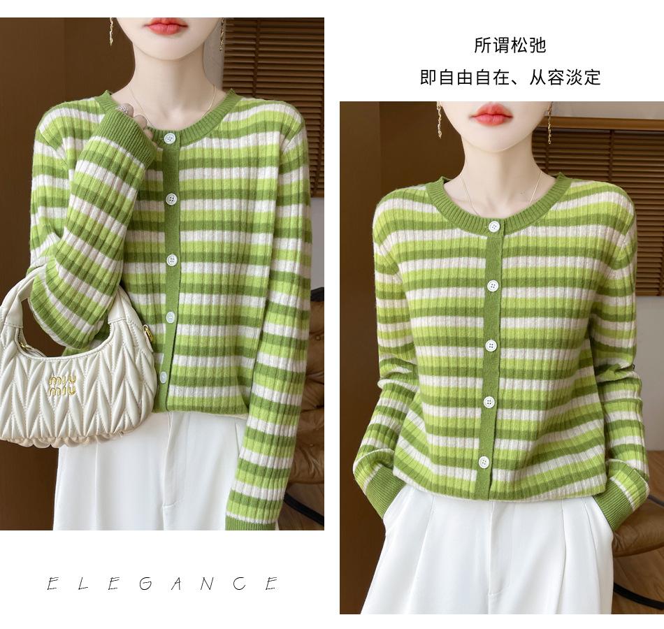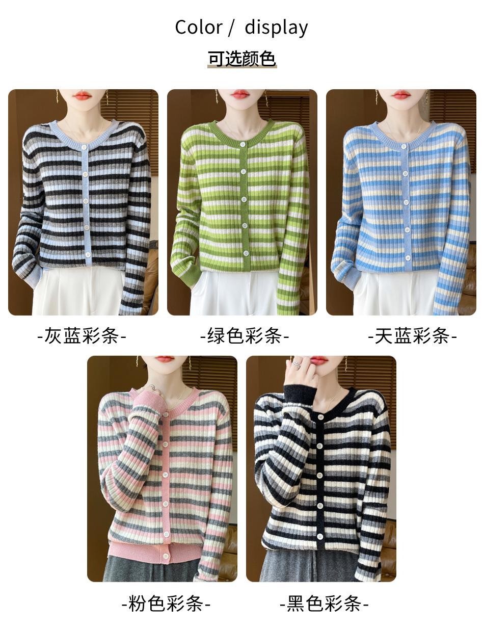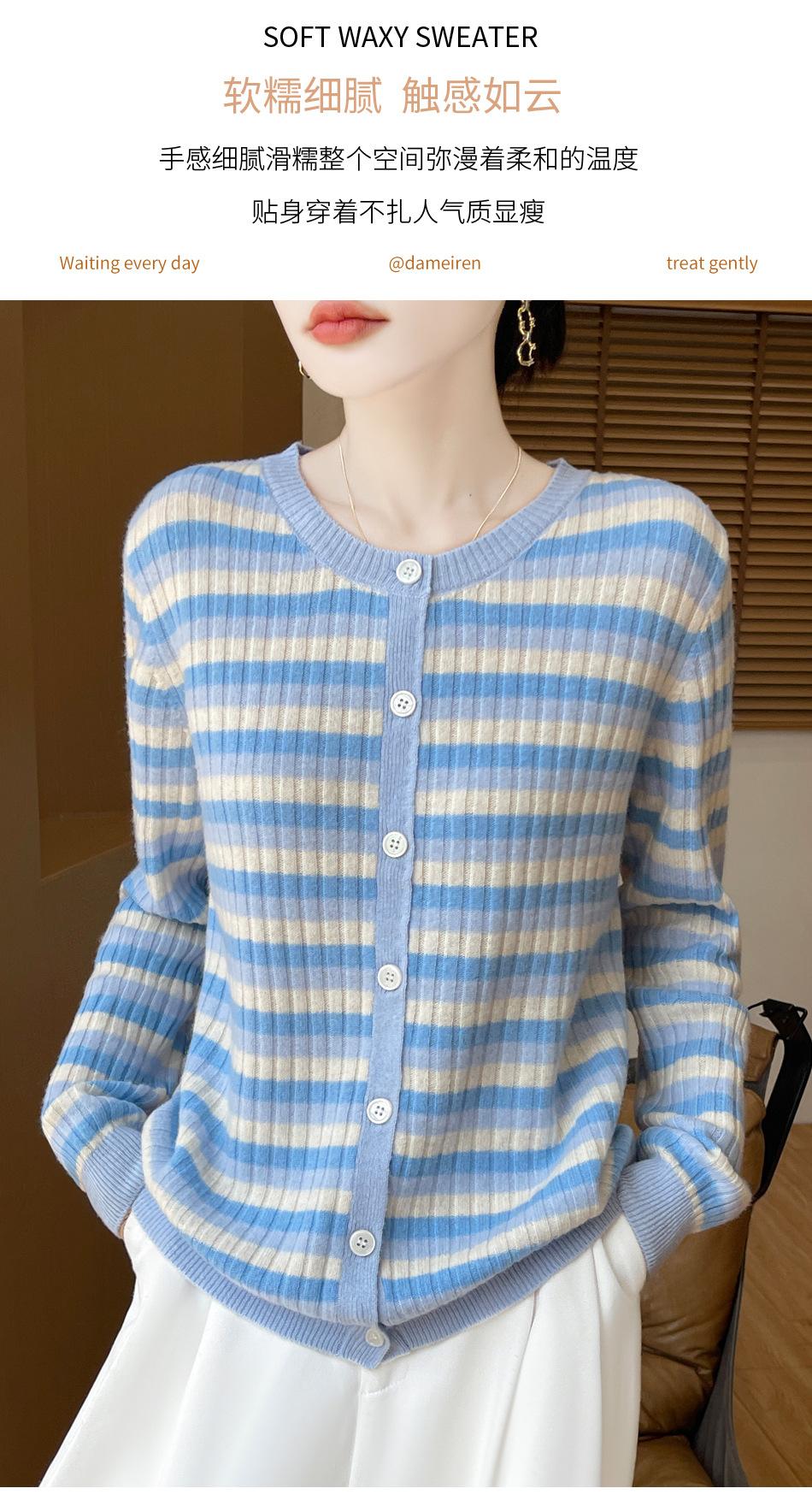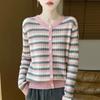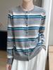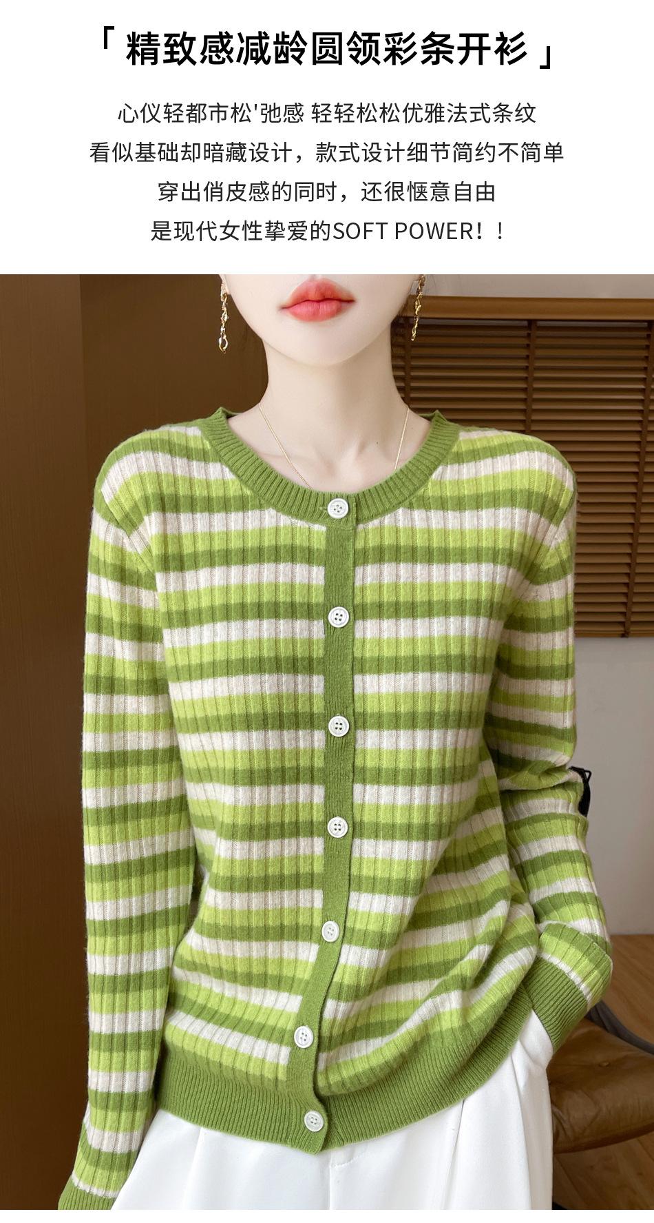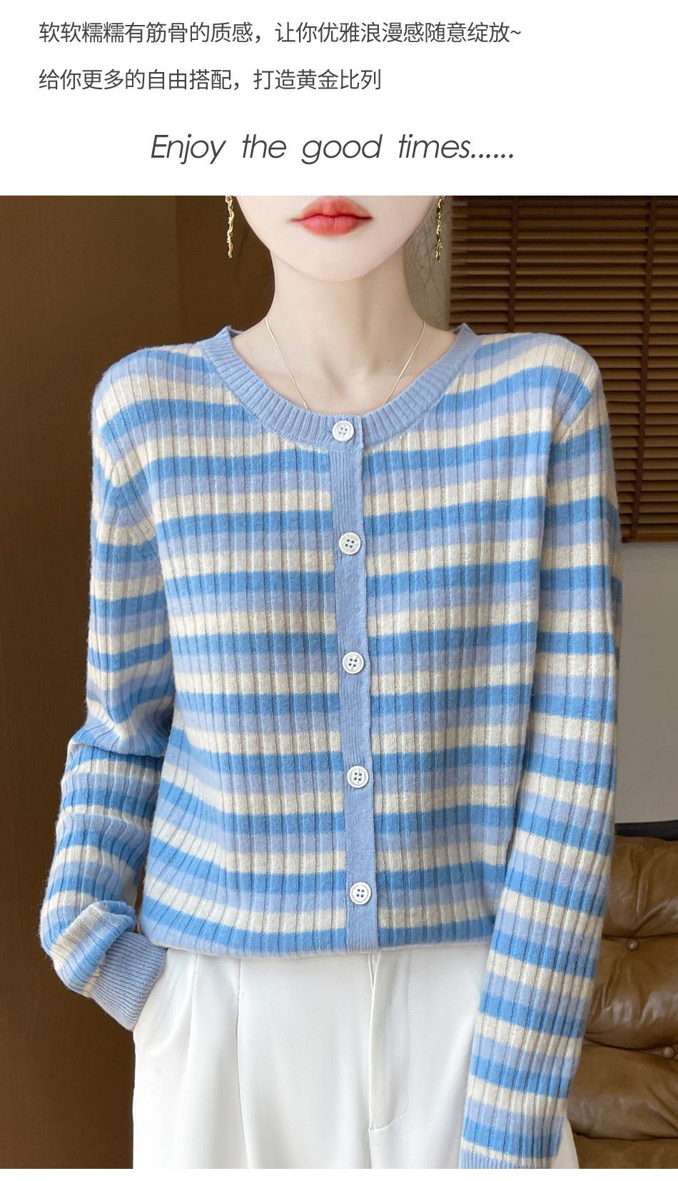 Cárdigan de Punto Básico para Mujer de Otoño/Invierno 2025 Nuevo, 100% Lana Pura, Holgado, Cuello Redondo, Bloque de Color a Rayas, Abotonado