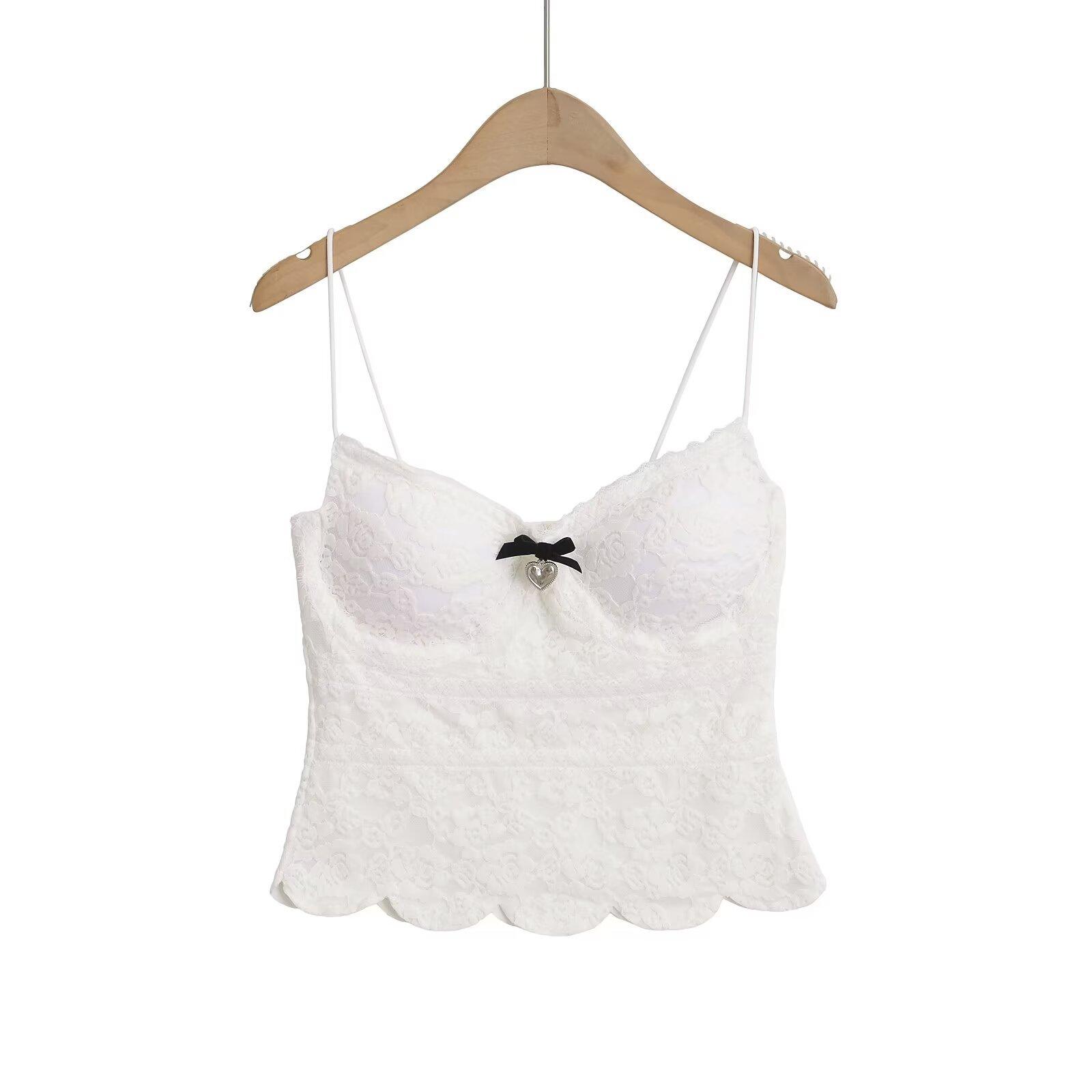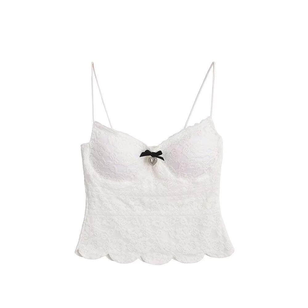 Chaleco Pequeño de Tirantes con Lazo Estilo Americano para Mujer Verano Sexy Cintura Ceñida Ajustado Interior Puro Dulce Chica Picante Top Ropa Exterior