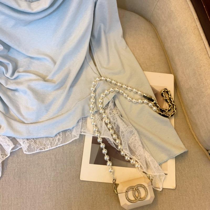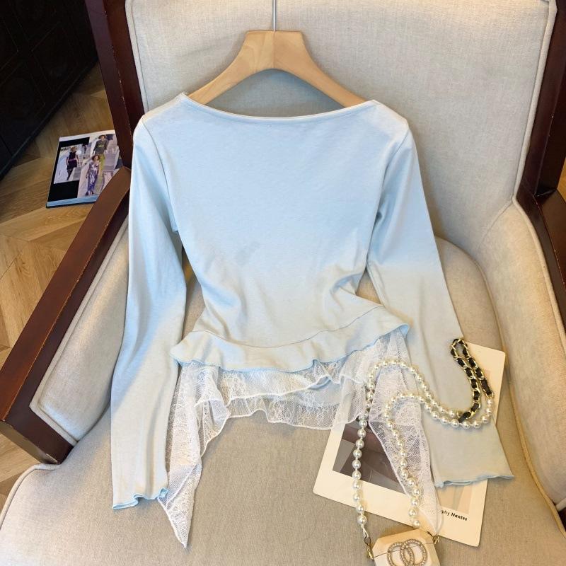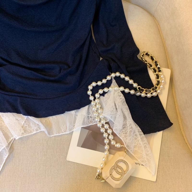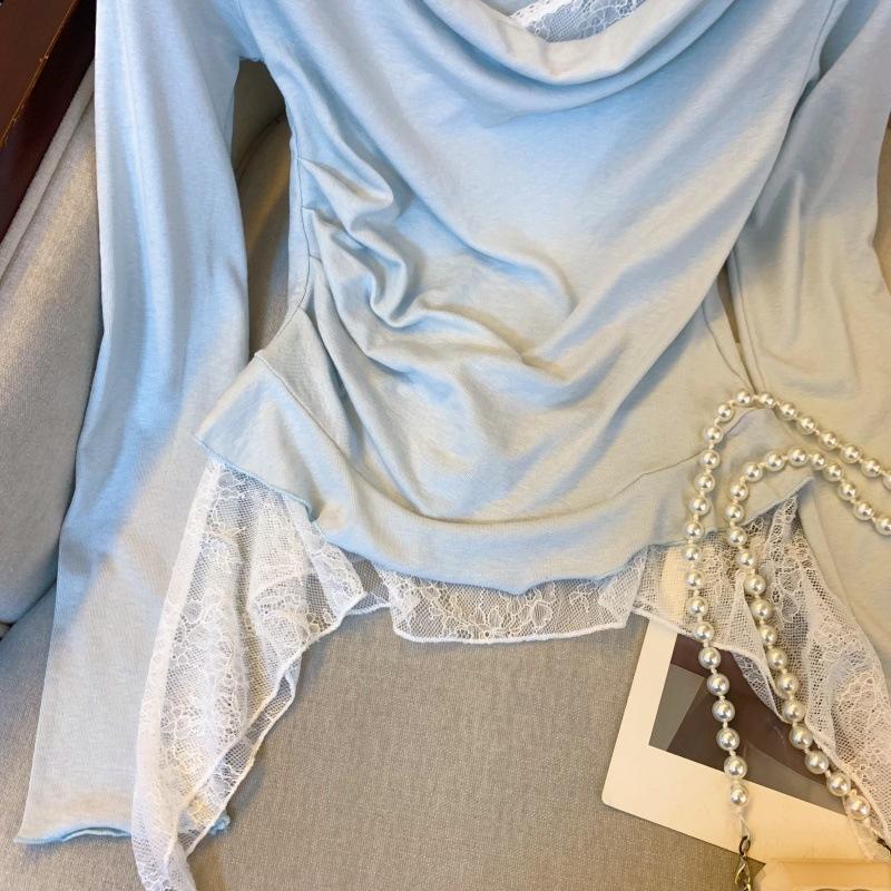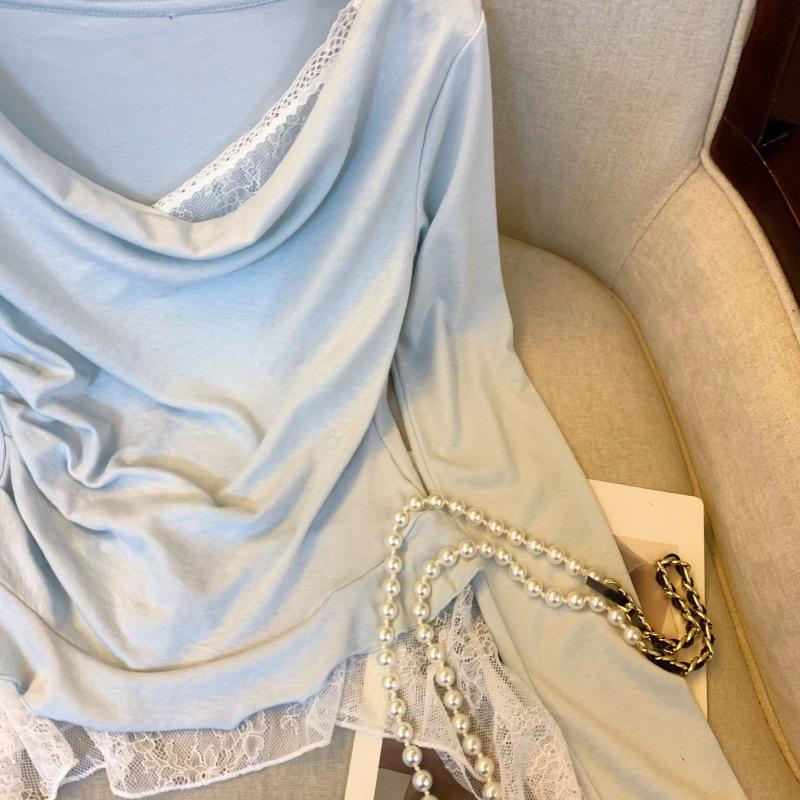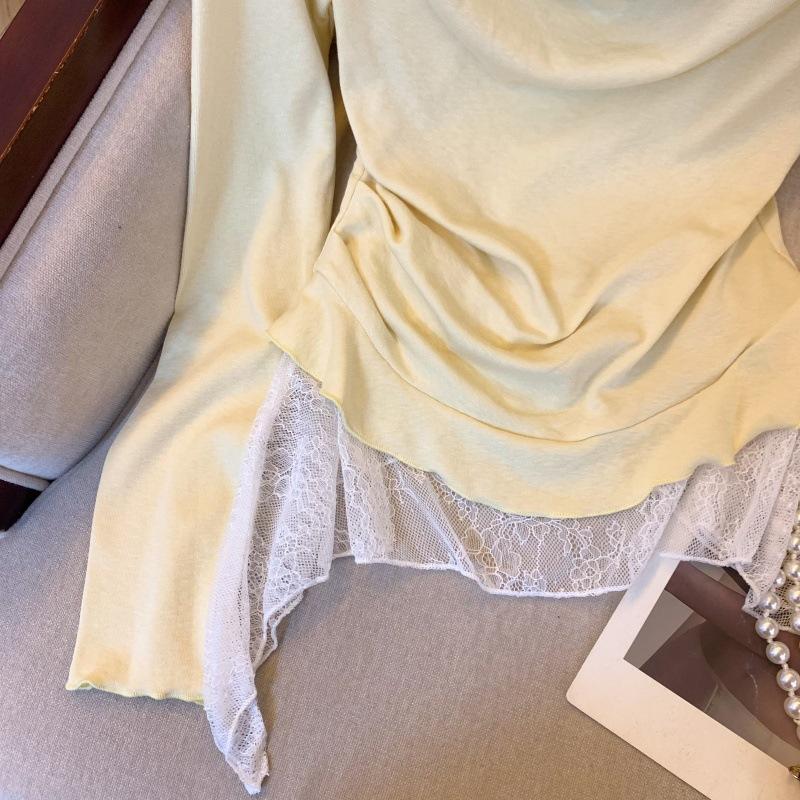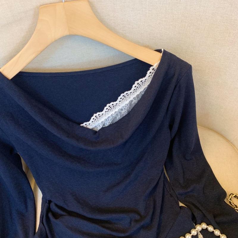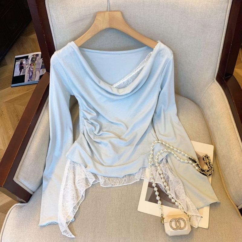 Foto Real 2025 Nuevo Estilo Falso Dos Piezas Cuello Caído Manga Larga Tejido Otoño Invierno Adelgazante Capa Interior Camiseta Base Top Mujer