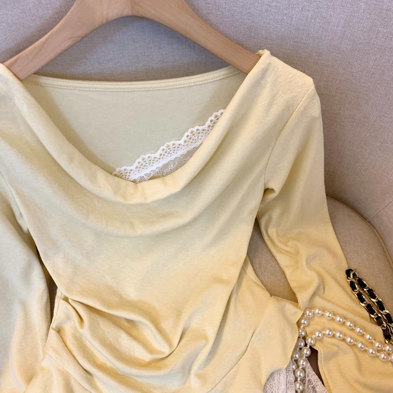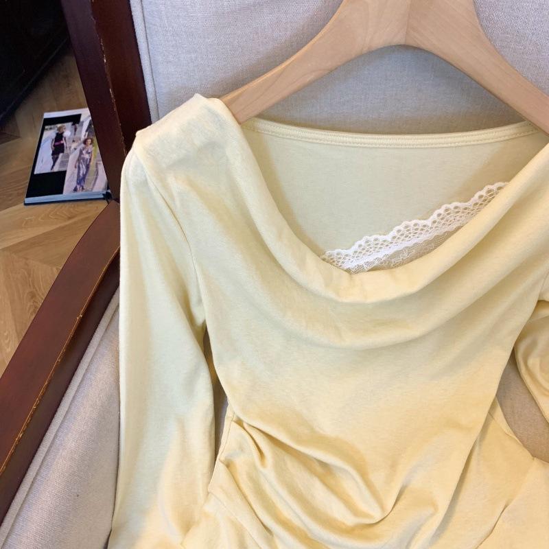 Guangzhou Shisanhang estilo caliente de alta calidad~ cuello cowl manga larga tejido otoño e invierno ajuste ceñido adelgazante camiseta top base interior para mujer