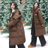 Abrigo de plumón suelto 2025 para mujer, largo hasta la rodilla, nuevo de mediados de invierno, chaqueta acolchada de algodón gruesa, estilo coreano, versátil, ropa exterior