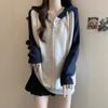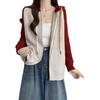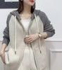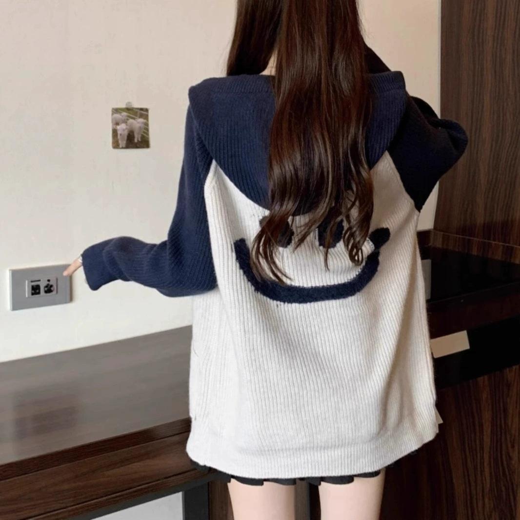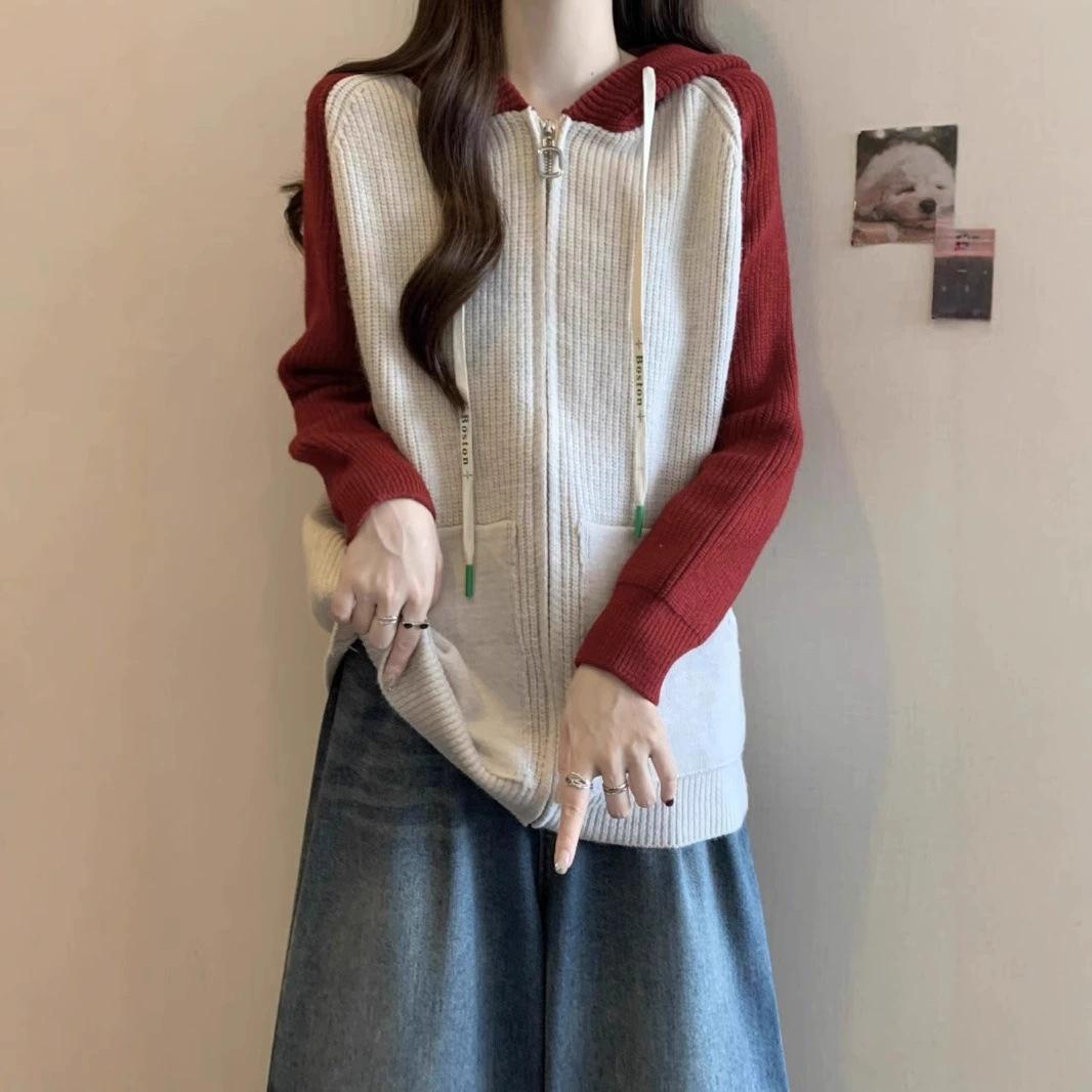 Otoño 2025 Nueva Chaqueta de Punto Holgada con Capucha y Bloques de Color para Mujer, Suéter Holgado con Cremallera, Cárdigan, Top para Mujer