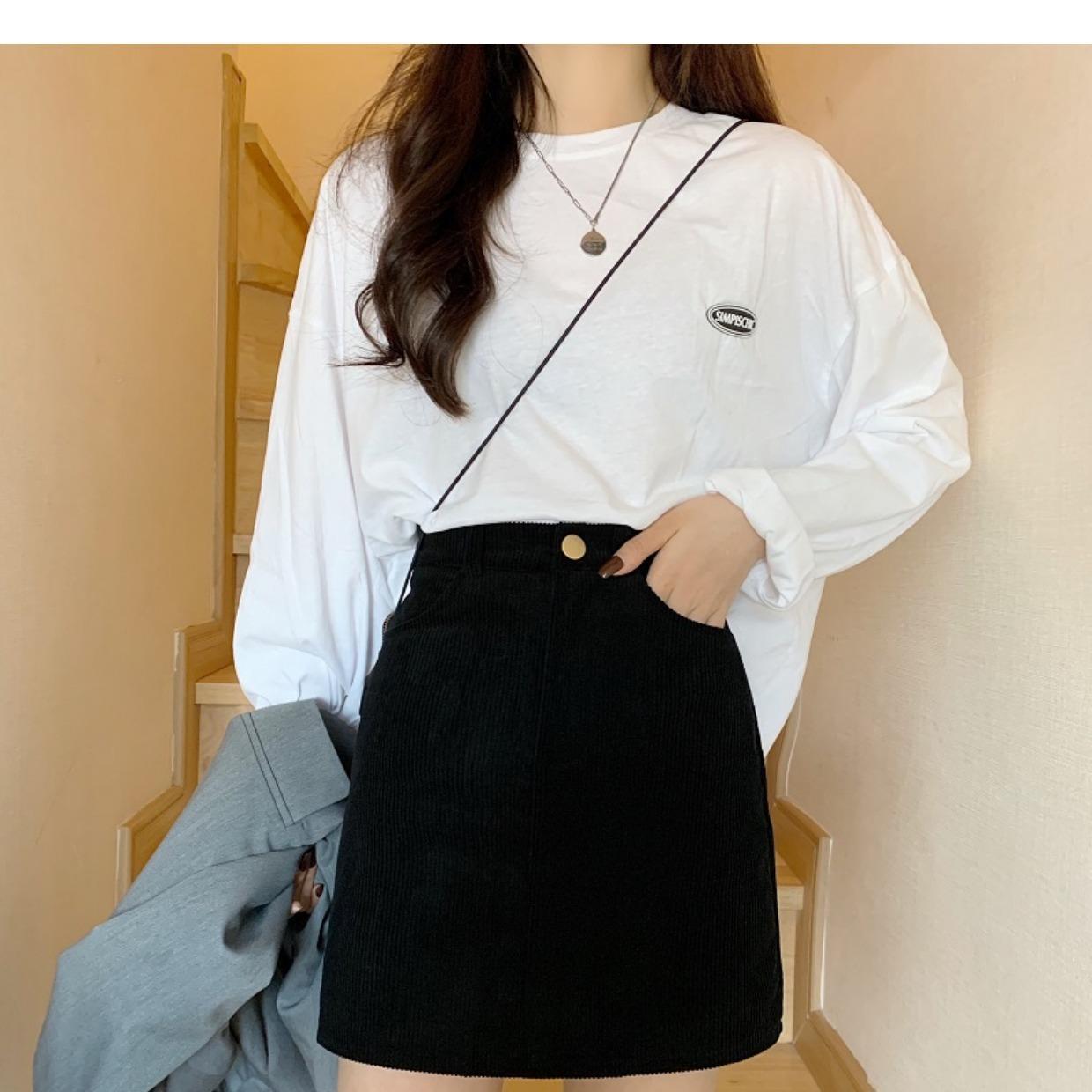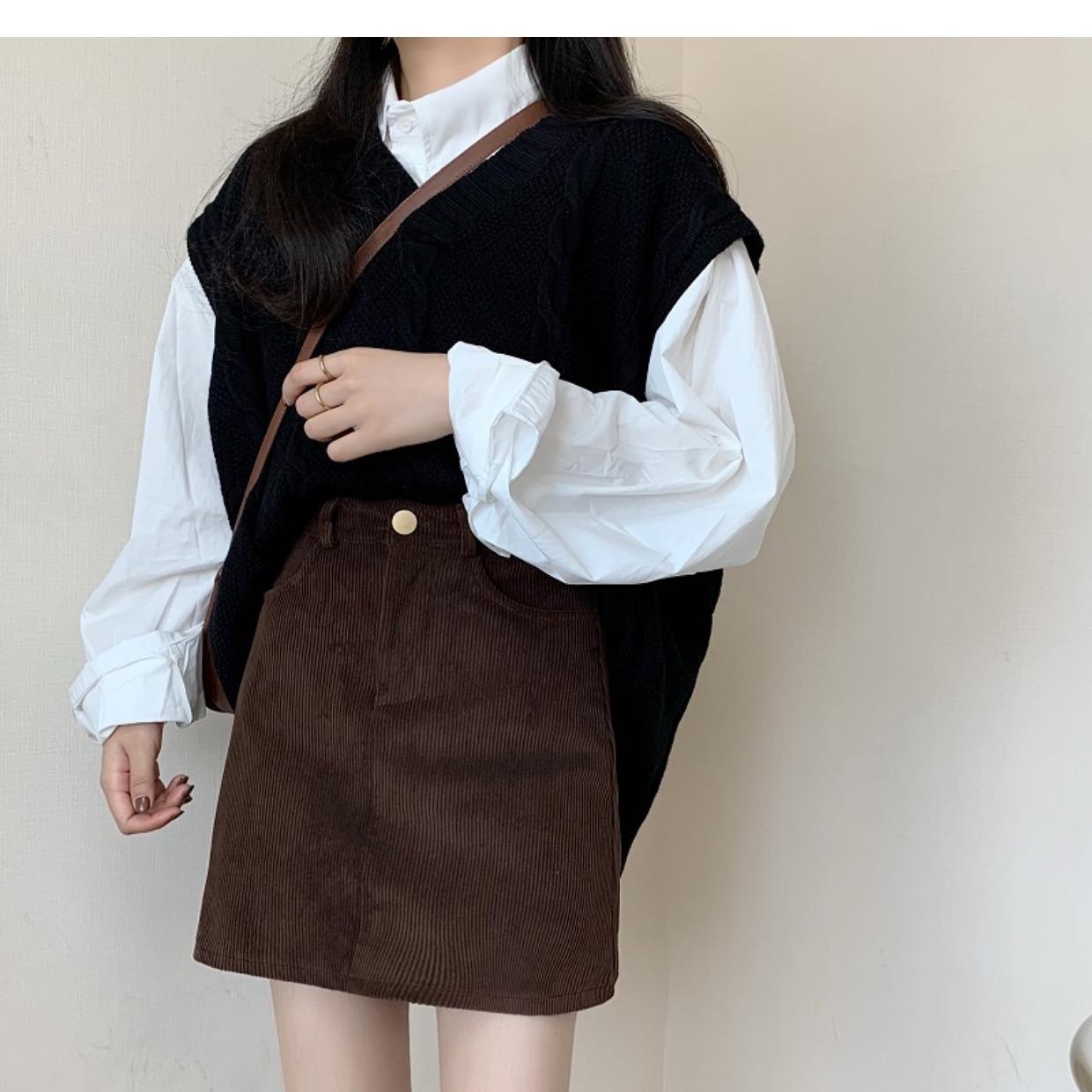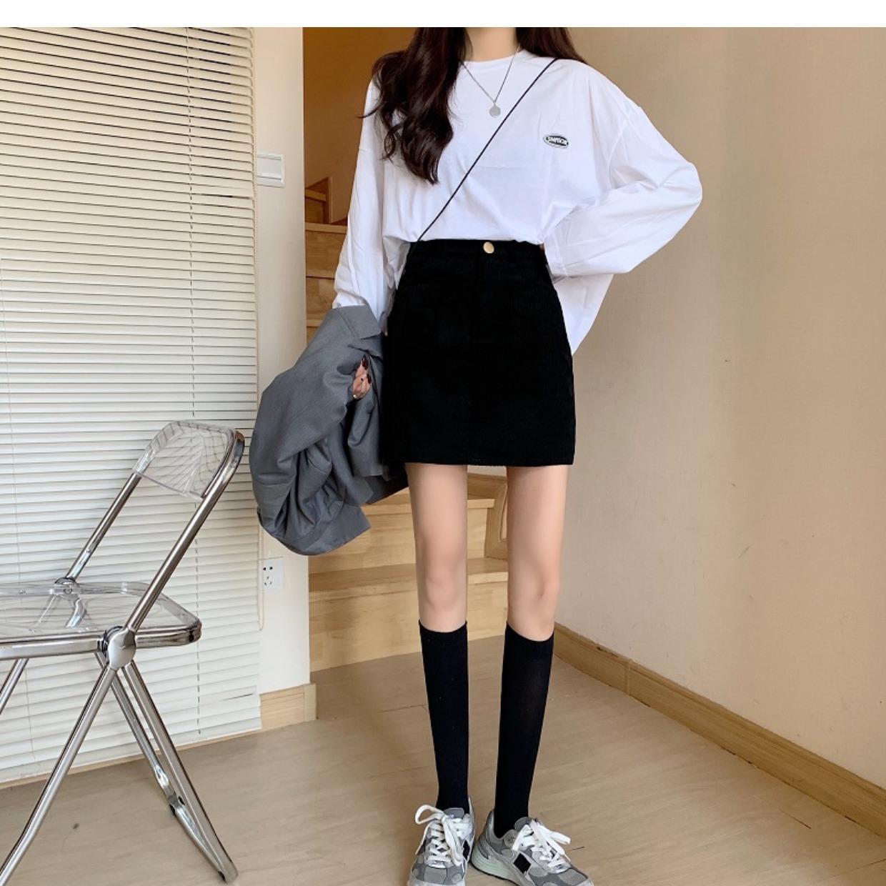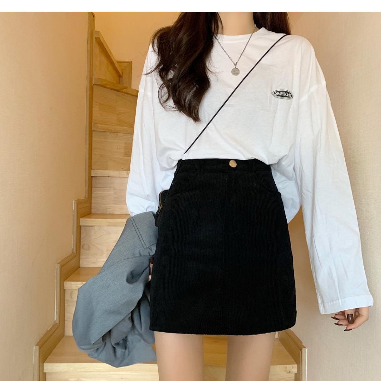 Falda Versátil de Pana Slim de Cintura Alta para Otoño e Invierno para Niñas 2025 Nuevo Estilo Falda A-Line