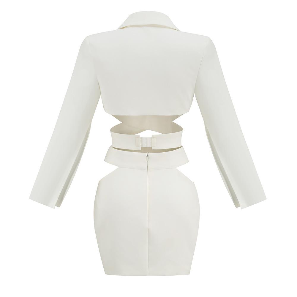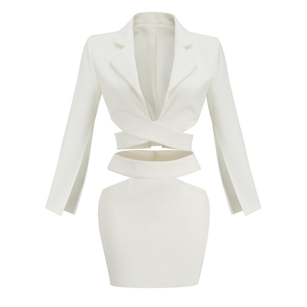 Vestido Sexy de Cadera para Mujer Otoño Europeo y Americano Vestido Blanco de Alta Gama Elegante de Manga Larga Tipo Trajecito Falda