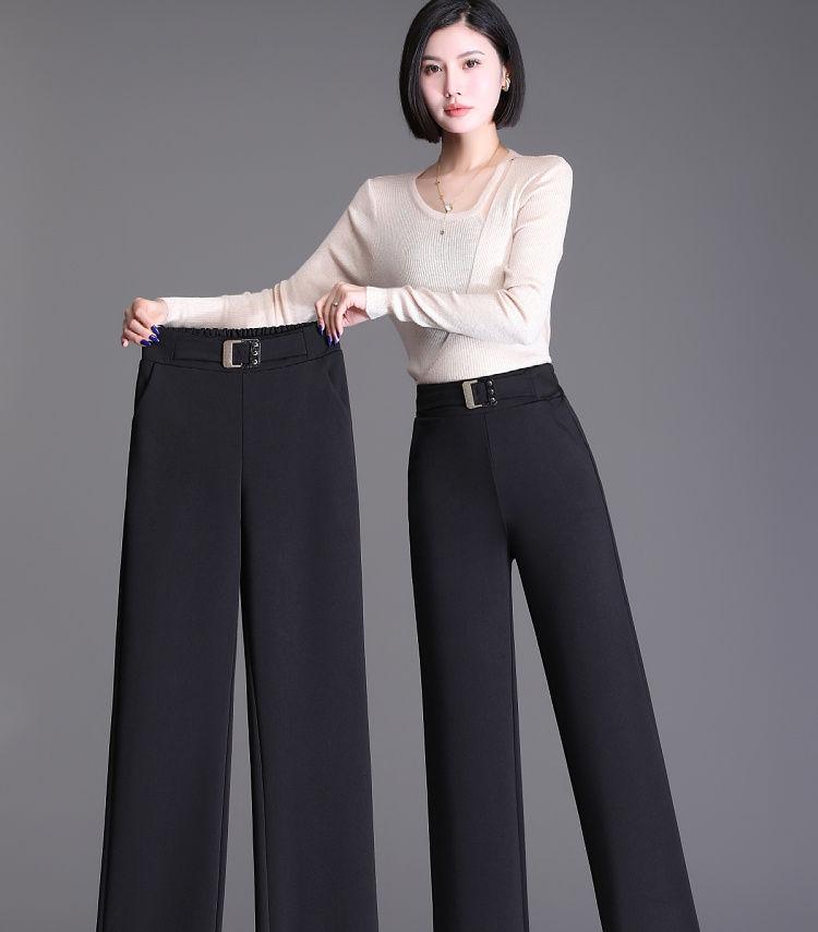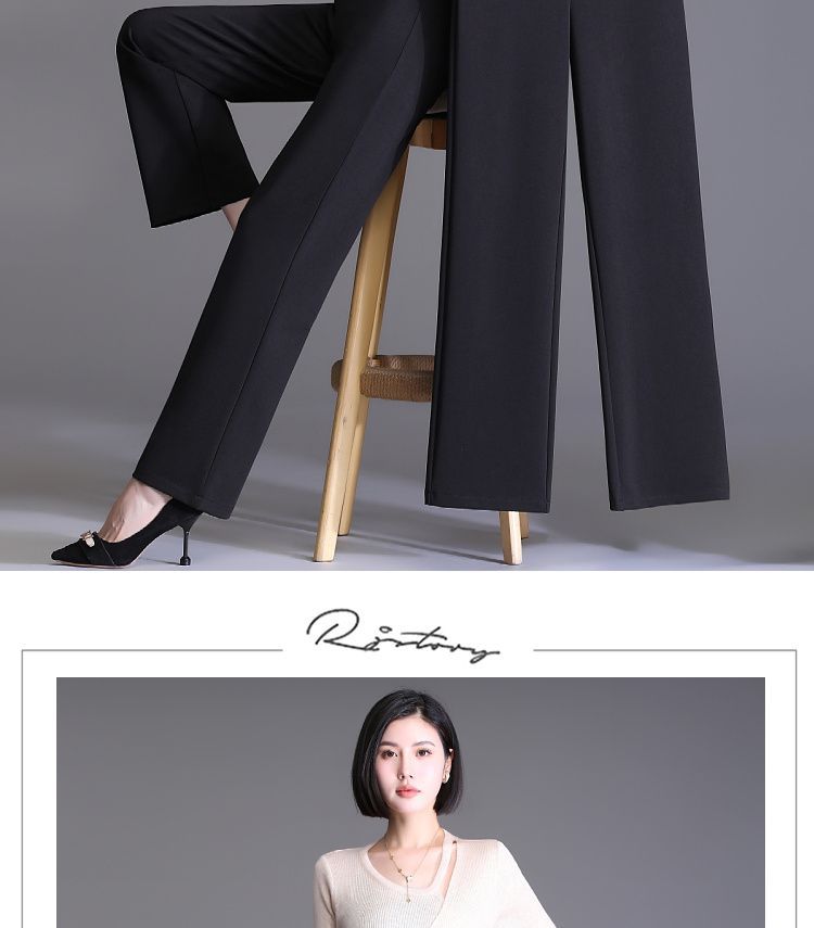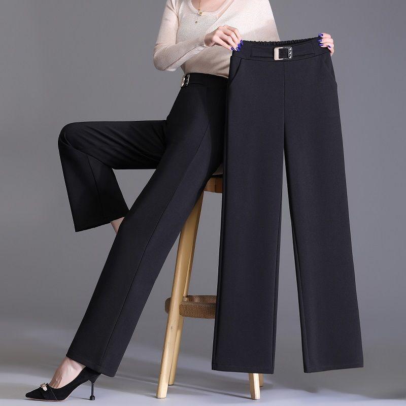 Verano Nuevo Pantalón Recto Cintura Alta Adelgazante Holgado Talla Grande Pantalón de Pierna Estrecha Ancha Casual Versátil Drapeado Pantalón de Mujer