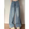 Jeans Lavados Retro Mujer 2025 Primavera y Otoño Delgados Talla Grande MM Gordita Cintura Alta Sueltos Adelgazantes Pantalones Rectos