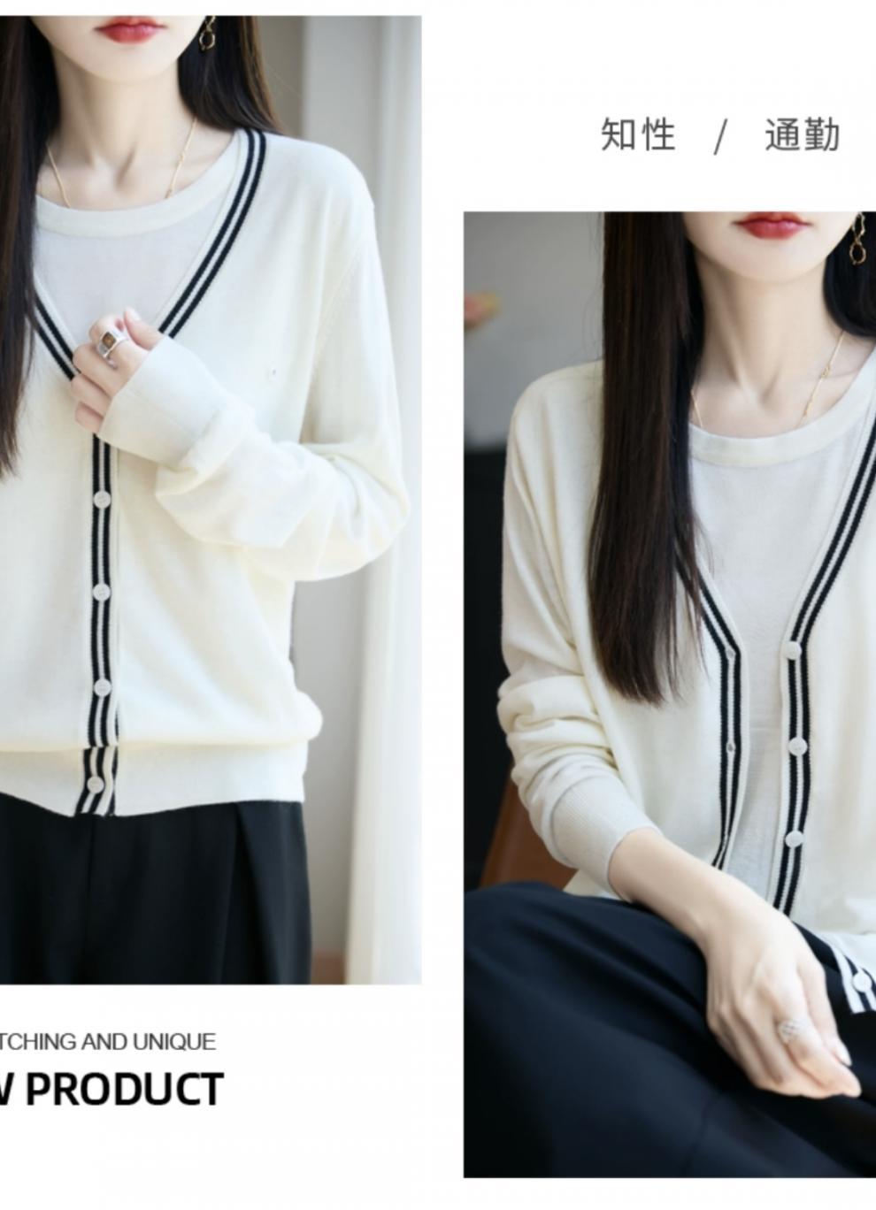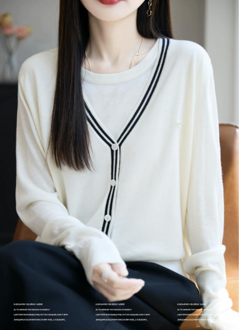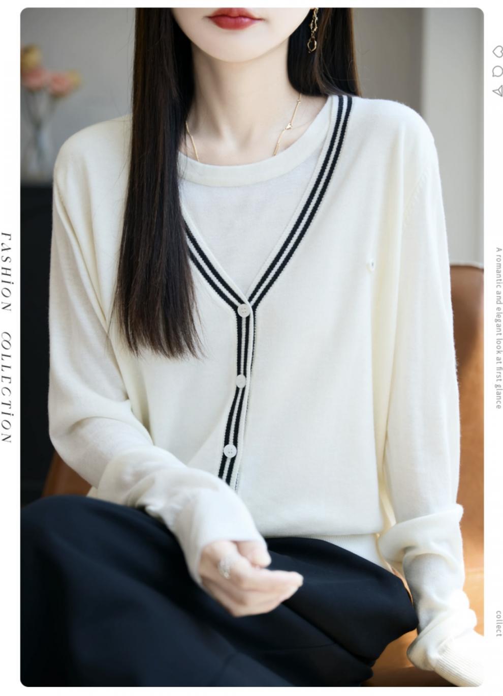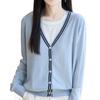 Compra Suéter de Punto Fino Nuevo de Principios de Otoño 2025 Manga Larga Otoño Falso Dos Piezas Suéter Fino Top Ropa Exterior Chaqueta Estilo Coreano para Mujer al por mayor en Joom.pro