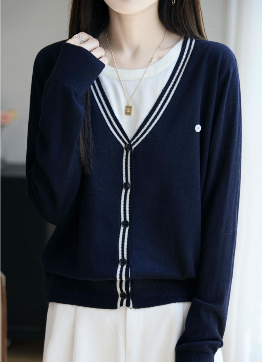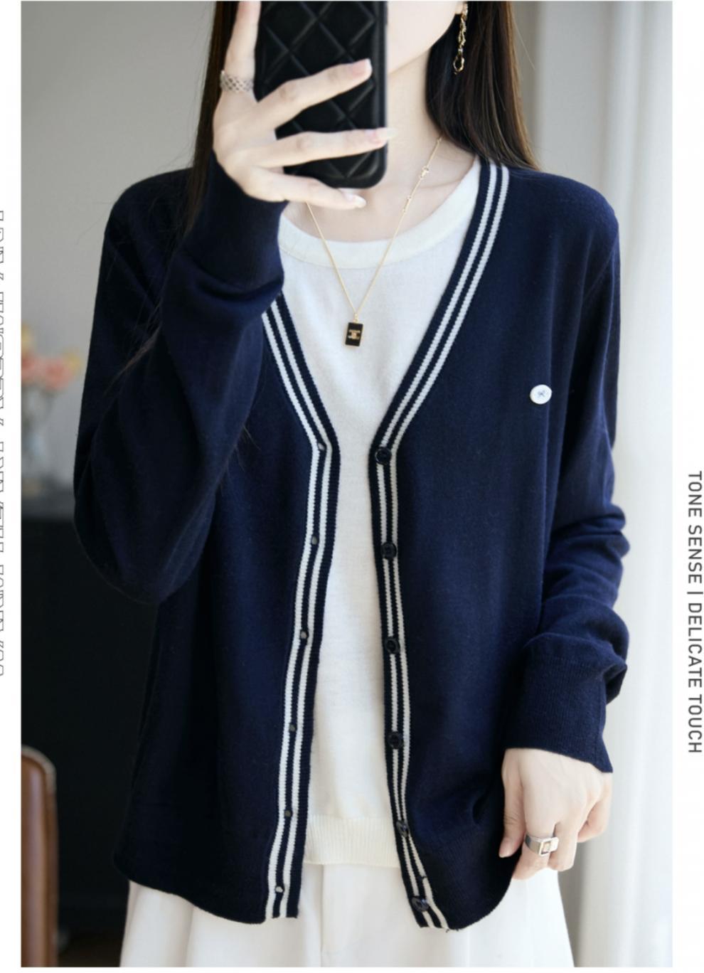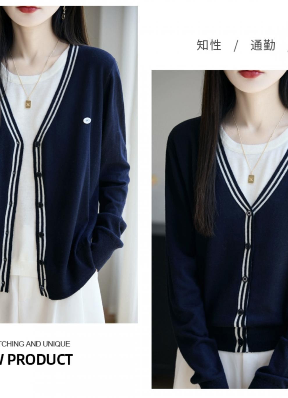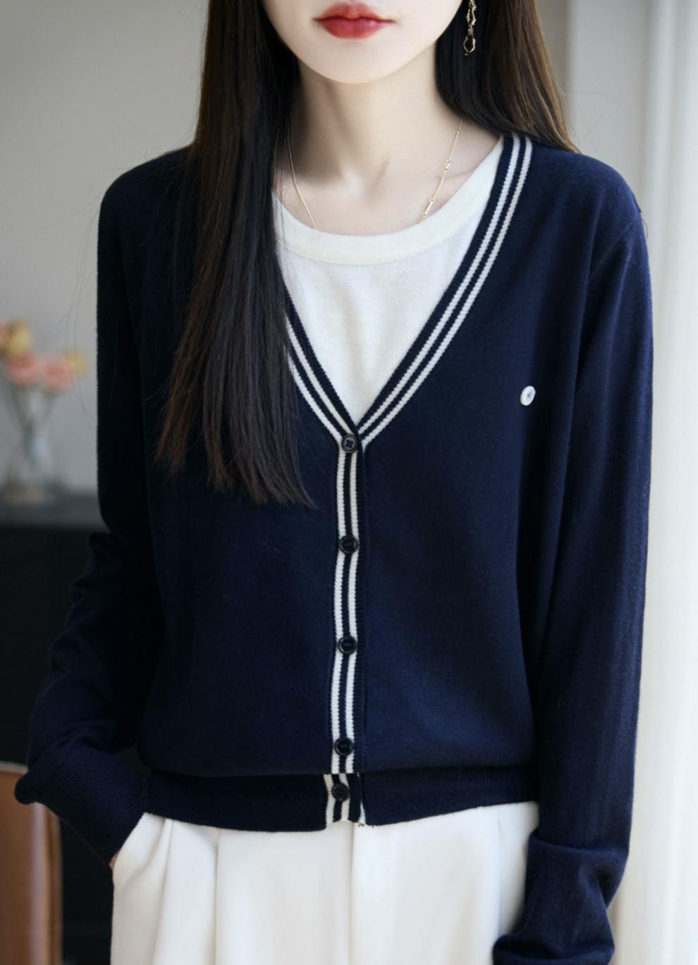 Compra Suéter de Punto Fino Nuevo de Principios de Otoño 2025 Manga Larga Otoño Falso Dos Piezas Suéter Fino Top Ropa Exterior Chaqueta Estilo Coreano para Mujer al por mayor en Joom.pro