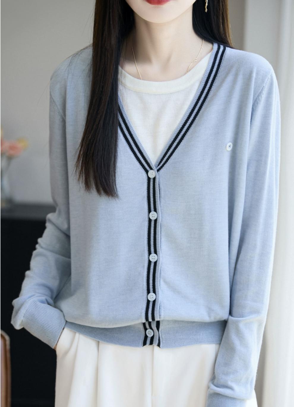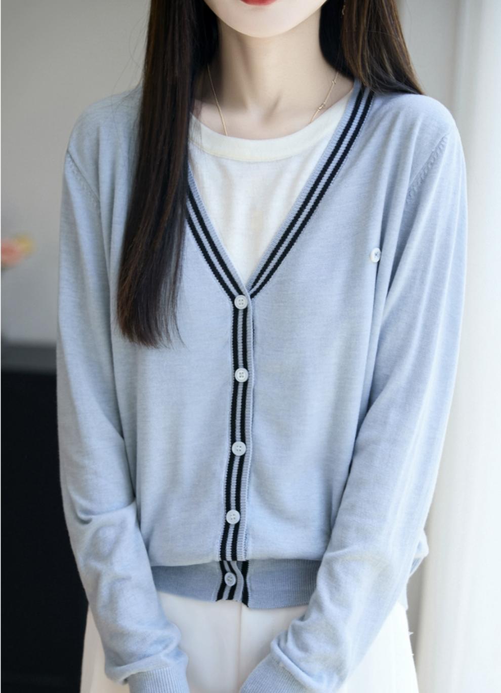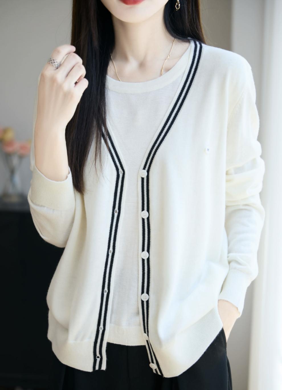 Suéter de Punto Fino Nuevo de Principios de Otoño 2025 Manga Larga Otoño Falso Dos Piezas Suéter Fino Top Ropa Exterior Chaqueta Estilo Coreano para Mujer