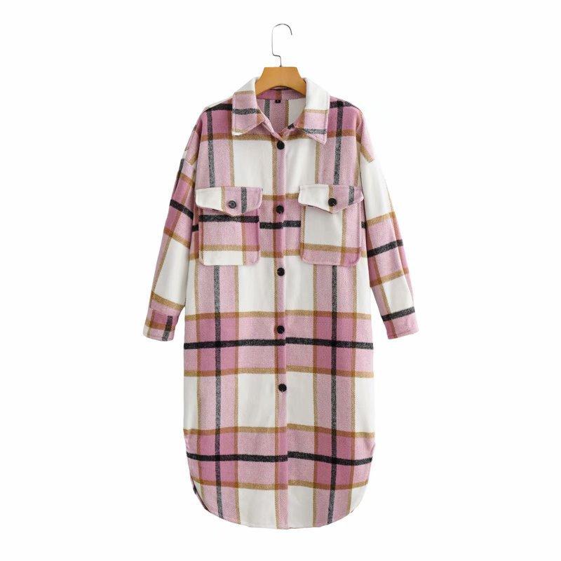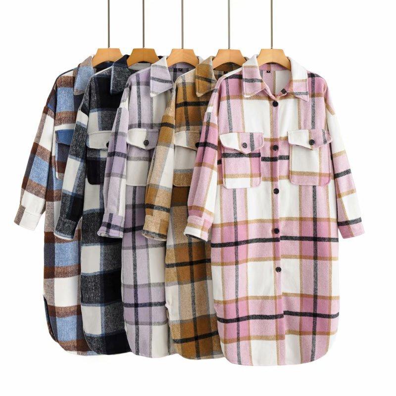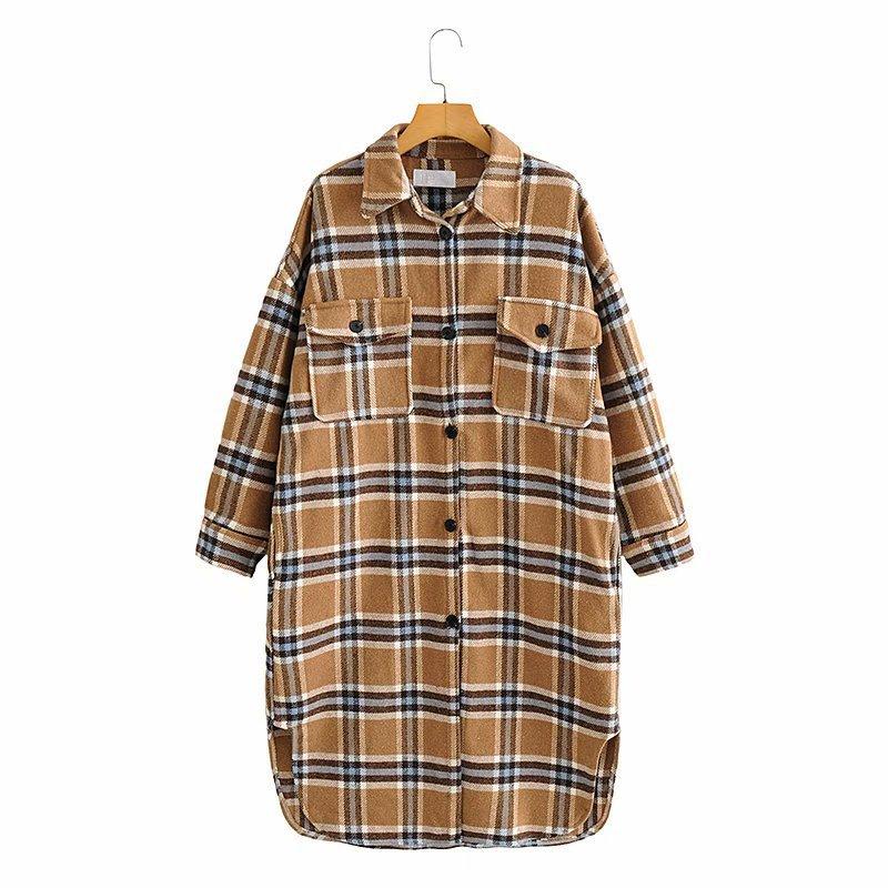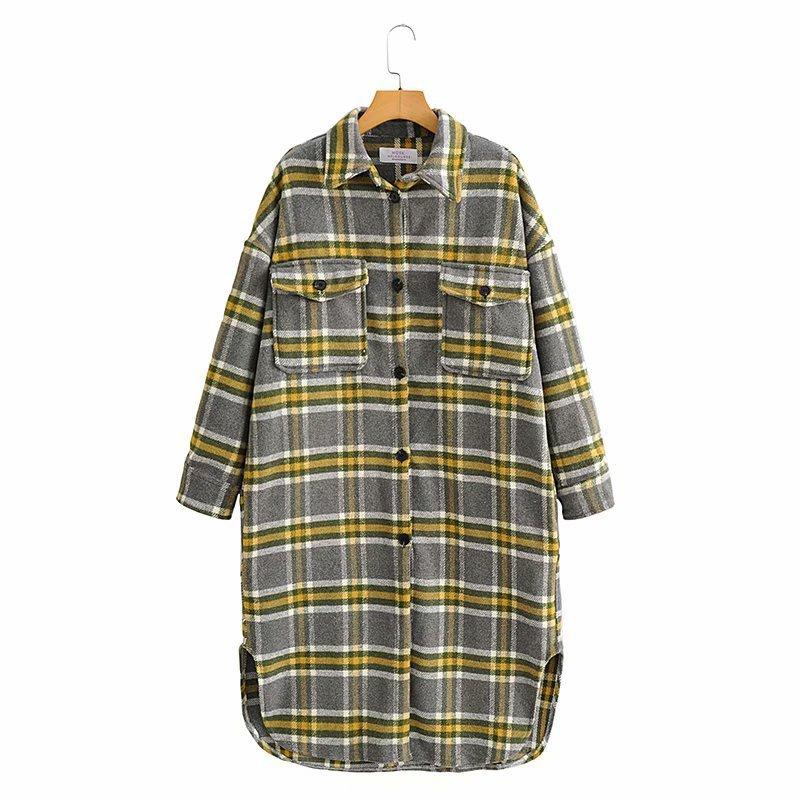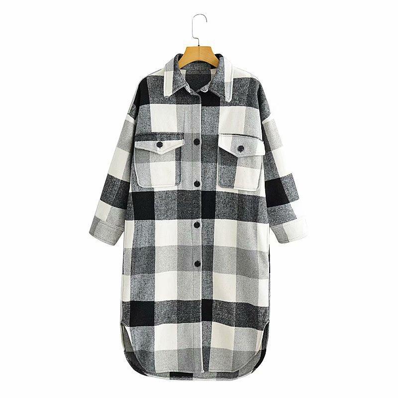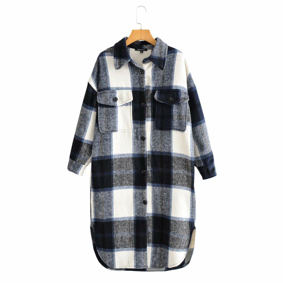 Otoño 2023 Nuevo Abrigo Chaqueta de Lana a Cuadros Casual Holgado Moda Urbana Europea y Americana w091 574