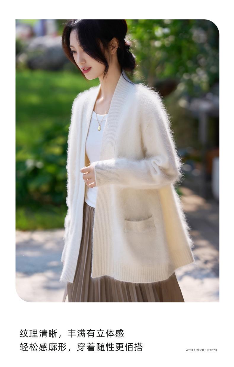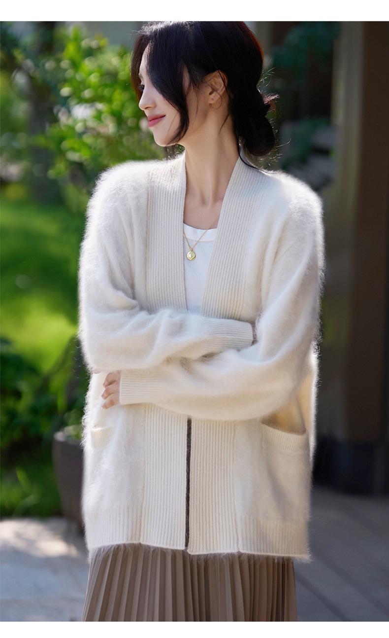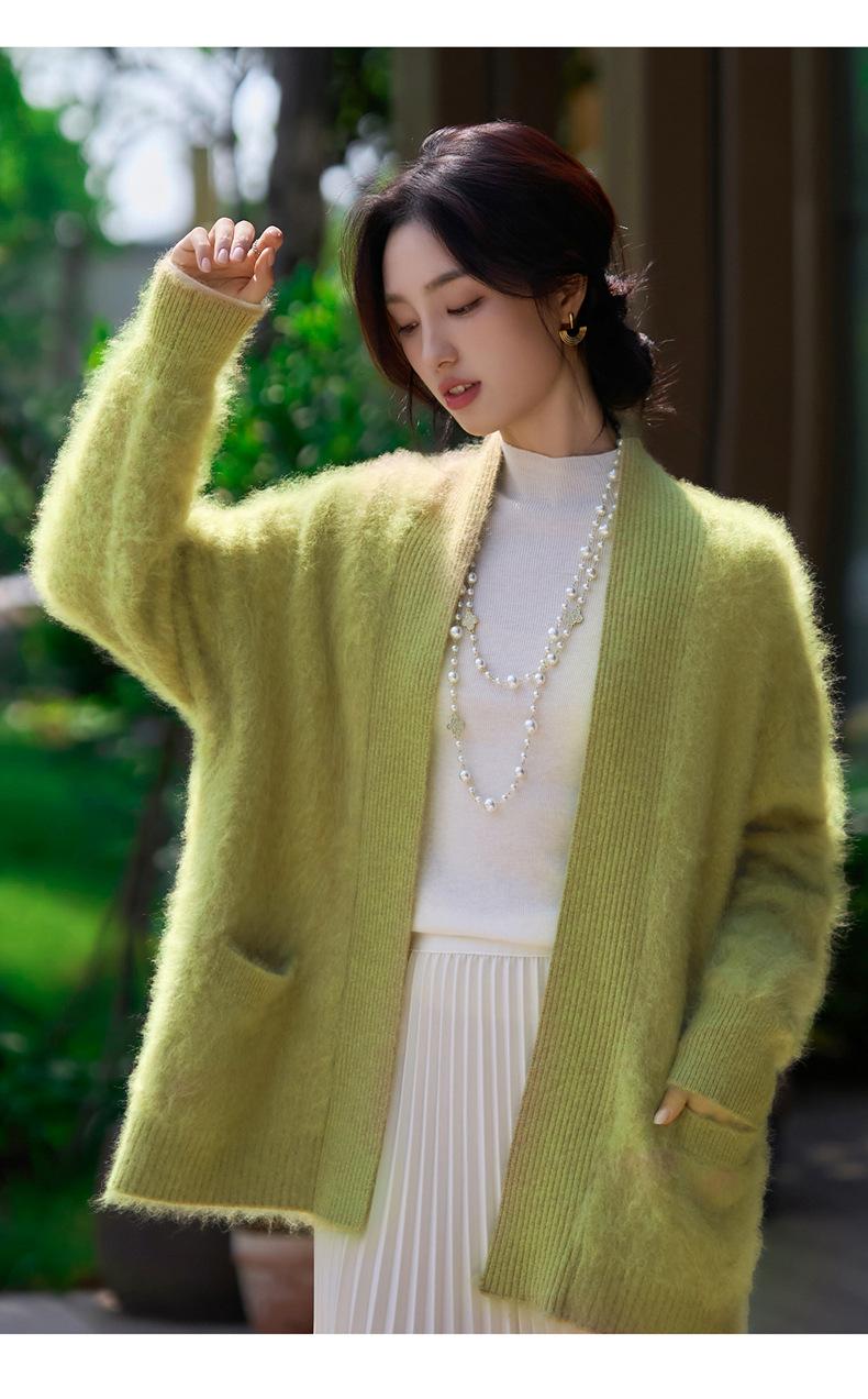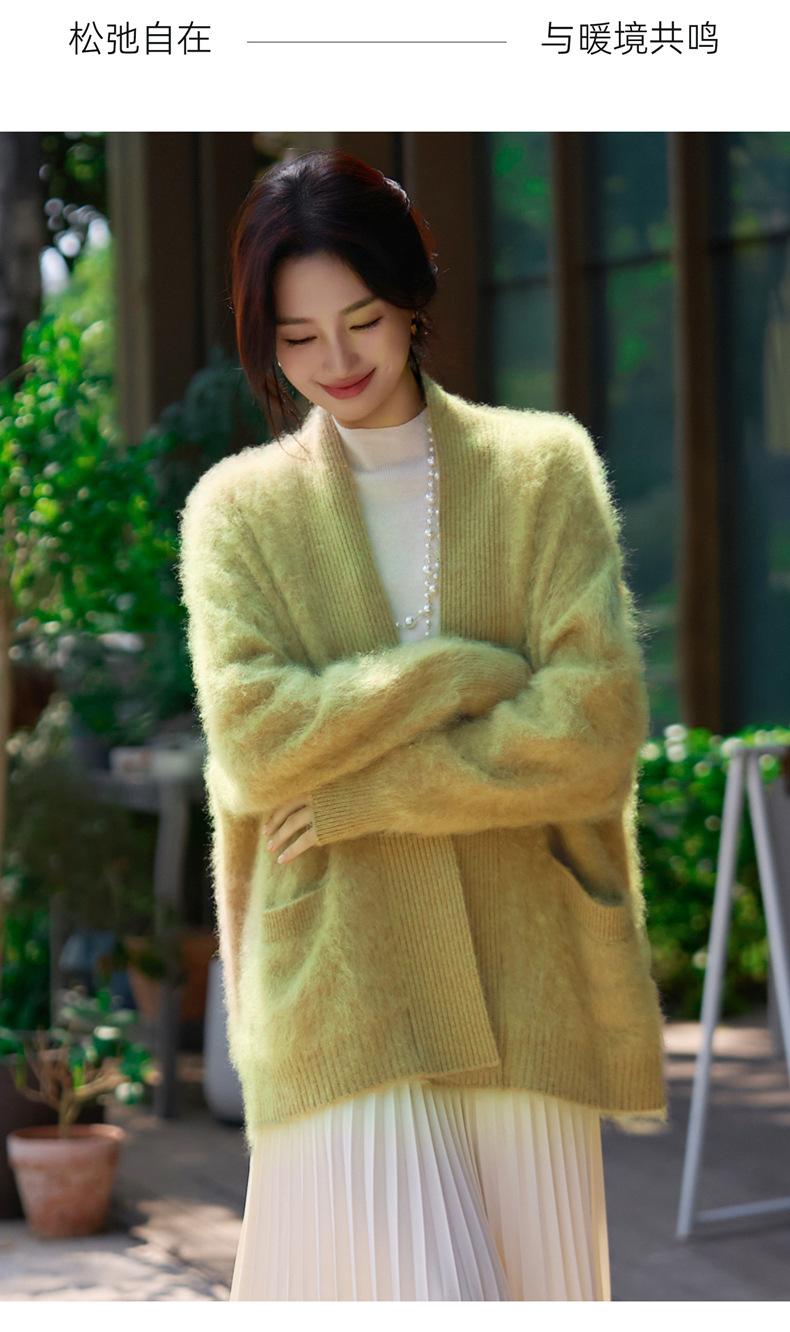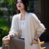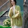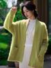Cárdigan de Punto Mezcla Lana Cachemira Nuevo Otoño/Invierno 2025 Manga Larga Color Sólido Cepillado con Bolsillos Top Grueso
