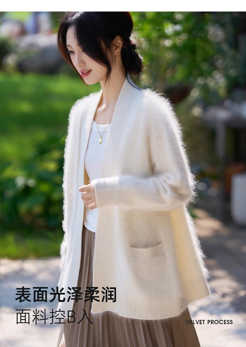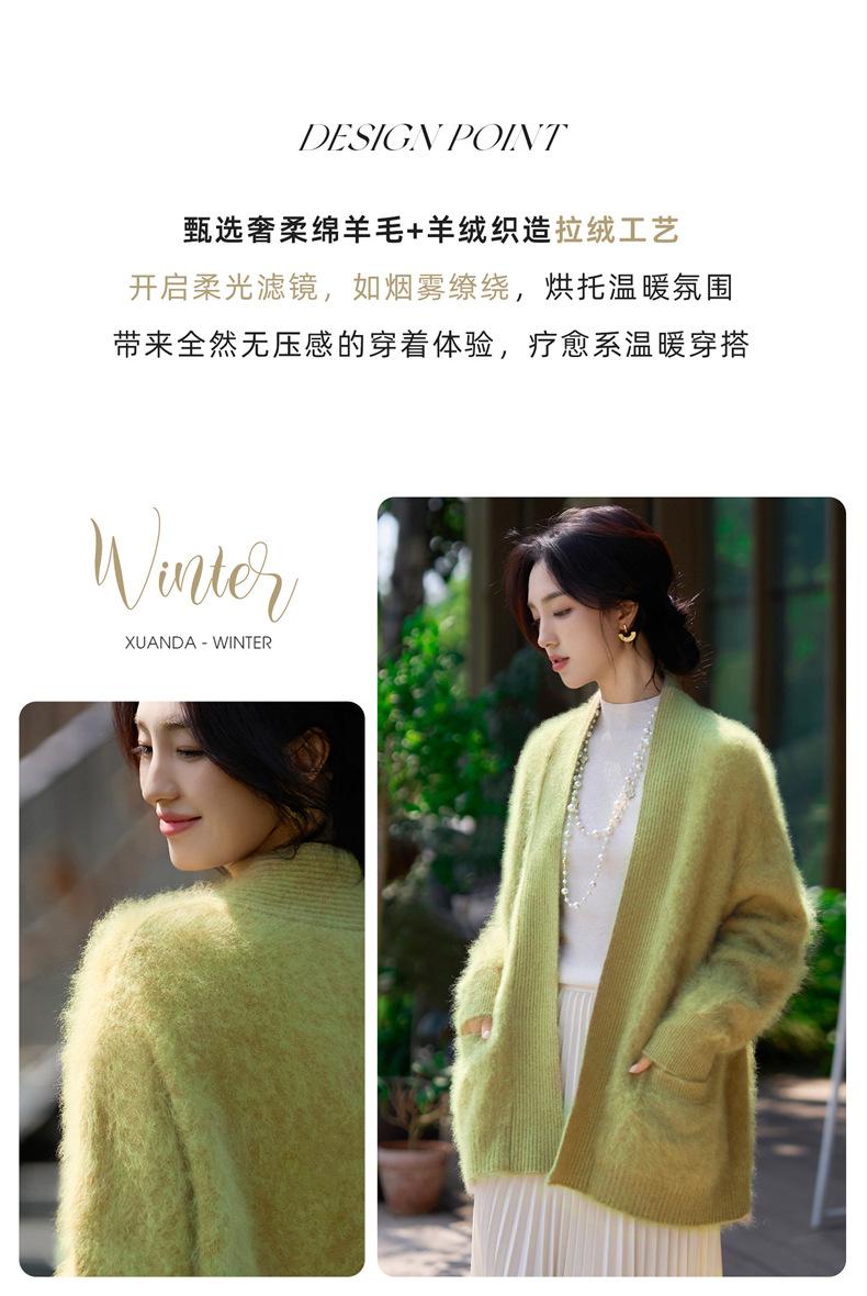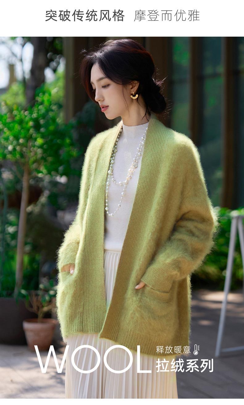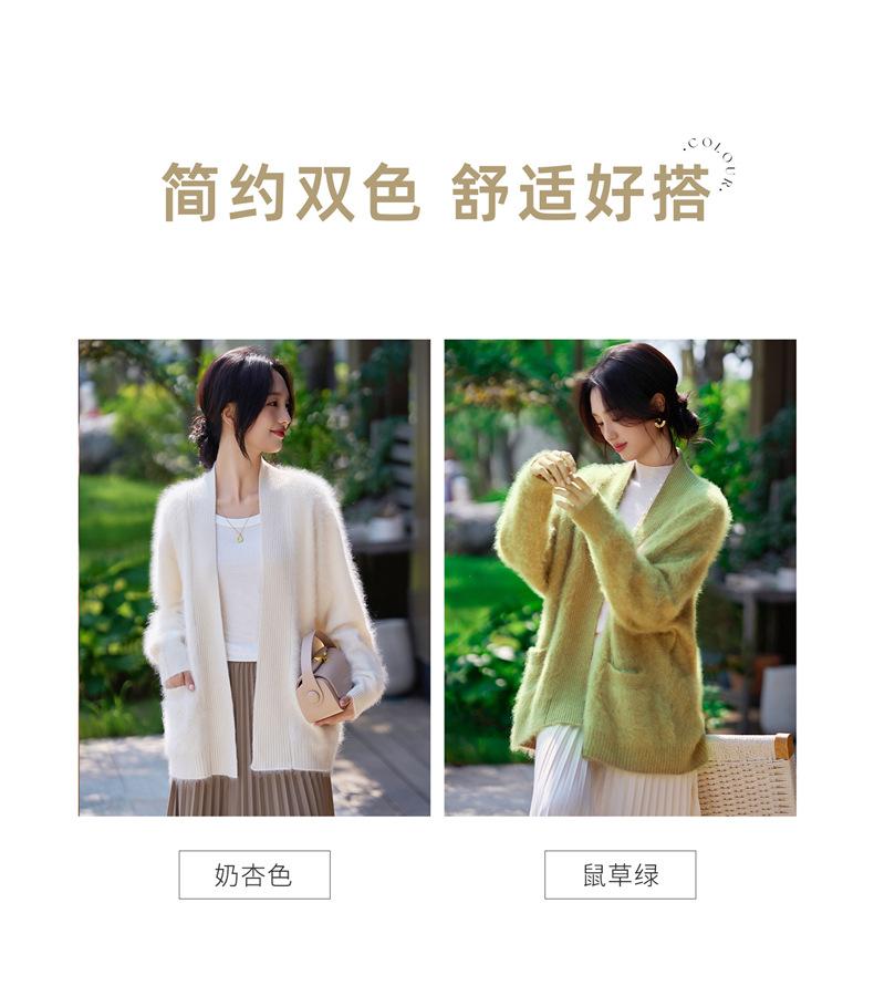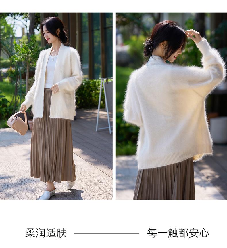 Cárdigan de Punto Mezcla Lana Cachemira Nuevo Otoño/Invierno 2025 Manga Larga Color Sólido Cepillado con Bolsillos Top Grueso
