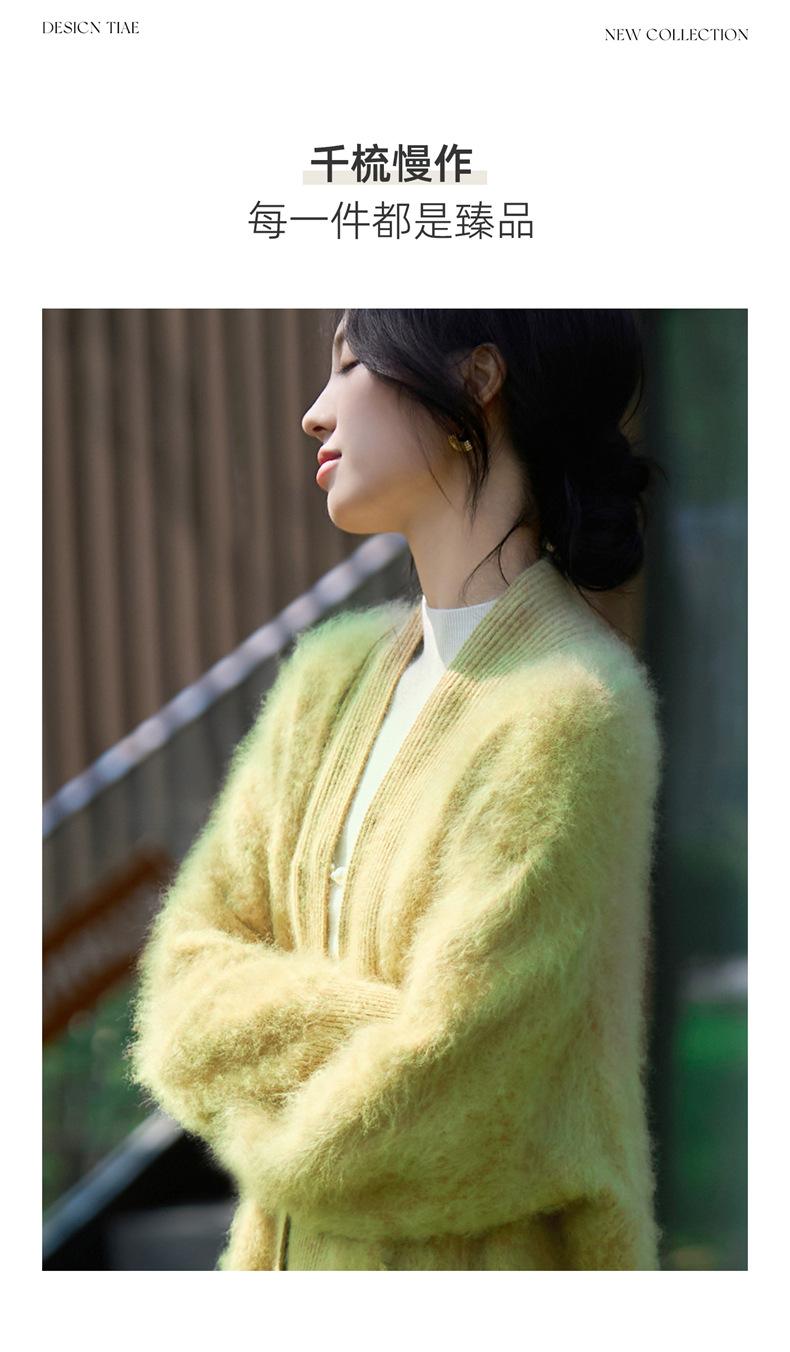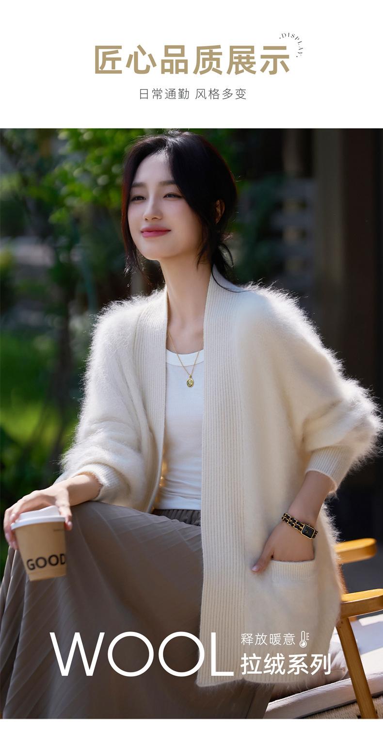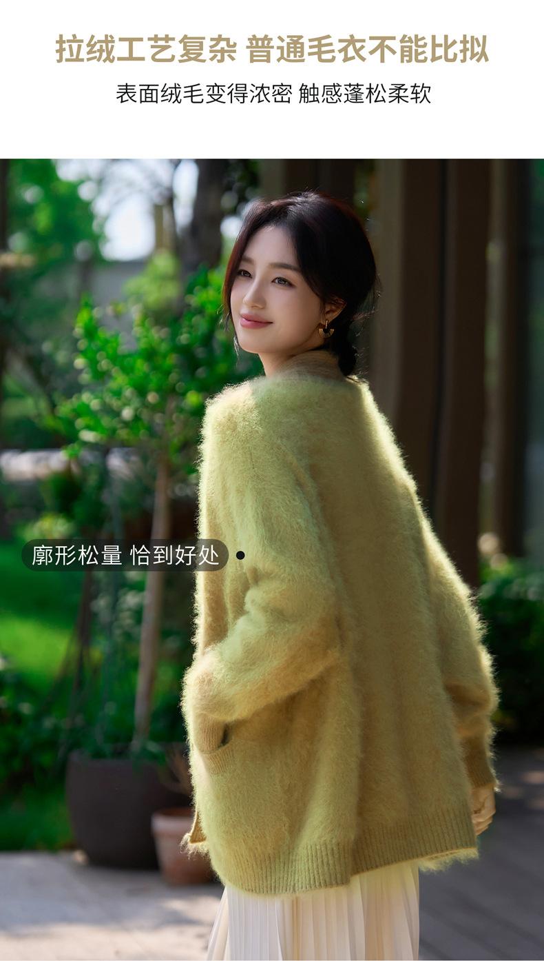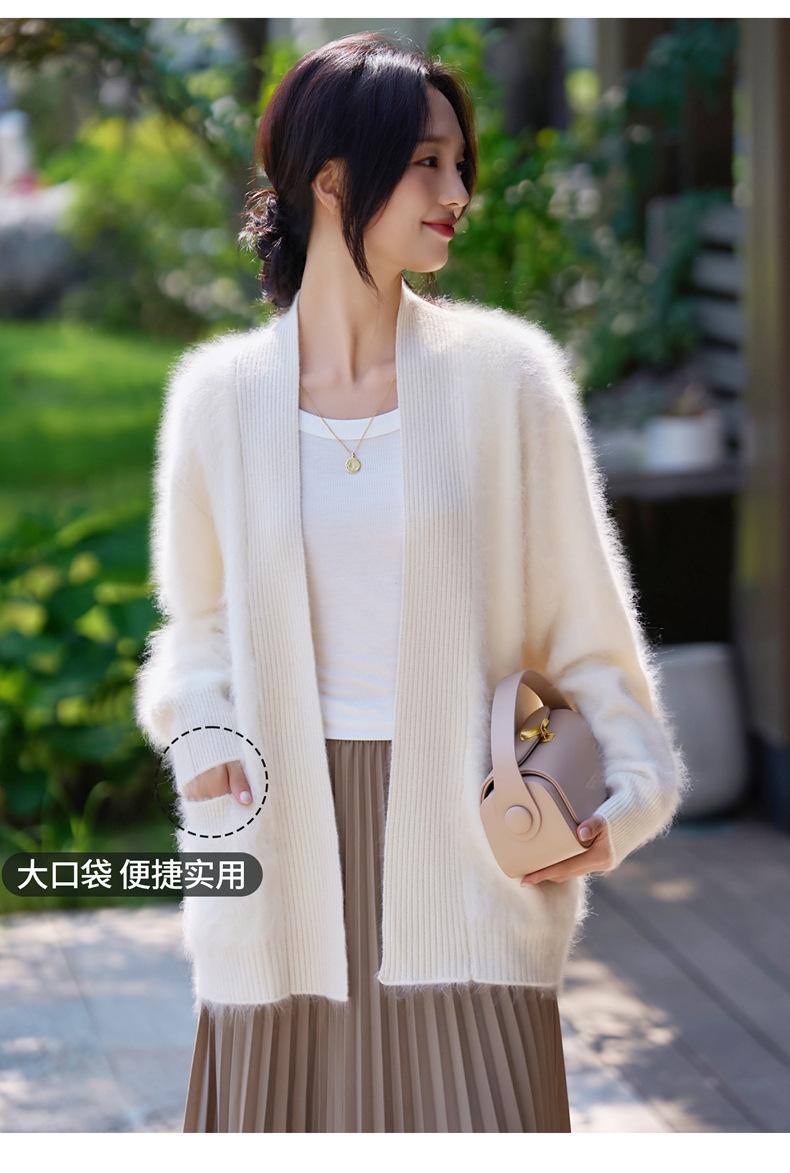 Cárdigan de Punto Mezcla Lana Cachemira Nuevo Otoño/Invierno 2025 Manga Larga Color Sólido Cepillado con Bolsillos Top Grueso