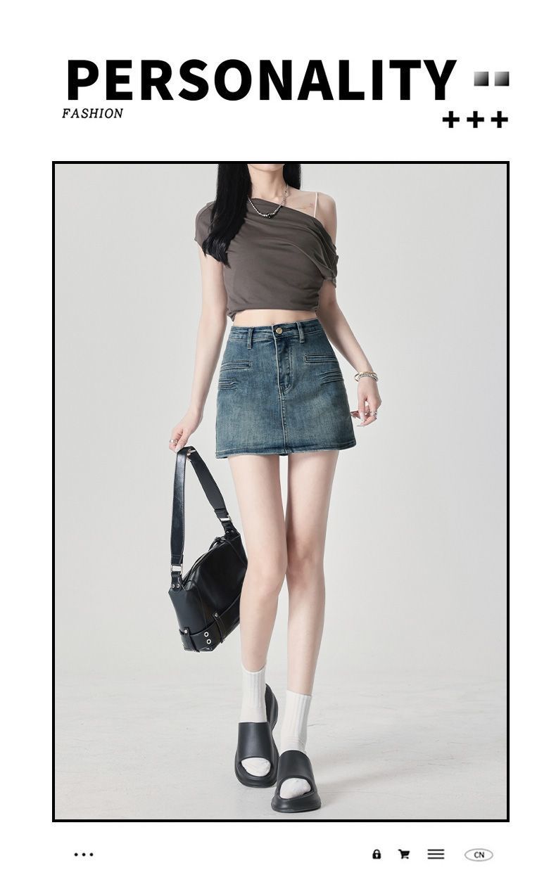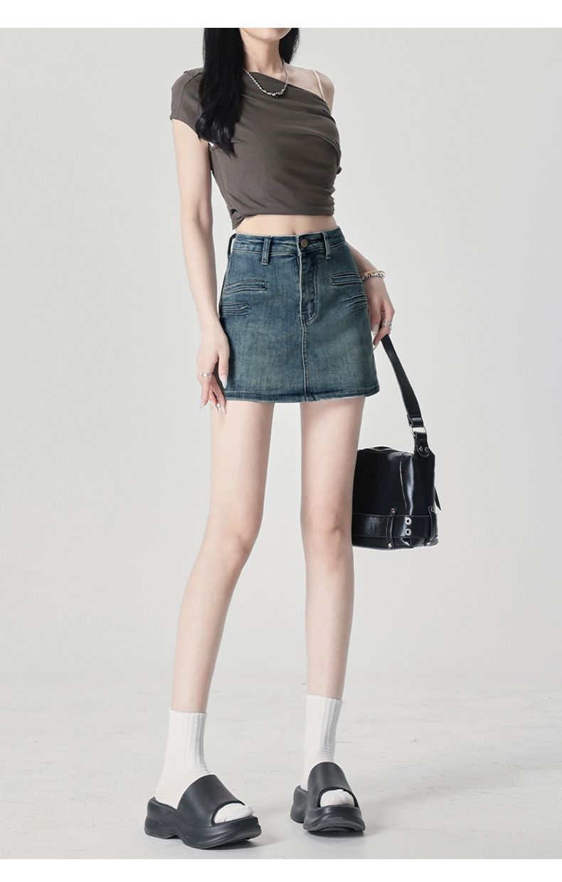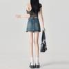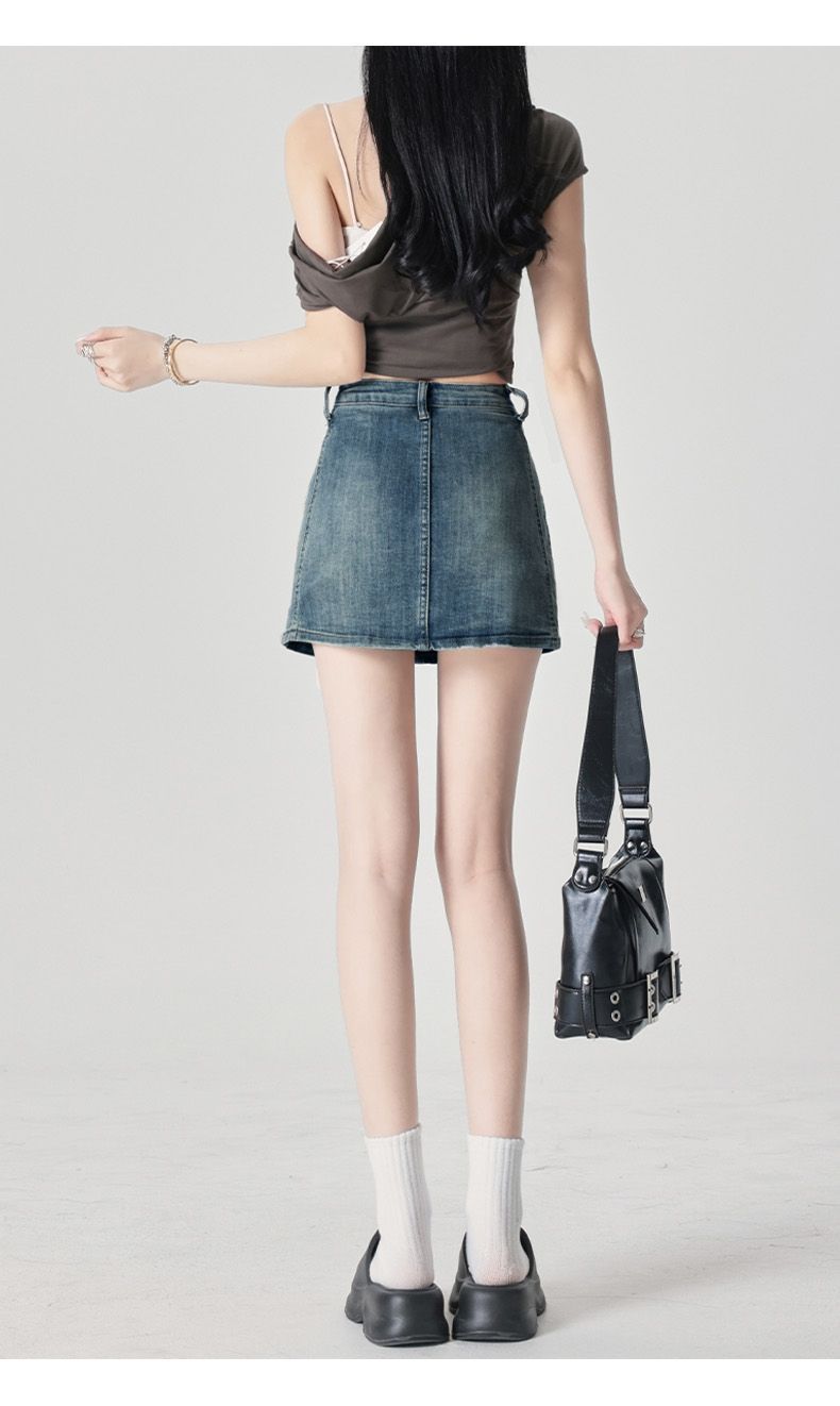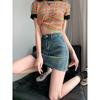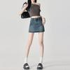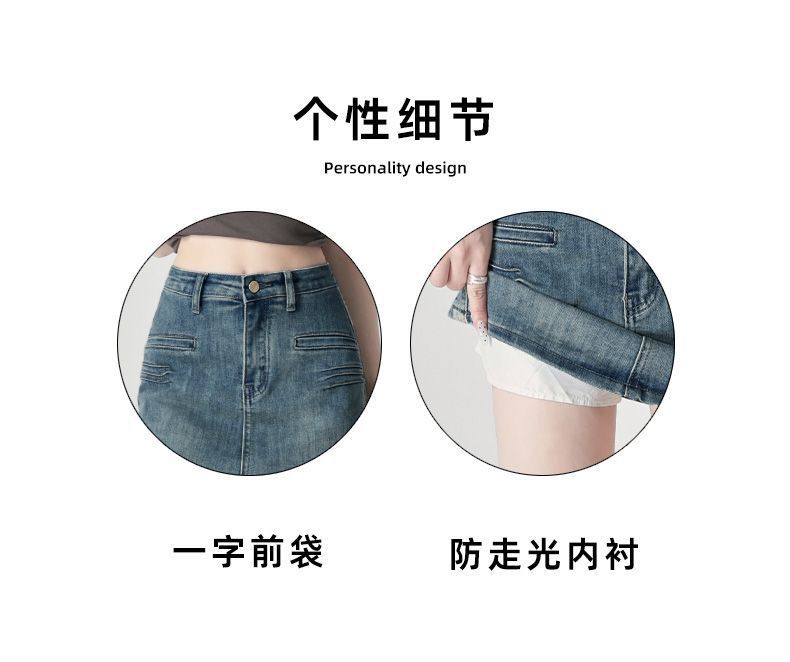 Falda de Mezclilla Estilo Preppy Azul Nostálgico Antiexposición Elástica 2025 de Gama Alta Adelgazante Nueva Falda Corta Acampanada Cintura Alta para Mujer