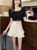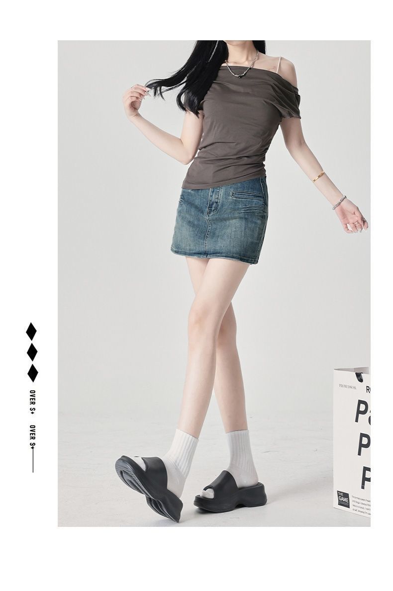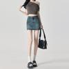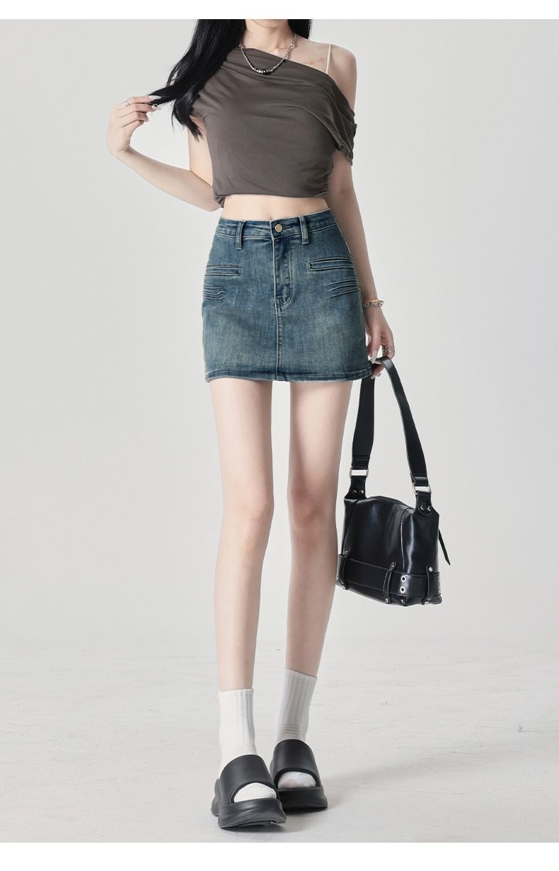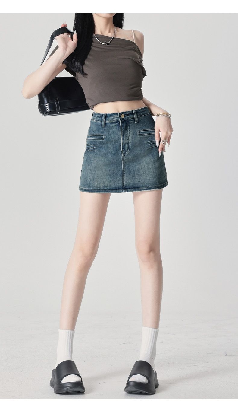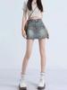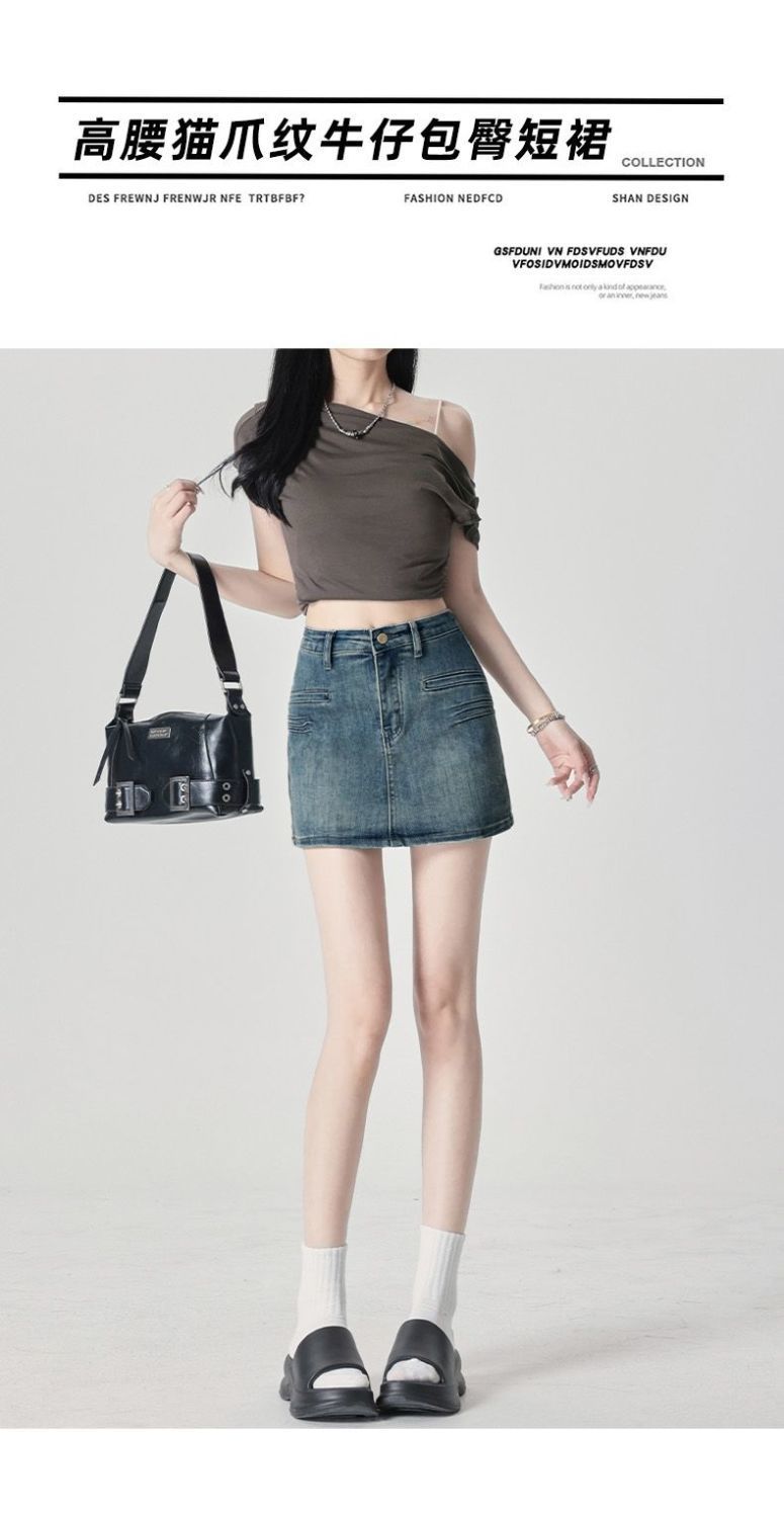 Falda de Mezclilla Estilo Preppy Azul Nostálgico Antiexposición Elástica 2025 de Gama Alta Adelgazante Nueva Falda Corta Acampanada Cintura Alta para Mujer