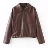 Z Estilo Europeo y Americano Transfronterizo 2025 Nuevo Venta al por Mayor Moda Temperamento Ropa de Mujer Celebridad de Internet Estilo Caliente Color Sólido Solapa Chaqueta de Cuero