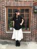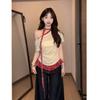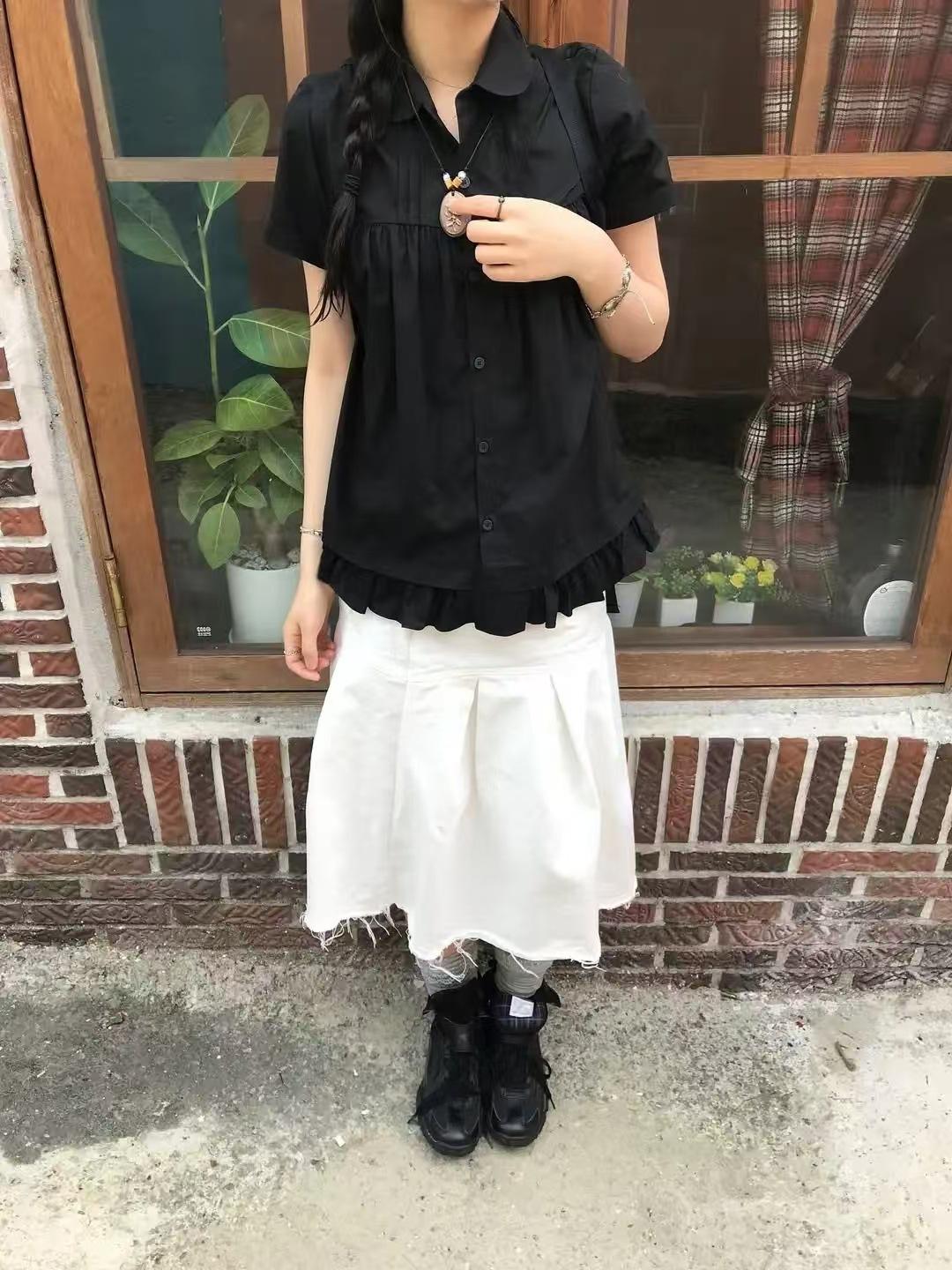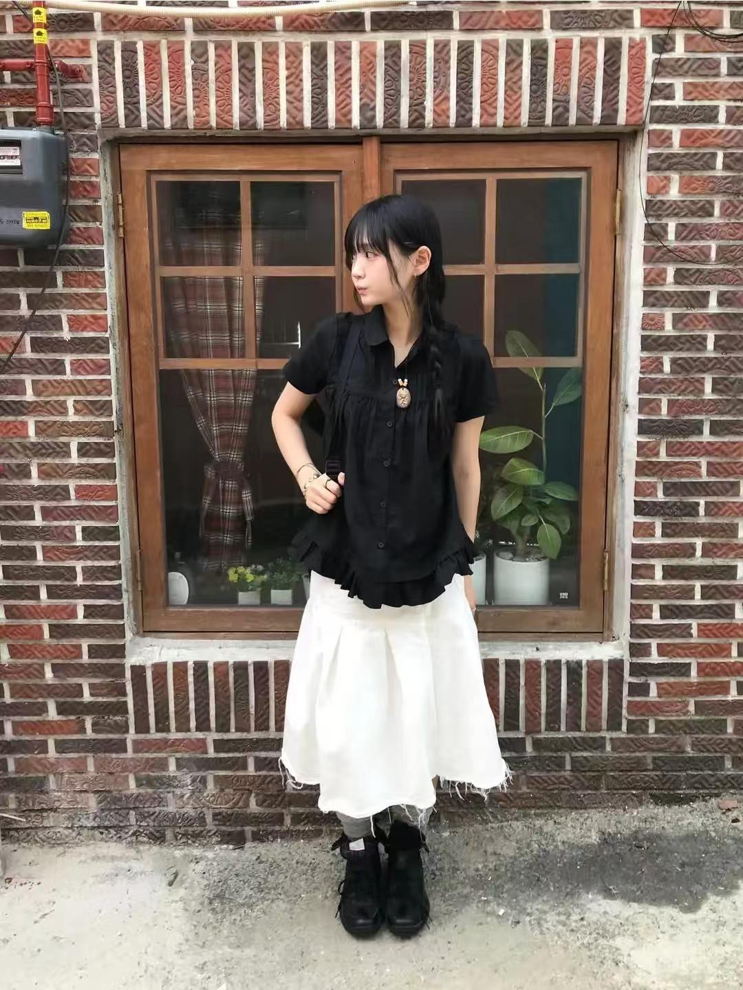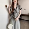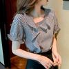 Camisa top de manga corta con cuello vuelto estilo coreano para chica dulce y picante, corte slim versátil que reduce la edad, con encaje de patchwork