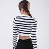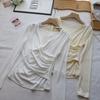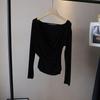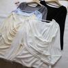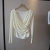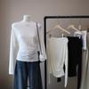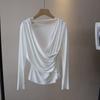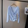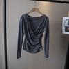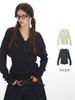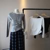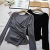 [Bi Zheng] Otoño 2025 Nueva Personalidad Coreana Cuello en V Corta Fruncida Cruzada Cintura Adelgazante Manga Larga Camiseta Mujer 4757