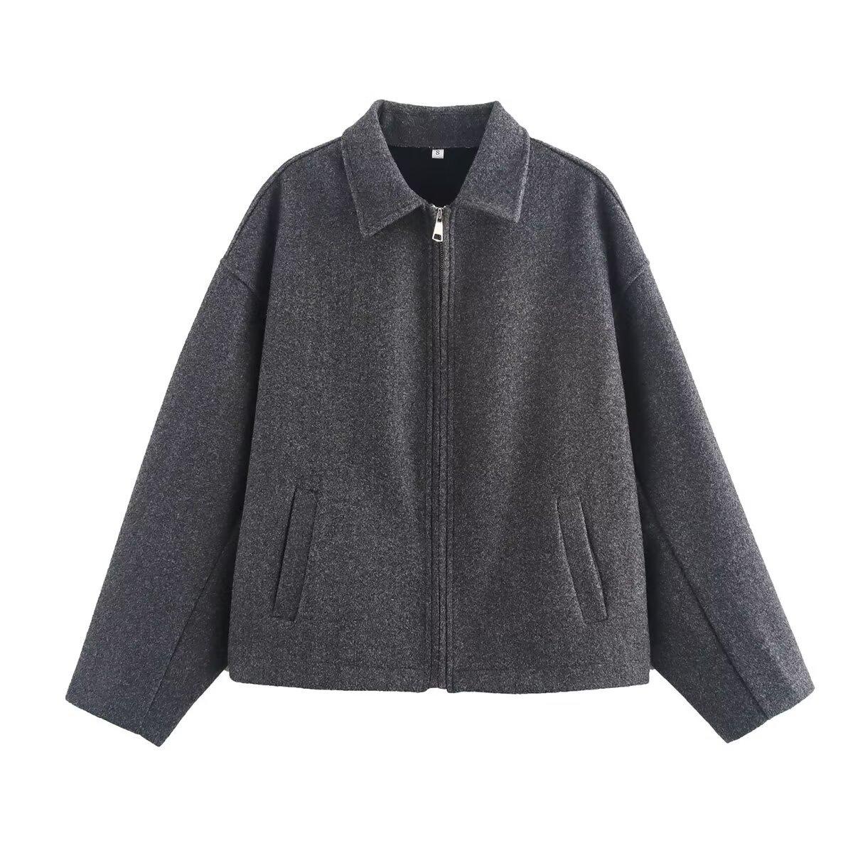 Moda Otoño 2025 Abrigo de Lana de Tres Colores Color Sólido Pierna Ancha con Cremallera Ropa de Mujer Transfronteriza Amazon B88780