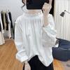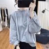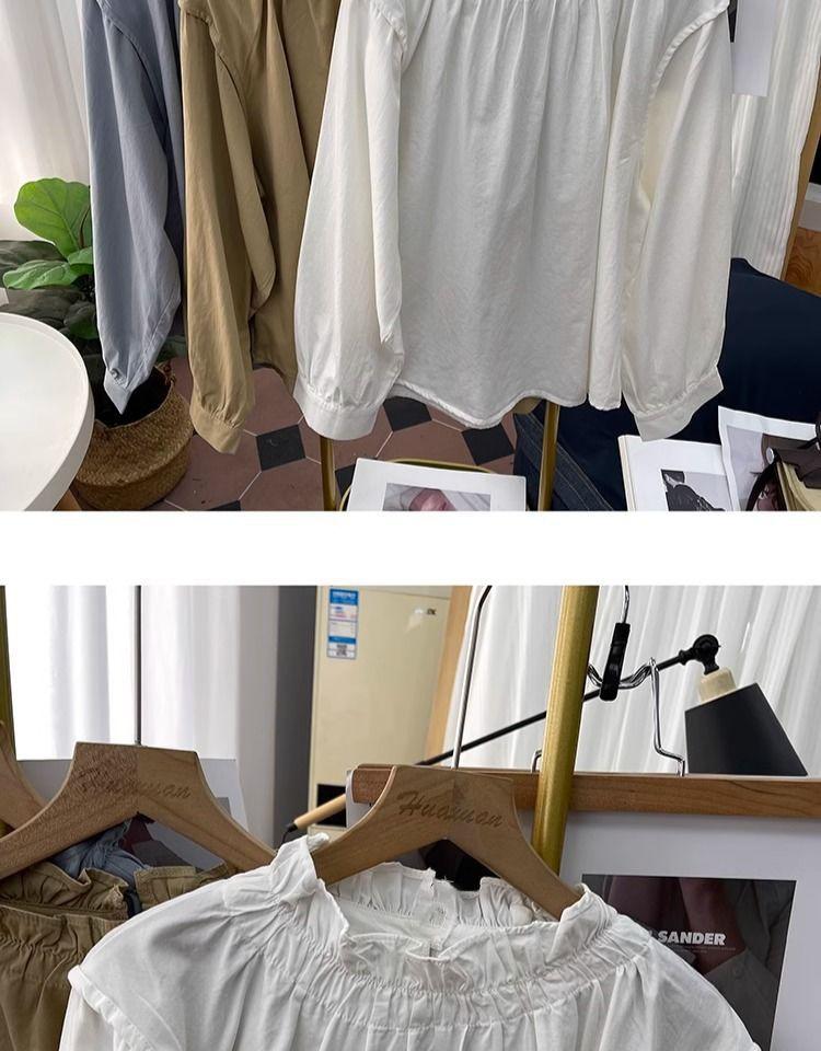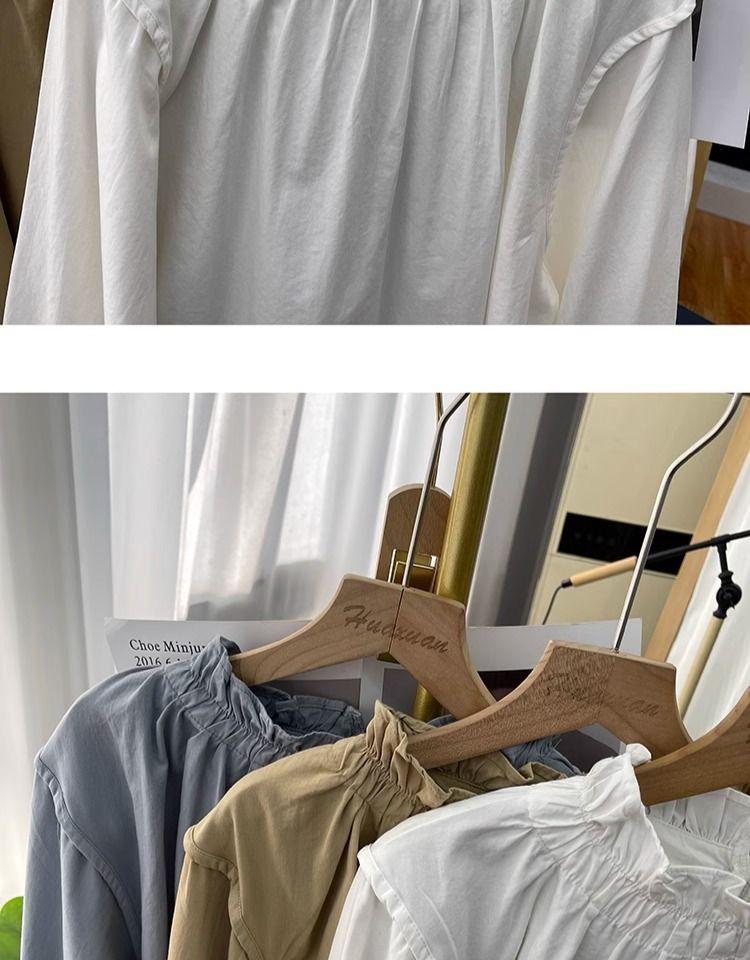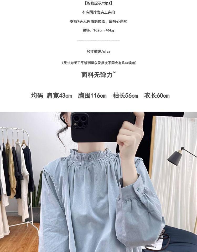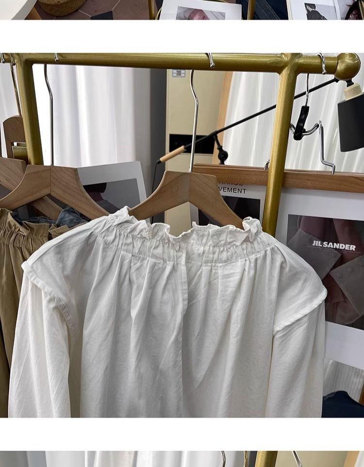 Primavera/Verano Cuello de Hoja de Loto Manga Linterna Algodón Puro Manga Larga Camisa para Mujer Top Reductor de Edad Nuevo Suéter Retro Camisa Holgada