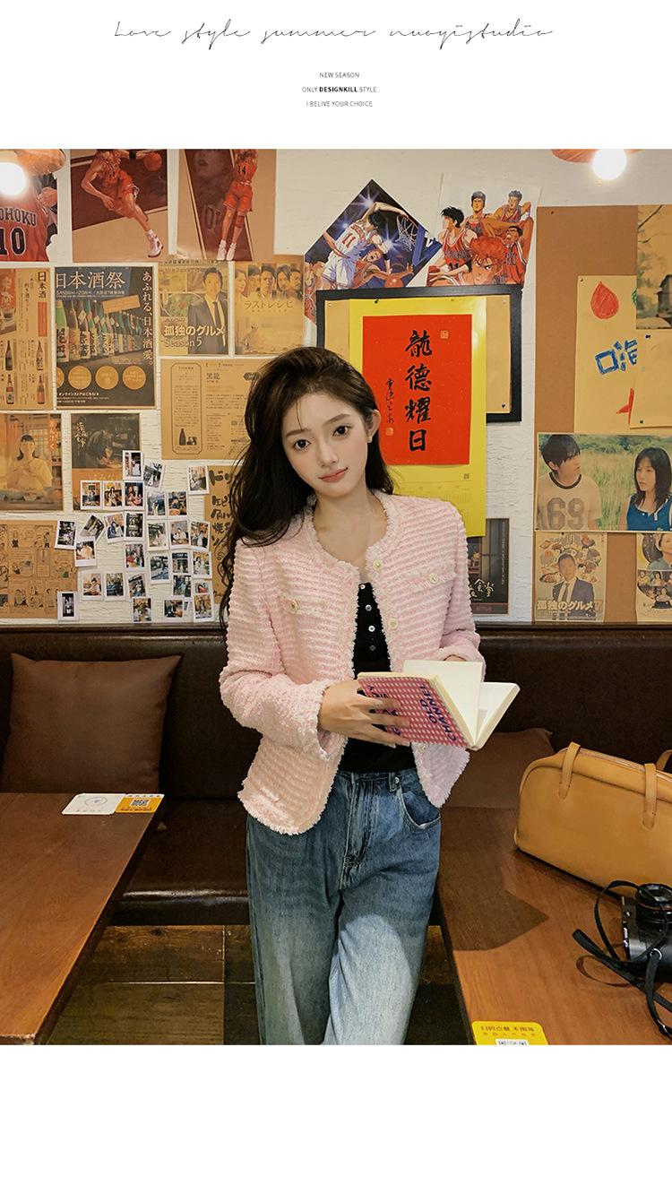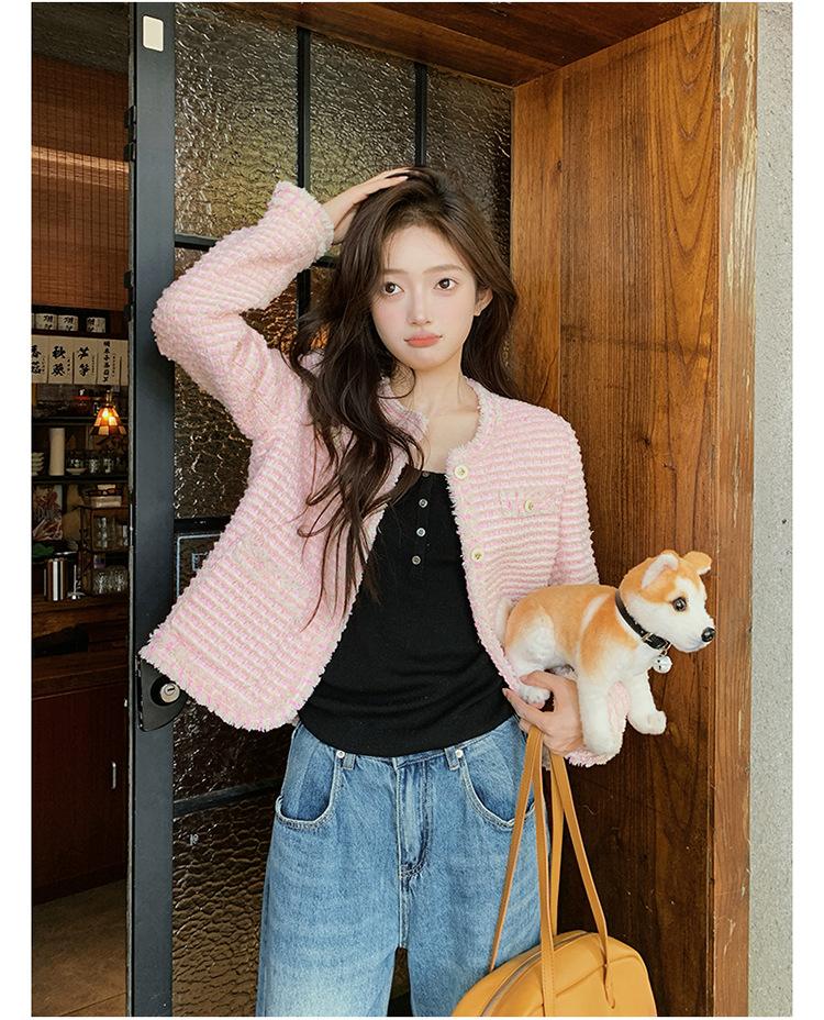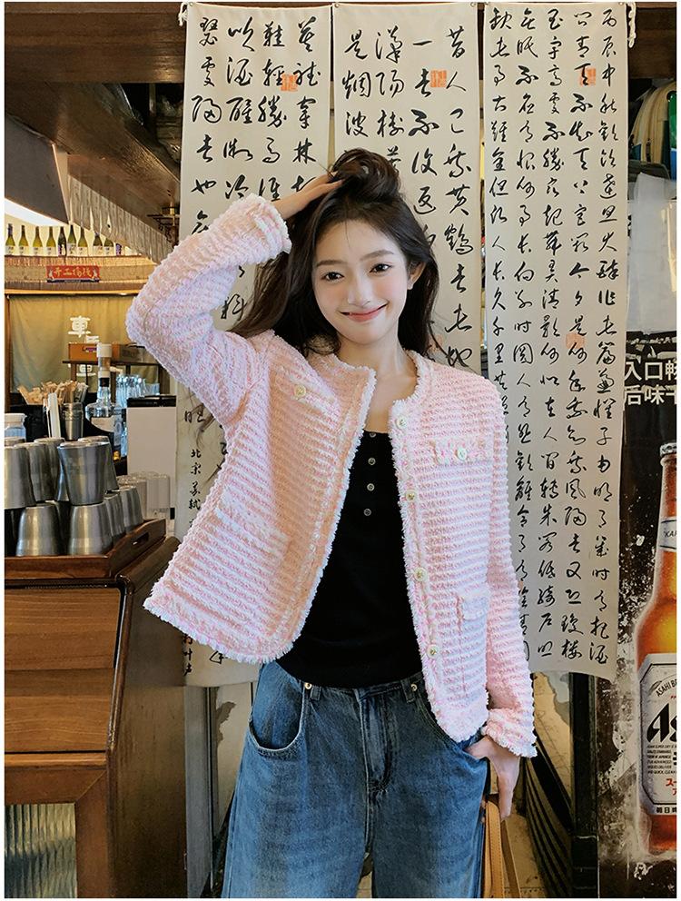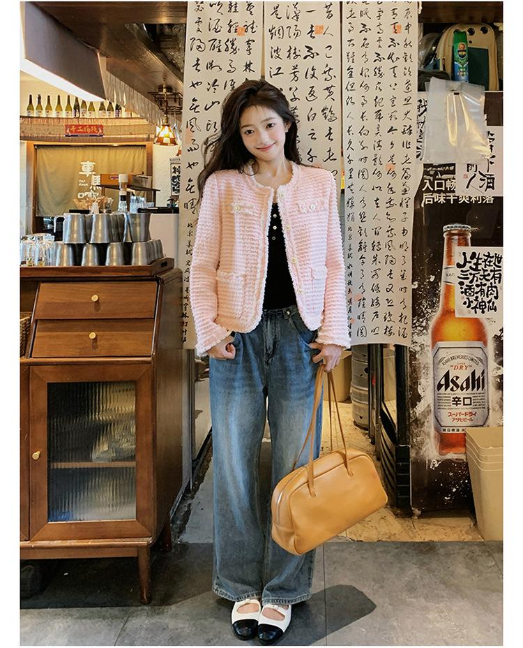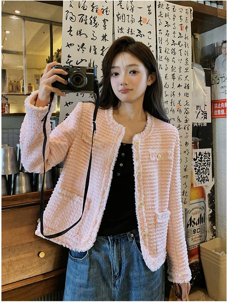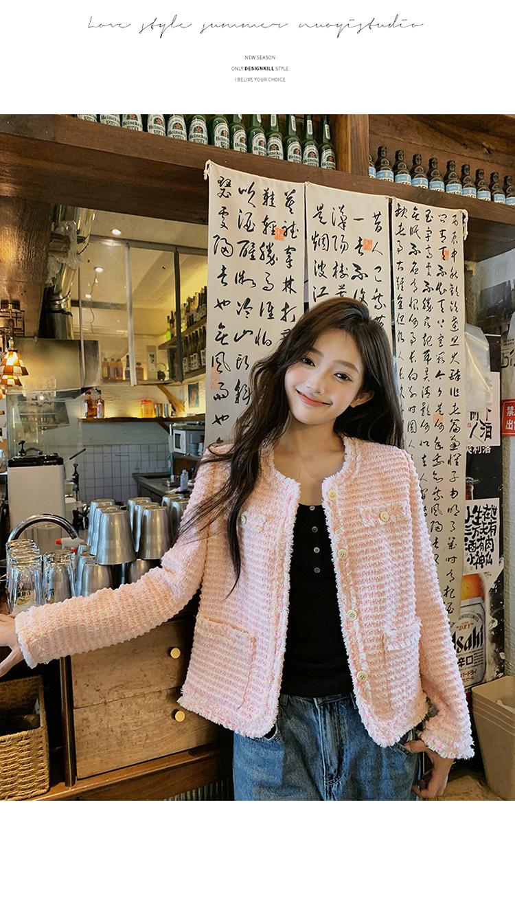 Novedades Primavera y Otoño 2025 Reductor de Edad Versátil Cómodo y Delicado con la Piel Realzando la Calidad Dulce Estilo Fragante Chaqueta de Tendencia