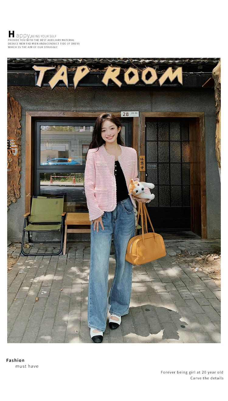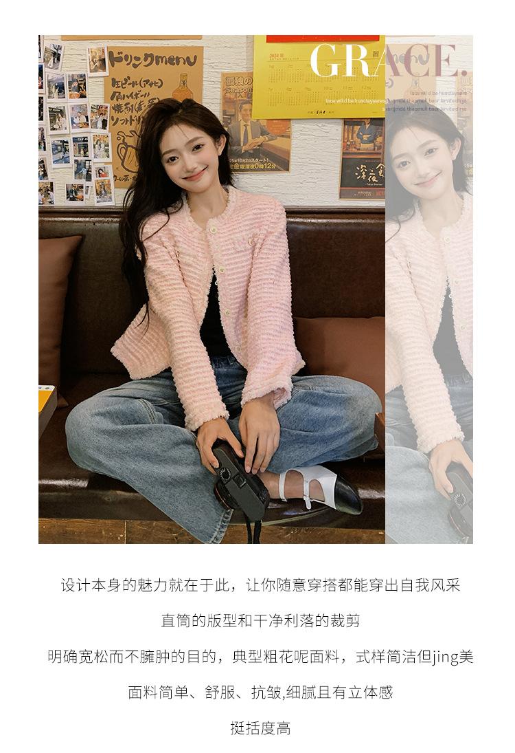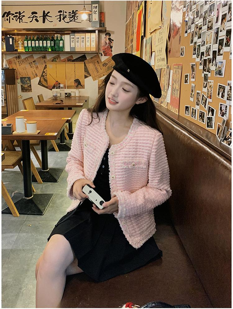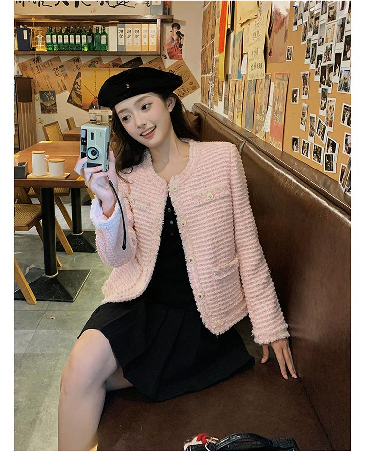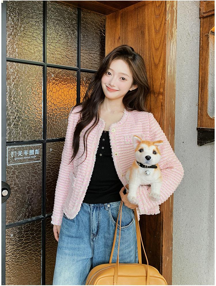Novedades Primavera y Otoño 2025 Reductor de Edad Versátil Cómodo y Delicado con la Piel Realzando la Calidad Dulce Estilo Fragante Chaqueta de Tendencia