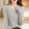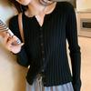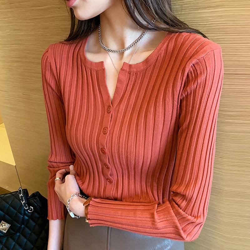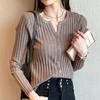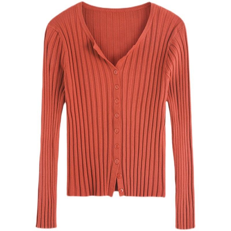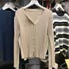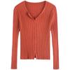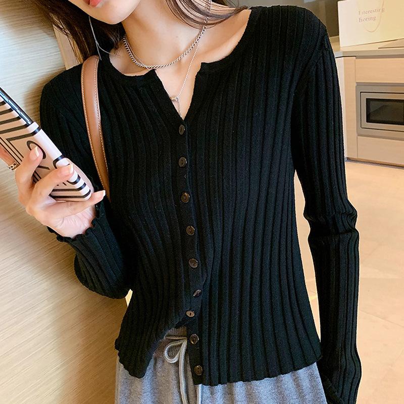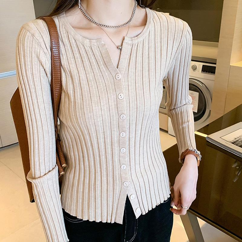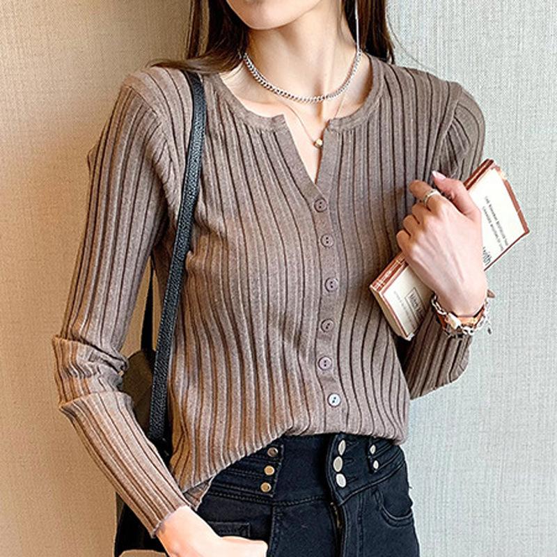 Suéter de manga larga para mujer con cuello corto, primavera y otoño, combinable con todo, estilo occidental, corte ajustado, top básico de punto para interior, cárdigan exterior
